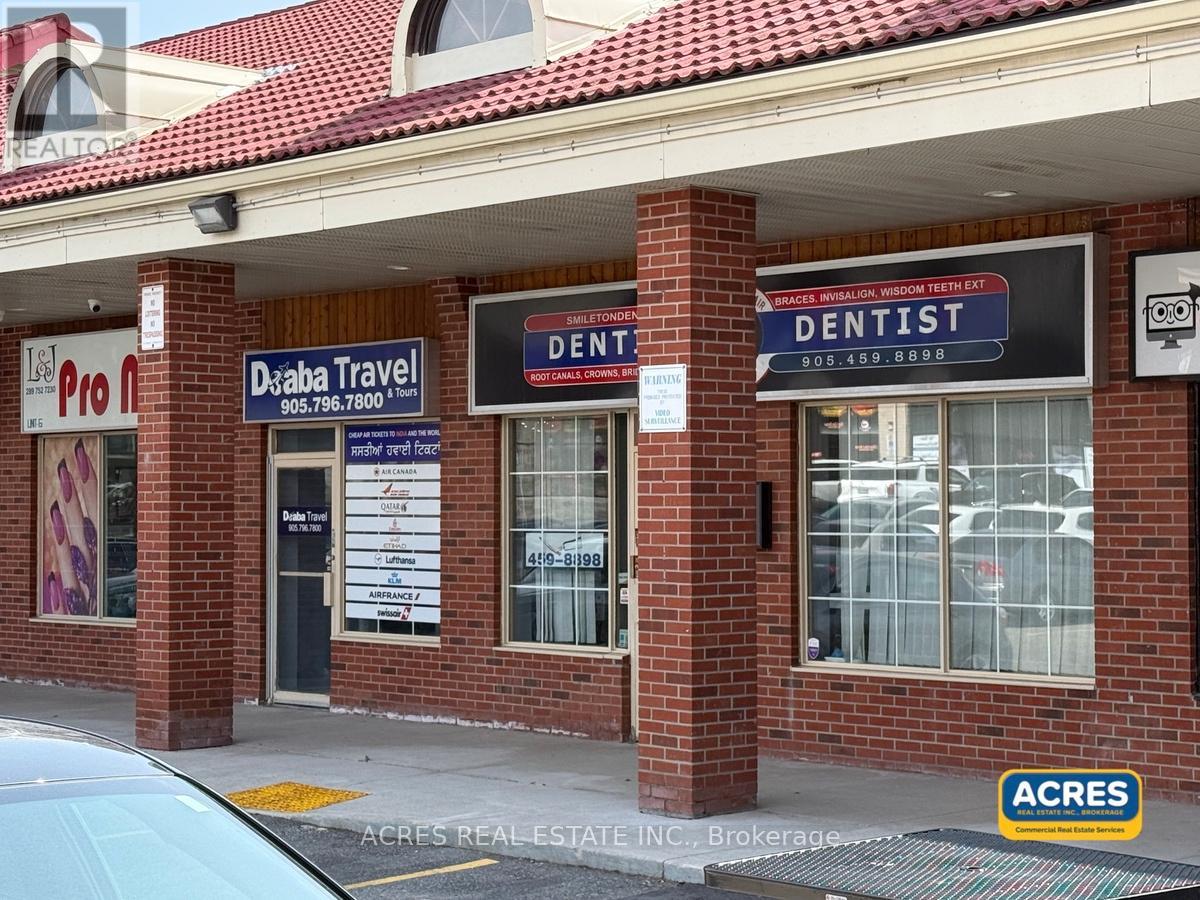 For lease: 418 sq. ft. retail/service unit in a prime Dixie & Bovaird plaza location in Brampton. Small space. Big exposure. Huge opportunity. Position your business in a busy, well-established plaza surrounded by a high-density residential community in one of Brampton's high-traffic corridors. This unit offers excellent North Park exposure, ample surface parking, and a bus stop right at the door steps, making it convenient for both walk-in clients and daily customers. The plaza is occupied by successful, long-standing businesses, including a large daycare centre that has been operating for over 20 years, bringing steady daily traffic and strong local visibility. Ideal for many professional, retail, and service-based businesses such as paralegal office, insurance broker, immigration consultant, mortgage broker, small retail, or professional office. Additional exposure is available with pylon signage at only $70/month. Located close to Brampton Civic Hospital, Bovaird Drive, and quick access to Highways 410, 407, and 401. No restaurant or cannabis use permitted. Don't miss opportunity in a high-demand Brampton plaza-ideal for the right business to grow, serve, and be seen. (id:50787)