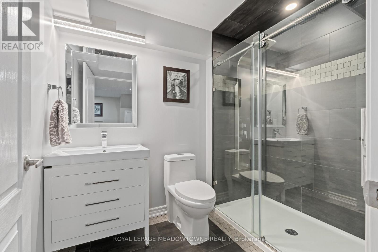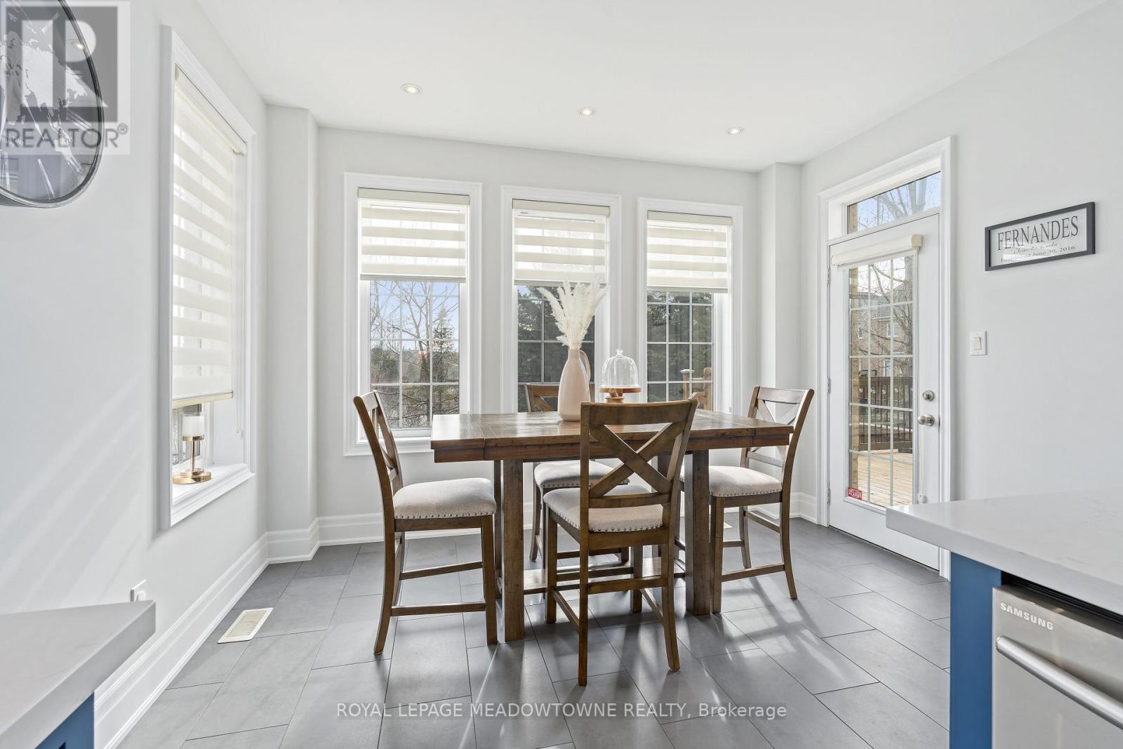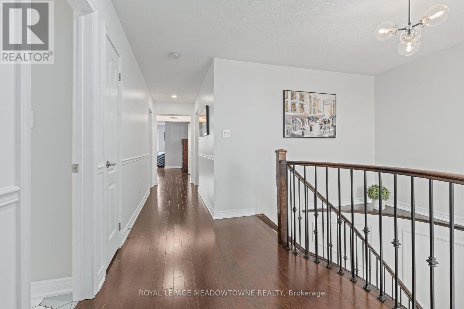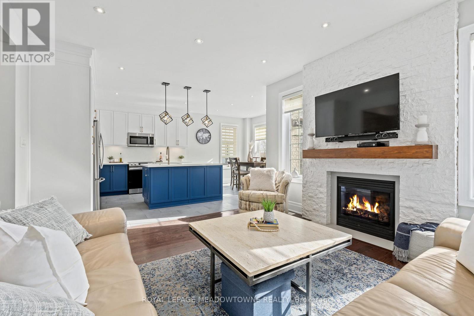 This stunning Georgetown South home, perfectly positioned on a premium lot where nature becomes part of your everyday life. From the moment you arrive, the custom flagstone porch and grand double door entry set the tone for what awaits inside. Step into a soaring foyer that opens into a beautifully finished home, where every detail has been thoughtfully curated. The heart of the home is a magazine worthy, fully renovated kitchen designed to impress, flowing seamlessly into the family room, complete with a striking stone gas fireplace and expansive views of the water beyond. With 4 spacious bedrooms and 4 bathrooms, including a dream primary retreat with a luxurious ensuite, this home offers both comfort and sophistication. Hardwood floors, custom ceilings, crown moulding, and pot lights add warmth and elegance. The finished basement with a custom fireplace provides the perfect space for a home office or quiet retreat, adapting effortlessly to your lifestyle. Step outside to a spectacular two-tier deck wrapped in natural stone, extending around the side and front of the home-an ideal setting for entertaining or simply unwinding while surrounded by peaceful views and the sounds of nature. Located just steps to scenic walking trails, the Gellert Community Centre, shopping, and convenient commuter routes, this home blends tranquility with everyday convenience. With no sidewalk, there's parking for up to 6 vehicles. This is more than a home, it's a lifestyle you'll fall in love with. (id:50787)
