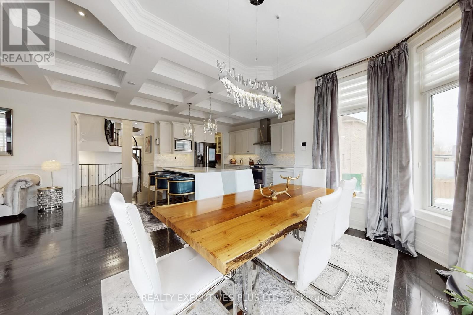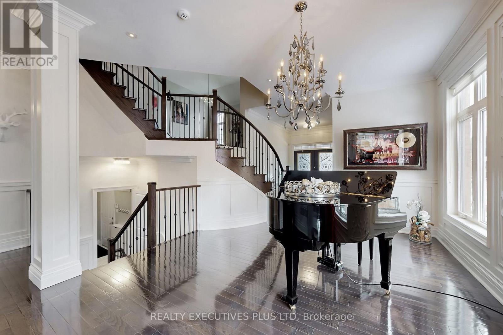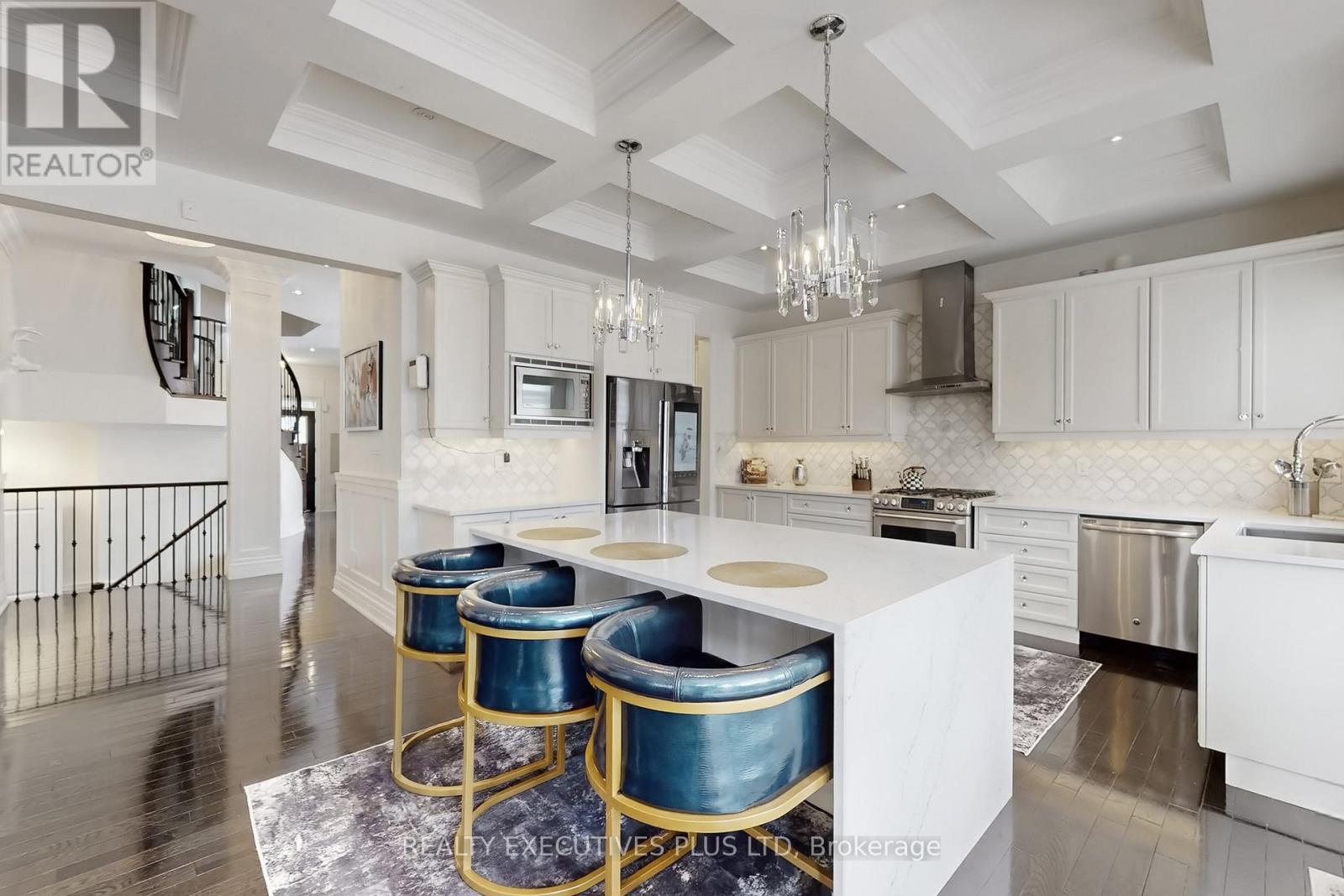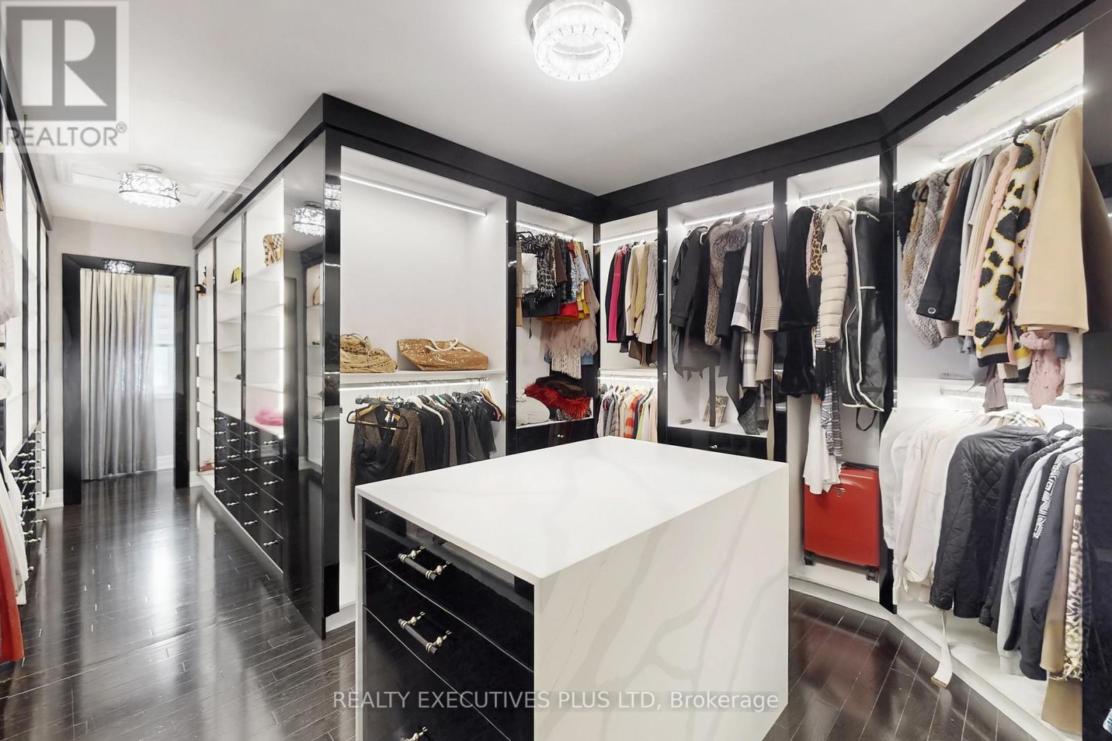 Discover the Epitome of Luxury Living at 10 Sim Hill Crescent, Nestled in one of King City's most Exclusive Neighbourhoods. This Stunning Executive Residence Offers 3,964 Square Feet Above Grade, Plus a Fully Finished Basement, for a Total of 6,264 Square Feet of Sophisticated Living Space. The Chef-Inspired Kitchen Features a Massive Island with Waterfall Quartz Counters, 10-Foot Waffled Ceilings, Abundant Windows, Butler's Servery and Walk-In Pantry. Open to the Family Room with Matching 10-Foot Waffled Ceilings and Gas Fireplace. Main Floor Highlights Include a Private Library with Custom Built-In Cabinetry. A Bonus Extra-Large Family Room Between Main and Second Levels Boasts 12-Foot Ceilings and Walkout to a Private Balcony. The Luxurious Primary Bedroom Showcases a Custom Boutique-Style Masterpiece of Organization and Elegance. Luxurious Floor-to-ceiling Glossy Black Cabinetry with Mirrored Panels and subtle LED accent Lighting Creates a High-end Showroom feel. Abundant open Shelving Displays Handbags and Accessories, While Integrated Hanging Rods Showcase Designer Pieces, and Deep Drawers Store folded Items and Jewelry. The White Marble Island with Built-in Drawers Serves as a Stylish Focal Point while Soft Under-Cabinet Lighting enhances the Sophisticated Ambiance. The Finished Basement Offers In-Law Suite Potential with Large Recreation Room, Custom Built-Ins, Exercise Room And 3-Pc Bath. Outside, an Oversized Pie-Shaped Yard Features a Fully Landscaped Ultra-Luxury Pool with Three Waterfalls, Built-In Hot Tub with Spillover, Automatic Cover, Automation Panel, LED Lighting, Plus a Custom Cabana with High-End Built-In Kitchen and Sundeck. A Rare Opportunity to Own a True Showpiece In King City's Prestigious Enclave. (id:50787)