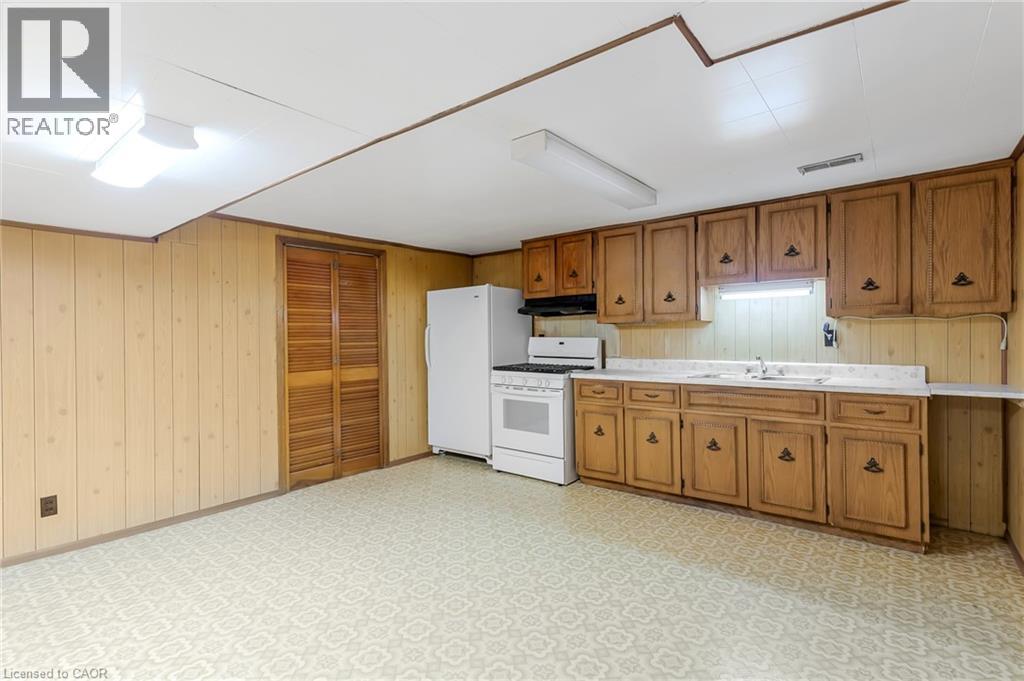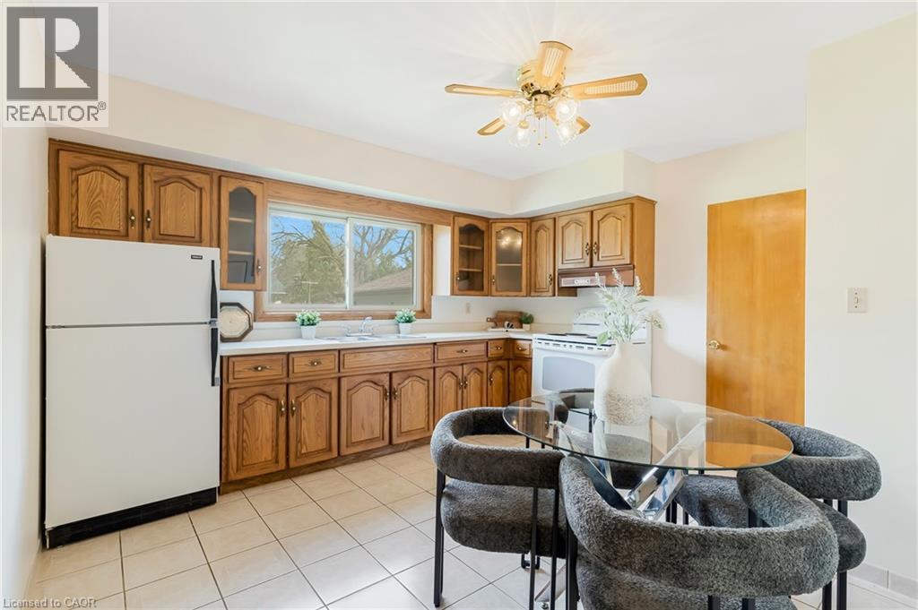 Opportunity meets practicality in this solid brick bungalow set on a large pie-shaped lot in Guelph. This mature home (built in 1964), has ample living space (965 sqft AG + 915 sqft BG), three bedrooms, two bathrooms and a sun-filled main living space. The large kitchen over looks the backyard and includes additional space for family dining. The home is move-in ready while also presenting a compelling upside. The finished basement is already equipped with a second kitchen, dining area, and a second bathroom, making it ideally suited for conversion into a separate dwelling unit. With a side entrance that leads to the basement stairs, there's perfect potential for multi-generational living or rental income with minimal work required. With a detached single car garage and generous driveway providing ample parking, plus a spacious backyard, this property checks the boxes for both homeowners and investors looking to maximize value. Some recent updates include a new furnace and air condition in 2023, a new roof on the home in 2015 and the garage in 2018. (id:50787)