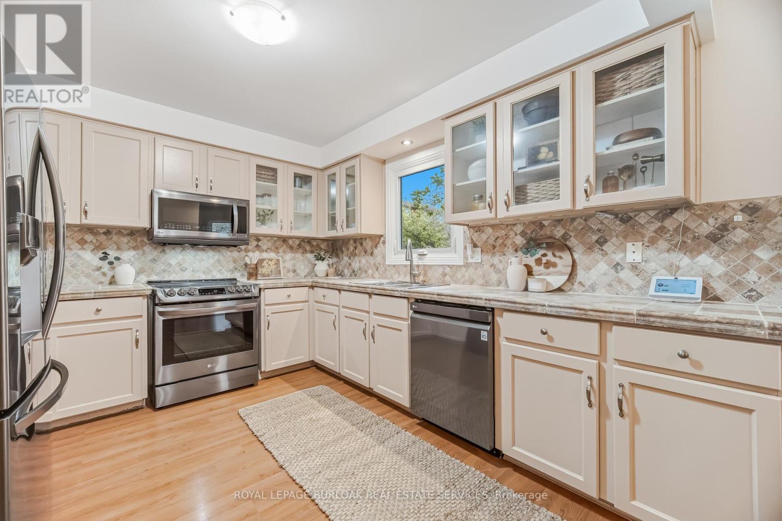 Welcome to 1004 Roxborough Drive, a beautifully updated family home in Oakville's highly sought-after Glen Abbey community. Offering 3,682 sqft of finished living space, this 4-bedrm, 3.5-bathrm residence blends modern comfort with timeless appeal in a location known for its top-rated schools, scenic trails, and family-friendly atmosphere. The main level features a bright and inviting living room with a charming bay window, a separate dining room ideal for hosting, and a spacious family room complete with an electric fireplace insert, perfect for relaxing evenings. The gourmet kitchen is thoughtfully designed with contemporary finishes and a welcoming breakfast area overlooking the backyard, making it the heart of the home. Upstairs, the generous primary suite offers a walk-in closet and a private 4-piece ensuite, creating a comfortable retreat. Recent updates include fresh interior painting and new carpeting throughout the upper level (2026), along with beautifully renovated bathrooms featuring a jacuzzi tub and modern shower installations (2025).Fully finished basement with brand new carpet, expands your living space with a versatile recreation room, dedicated exercise area, home office, and a stylish 3-pc bathroom with heated floors. Additional storage and a cold room add practical convenience. Significant upgrades enhance both efficiency and peace of mind, including attic insulation upgraded to 20 inches ('25) and a rebuilt chimney ('25). Step outside to enjoy a beautifully landscaped backyard featuring a 10' x 12' aluminium louvered pergola with privacy curtains and insect screen (2025), perfect for outdoor entertaining, along with a 10' x 10' garden shed on a concrete slab (2022) and attractive pebbled concrete walkways ('20). Ideally located close to shopping, restaurants, parks, and easy access to major highways, this home offers the perfect balance of lifestyle and convenience. A wonderful opportunity to settle into a vibrant, established neighbourhood (id:50787)