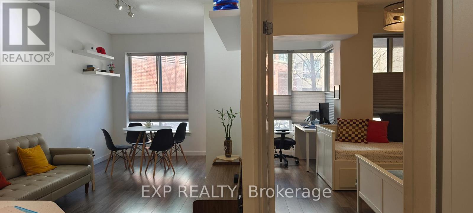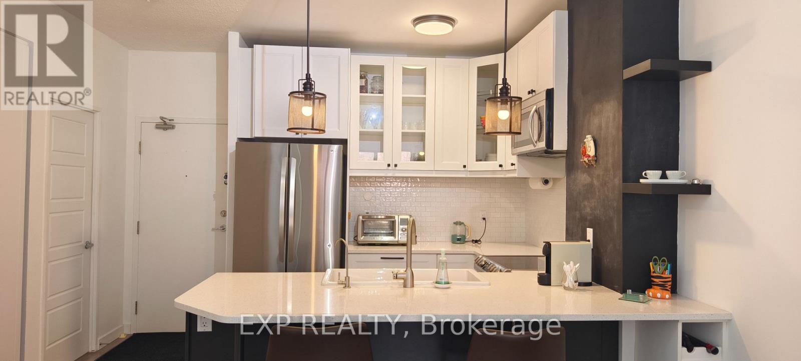 Beautiful 1+1 Bdrm With 660 Sq. Ft Modern Suite At City Sphere! This Spacious Unit Features An Exceptional Open-concept Layout With 9 Ft Ceilings And Abundant Natural Light From Large Windows. Trendy Stylishly Updated With Extensive Cabinets, Upgraded Stainless Steels Appliances, Quartz Counters, Ceramic Back-splash, Double-Sinks And A Generous Breakfast Bar For You In This Fantastic Chef Kitchen. Large Serene Bedroom Showcases Elegant Wall Panels & Functional B/I Wardrobe With Drawers For Extra Storage, It Overlooks Bright Good Sized Den Ideal For Home Office Or Extended Living Space > No Wait Time For Elevator - Steps To Public Transit, Entertainment District, Restaurants, Pubs, Shopping, Sport Venues, The City Free Outdoor Swimming Pool, Trinity Bellwoods Park & Stackt Market! > Just Pack & Move In To Enjoy Vibrant City Life And Impressive Building Amenities Including A Rooftop Hot Tub With Beautiful City View, Multiple BBQs, Running Track,Steam Room, Gym And 24-Hrs Concierge! ***DON'T MISS THIS SWEET HOME For Professional & A Lovely Couple >> No Pet & Non-Smokers.> (id:50787)