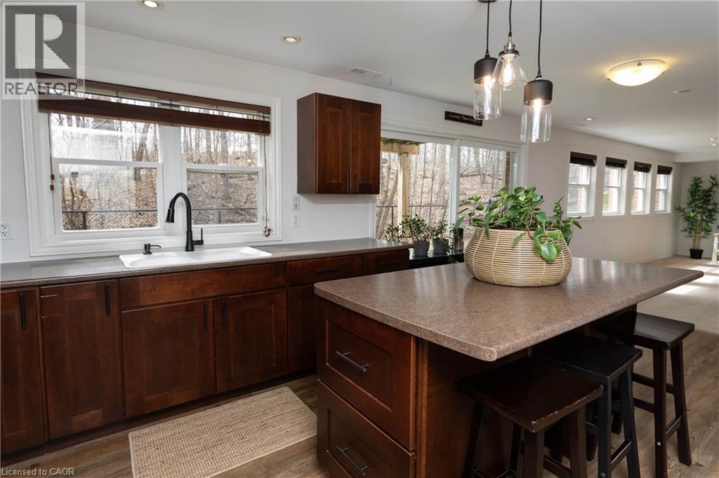 Stunning fully finished home in desirable Galt North, backing onto greenspace with a walkout basement! The main floor features hardwood throughout, with a bright front living room that flows seamlessly into a private office, highlighted by a striking two-sided feature fireplace. A spacious dining room with a stone accent wall opens into the inviting family room with a gas fireplace, and large windows looking out into the peaceful forest. The kitchen offers an island, lots of cupboard space, an eat-in area, and an 8-ft sliding door leading to the elevated deck—perfect for entertaining. Upstairs, you’ll find a versatile loft-style family room (easily converted to a fourth bedroom) with a cheater door to the 4-piece bath. The primary suite is a true retreat, featuring double-door entry, 2 walk-in closets with built-in organizers, and a wall-mounted electric fireplace. You will love the spacious ensuite bathroom, which features double sinks, a soaker tub, and a separate tiled shower. The two additional bedrooms are generously sized and well-appointed, plus there is a handy upper floor laundry room. The walkout basement is fully finished and ideal for multi-generational living or future rental potential, complete with a full kitchen, large living area, two bedrooms, a 3-piece bathroom with heated floors, and a second laundry area—all with beautiful walk-out access to the backyard. This solid brick home also offers a double car garage and is ideally located close to shopping, schools, Cambridge Sports Park, Puslinch golf course, and Highway 401. A fantastic opportunity in a sought-after location—don’t miss it! (id:50787)