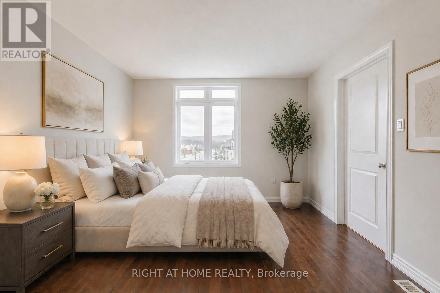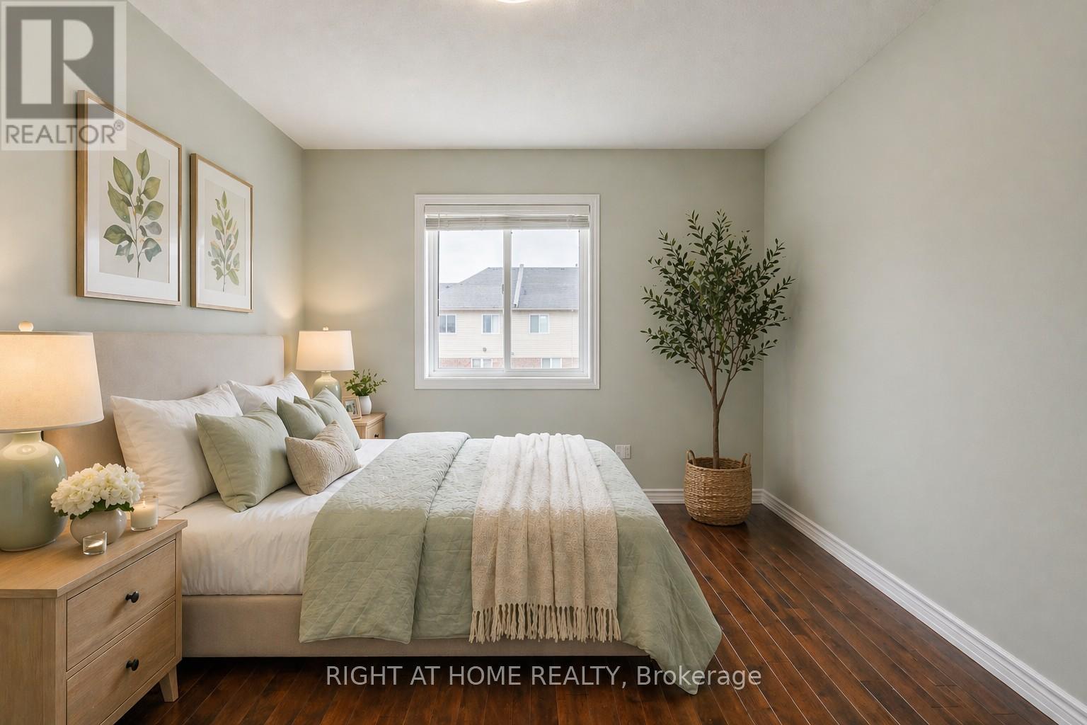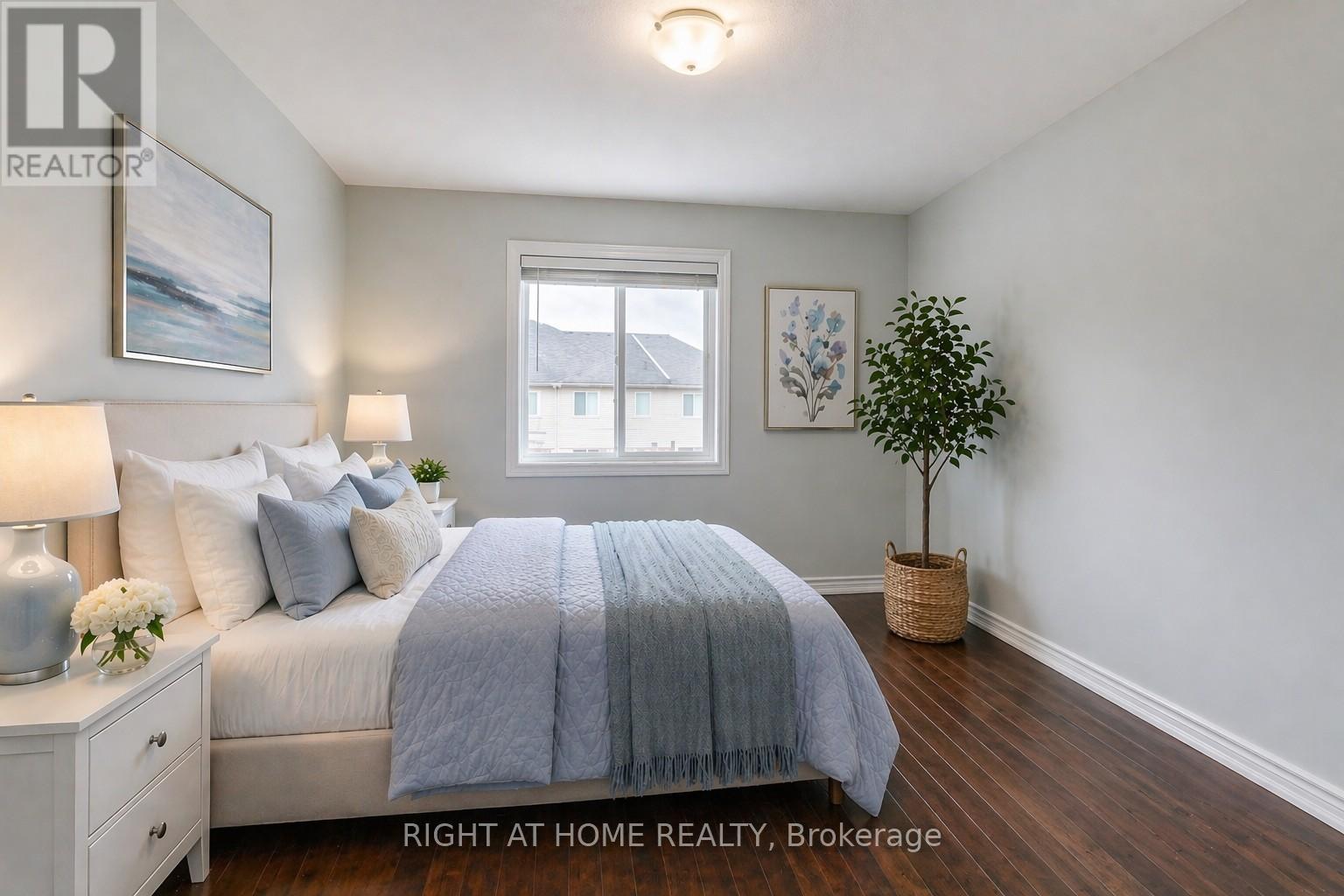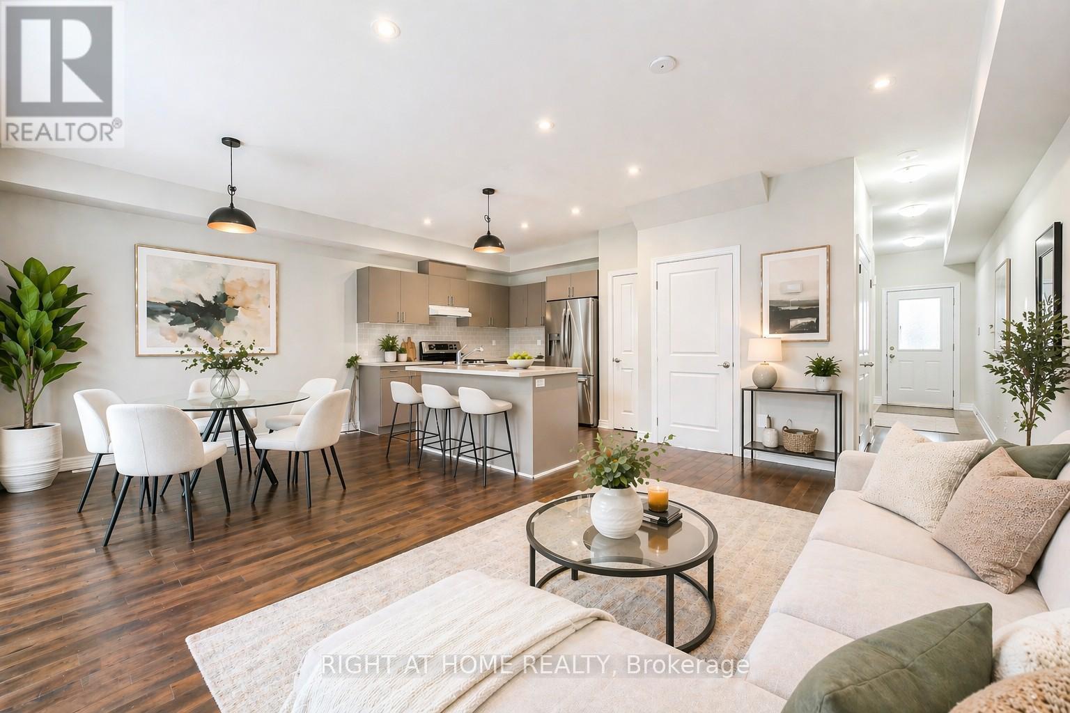 Beautifully upgraded 3-bedroom, 2.5-bath carpet-free freehold townhouse featuring a bright, spacious open-concept layout with high ceilings, hardwood floors on the main and second levels, pot lights in the kitchen and living area, and freshly professionally finished natural décor paint throughout. Modern kitchen with island, quartz countertops, backsplash, upgraded cabinetry, stainless steel appliances, gas line-ready stove, and water line for ice-making fridge. The spacious primary bedroom offers an upgraded 5-piece ensuite with double sinks, a separate soaker tub, and a stand-up shower. The standout "Muskoka in the city" backyard features a large custom-built solid deck with composite grooved boards and a beautifully designed gazebo with privacy curtains and extensive party lighting, perfect for entertaining rain or shine. Fully fenced yard with vegetable garden and a unique apple tree producing four varieties on one tree, two growing peach-producing trees purchased directly from the farm, plus a backyard solar panel system. Convenient side-door access to oversized 1.5 car garage with total parking for 3 vehicles. Prime location just 5 minutes to Lake Ontario with easy access to Costco, Winona Park, Winona Crossing shopping centre, Fifty Point Conservation Area, schools, GO Transit, Hwy QEW & 403, public transit, and all amenities. Pictures are virtually staged. A great place to call home. (id:50787)