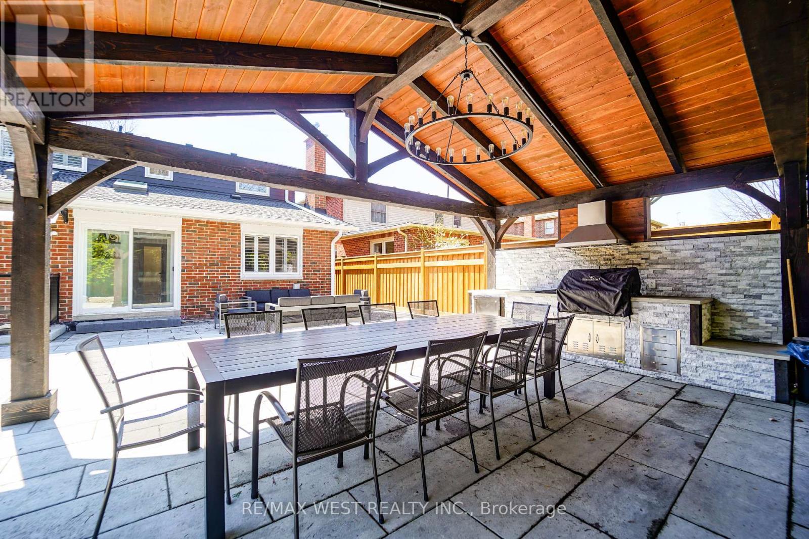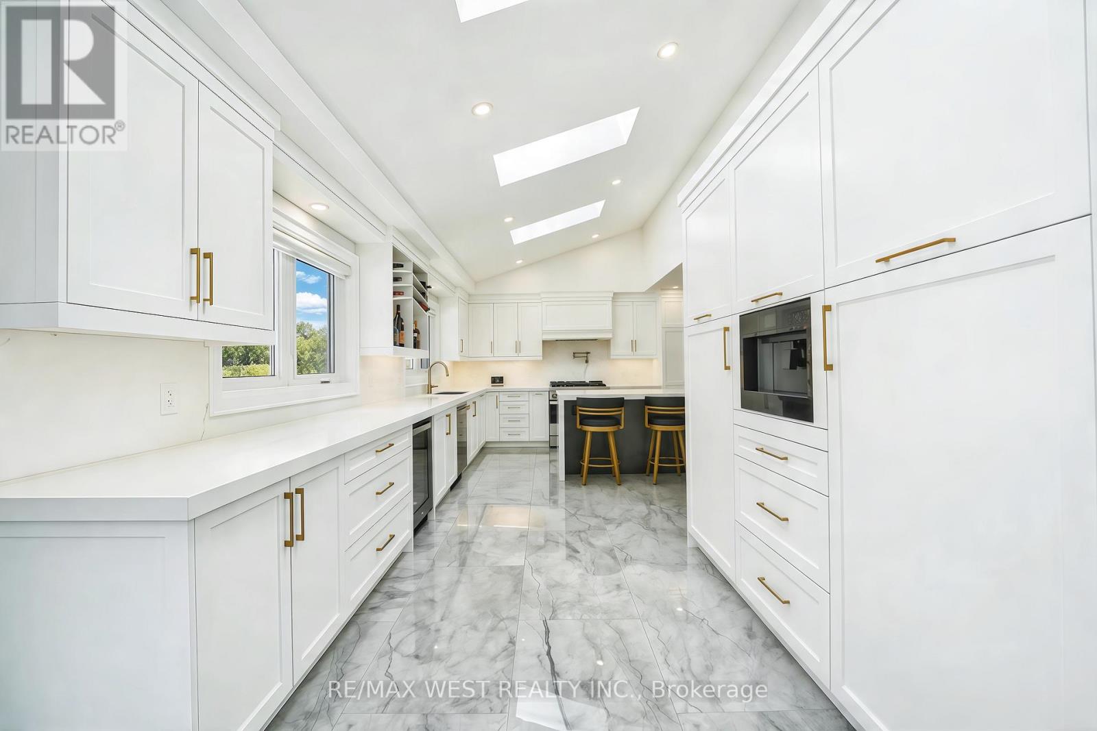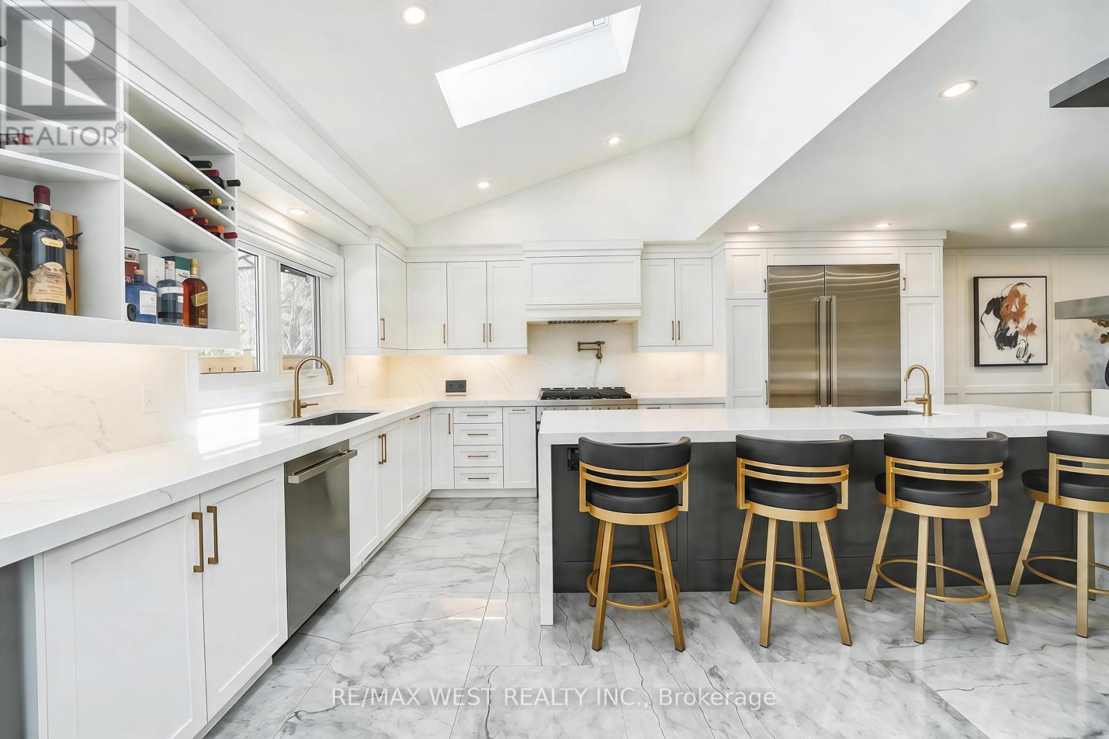 Spectacular, custom renovated home in the highly sought after Greens of St. Georges, this breathtaking property showcases premium and exceptional craftsmanship and luxury finishes throughout (see Schedule C for full details). A grand foyer leads to a fully renovated main floor with over 11' ceilings and Velux skylights with automatic blackout shades, filling the space with natural light. The designer kitchen features premium cabinetry, HanStone (Canadian-made) quartz countertops, Brizo fixtures, pot filler, and top-tier JennAir Noir appliances including a 42" built-in fridge, 36" gas range, built-in coffee machine, dishwasher, plus a Whirlpool wine fridge. Spacious main floor family room with marble accent wall and fireplace. A functional mudroom with built-ins and garage access. Smart upgrades include Lutron Caseta lighting, Nest thermostat, upgraded electrical with 200 Amp service, and a high-security front door. Upstairs offers a luxurious primary suite with a custom walk-in closet, additional bedrooms with built-in closet systems, solid wood doors throughout, and recently renovated spa-like bathrooms featuring Schluter heated floors. Separate entrance to the fully finished basement which includes a complete second kitchen and full bathroom, ideal for extended family or entertaining. Outdoors, enjoy a private, professionally landscaped oasis backing onto greenbelt, featuring a custom pavilion by Wolf Lake Timber Works, gourmet outdoor kitchen with built-in 32" Napoleon grill, side burner and fridge, a 14' Hydropool swim spa, artificial turf, irrigation and drainage systems, new fencing, and custom shed. Additional upgrades include a Kohler whole-home generator, surveillance system with Nest cameras and smoke/CO detectors, new A/C (2025), roof (2021), garage door and exterior doors (2023). Simply must be seen! (id:50787)