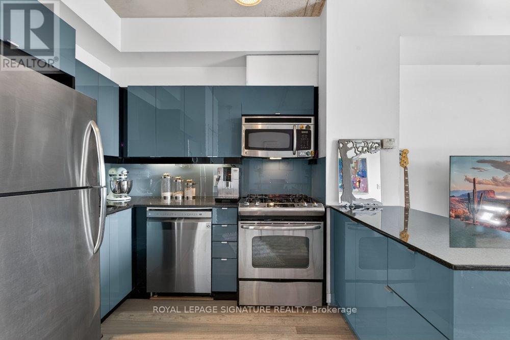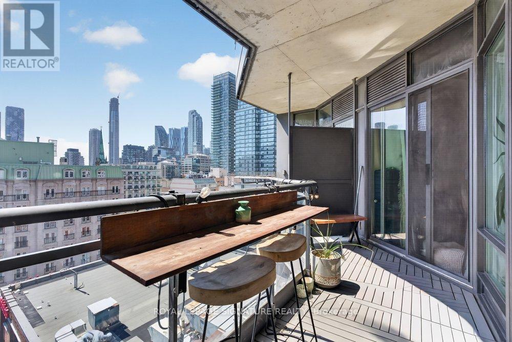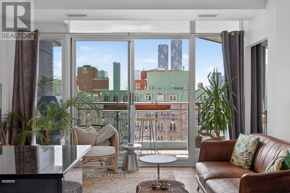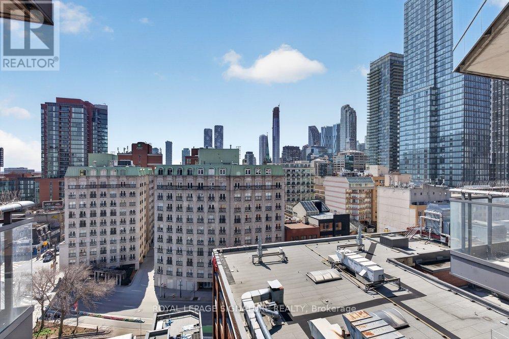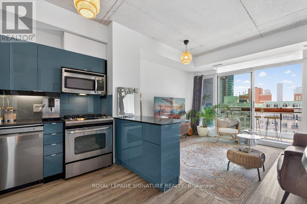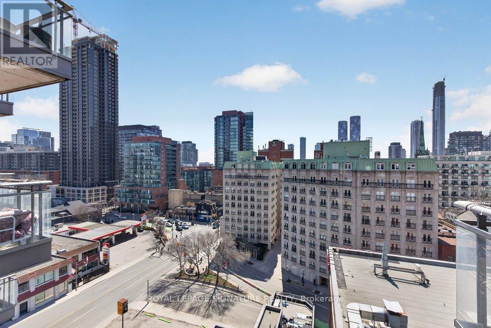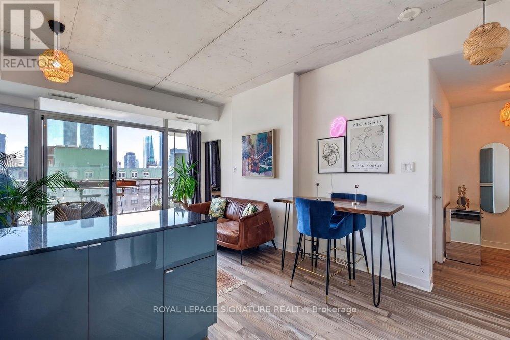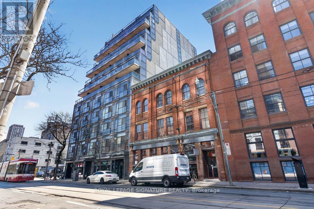 Welcome to Glasshouse Lofts, an exceptional loft residence in the heart of downtown Toronto, perfectly positioned at Queen & Jarvis in the vibrant Church-Yonge Corridor, where the charm of the Garden District meets the historic character of the St. Lawrence Market neighbourhood, all just moments from the Financial District. Soaring 9'3" exposed ceilings and dramatic floor-to-ceiling windows set the tone, flooding the space with natural light while framing breathtaking, unobstructed views of the French Quarter and the city skyline, creating an old-world European charm. The desirable wide layout creates a sense of openness rarely found in downtown condos, offering a highly functional layout for everyday living and effortless entertaining.The thoughtfully renovated kitchen is a true standout, featuring modern finishes and a coveted gas stove, a rare luxury in high-rise living, making it a space where cooking becomes a genuine pleasure. Just beyond, step out to your private balcony, complete with a natural gas BBQ hookup. Generous in size, it feels like a true extension of the living space, perfect for hosting dinner gatherings, cocktail evenings, or enjoying quiet al fresco moments with a stunning urban backdrop. Beautiful laminate flooring flows seamlessly throughout, adding warmth and continuity to the space. The generously sized bedroom provides a peaceful retreat, featuring a double closet and a private walkout to the balcony, where morning coffee comes paired with a view worth waking up for. Step outside and immerse yourself in the pulse of the city. Surrounded by Toronto's most sought-after destinations, from St. Lawrence Market and St. James Park to the Eaton Centre, everything is just steps away. Transit is exceptionally convenient, with streetcars at your doorstep and a short walk to Queen Subway Station. This isn't just a home, it's a lifestyle. A refined urban escape with a distinctly European feel tucked into one of Toronto's most dynamic neighbourhoods. (id:50787)