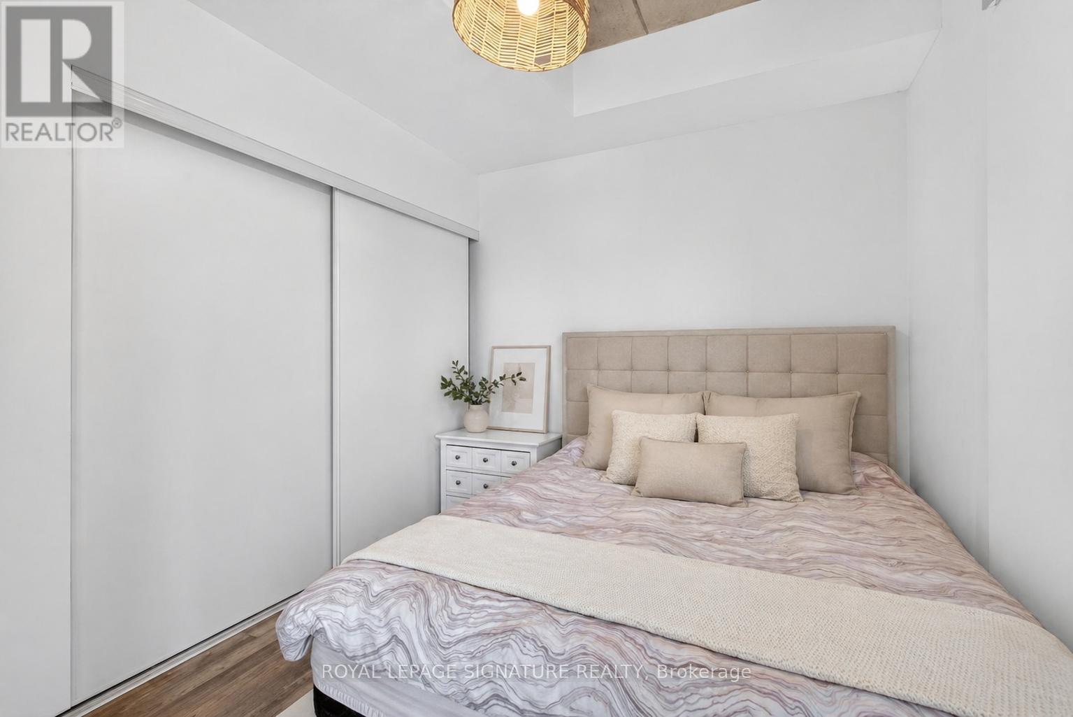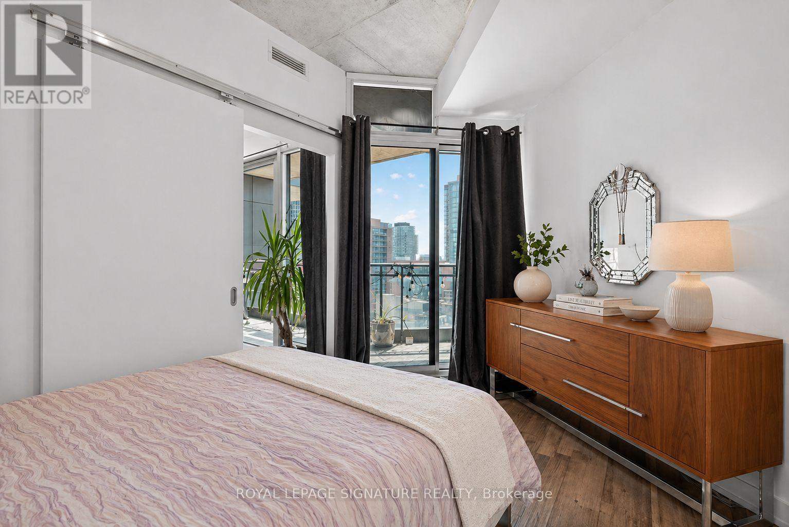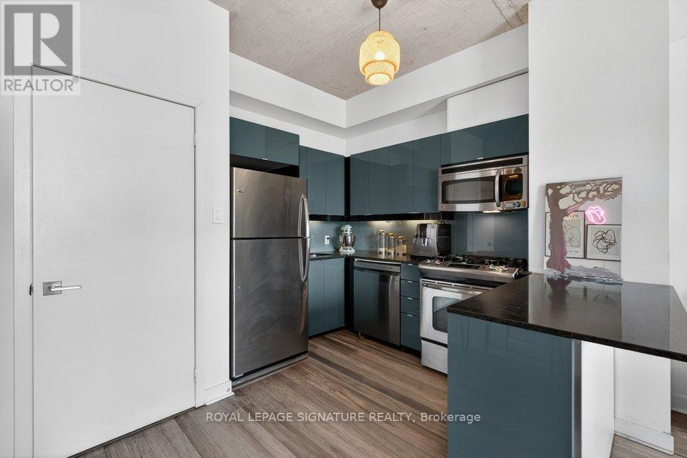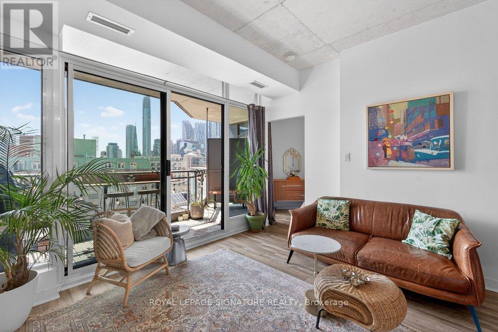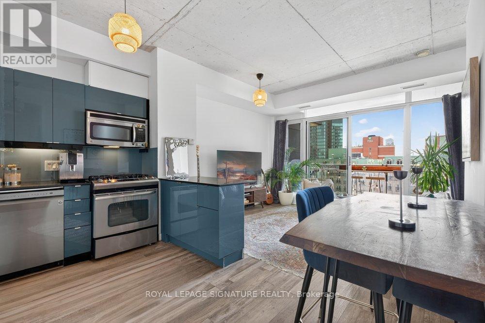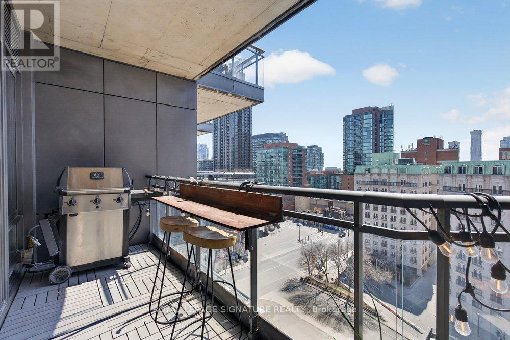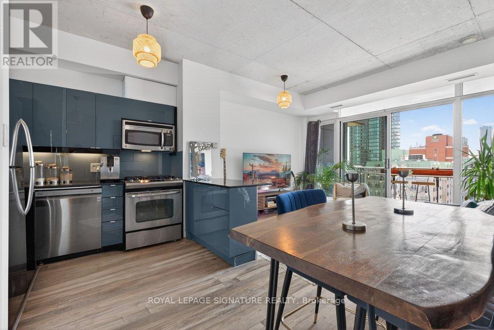 Welcome to Glasshouse Lofts, an exceptional loft residence in the heart of downtown Toronto, perfectly positioned at Queen & Jarvis in the vibrant Church-Yonge Corridor, where the charm of the Garden District meets the historic character of the St. Lawrence Market neighbourhood, all just moments from the Financial District. Soaring 9'3" exposed ceilings and dramatic floor-to-ceiling windows set the tone, flooding the space with natural light while framing breathtaking, unobstructed views of the French Quarter and the city skyline, creating an old-world European charm. The desirable wide layout creates a sense of openness rarely found in downtown condos, offering a highly functional layout for everyday living and effortless entertaining.The thoughtfully renovated kitchen is a true standout, featuring modern finishes and a coveted gas stove, a rare luxury in high-rise living, making it a space where cooking becomes a genuine pleasure. Just beyond, step out to your private balcony, complete with a natural gas BBQ hookup. Generous in size, it feels like a true extension of the living space, perfect for hosting dinner gatherings, cocktail evenings, or enjoying quiet al fresco moments with a stunning urban backdrop. Beautiful laminate flooring flows seamlessly throughout, adding warmth and continuity to the space. The generously sized bedroom provides a peaceful retreat, featuring a double closet and a private walkout to the balcony, where morning coffee comes paired with a view worth waking up for. Step outside and immerse yourself in the pulse of the city. Surrounded by Toronto's most sought-after destinations, from St. Lawrence Market and St. James Park to the Eaton Centre, everything is just steps away. Transit is exceptionally convenient, with streetcars at your doorstep and a short walk to Queen Subway Station. This isn't just a home, it's a lifestyle. A refined urban escape with a distinctly European feel tucked into one of Toronto's most dynamic neighbourhoods. (id:50787)