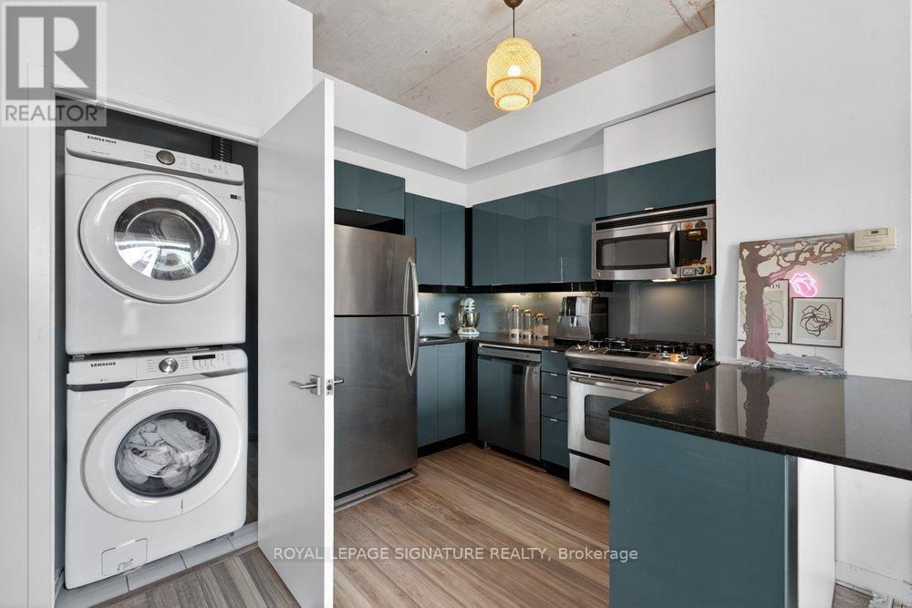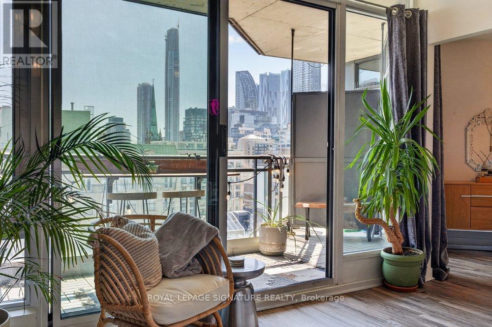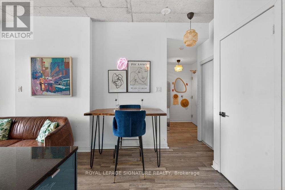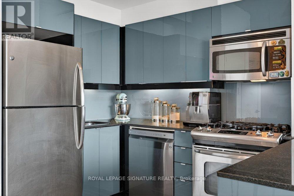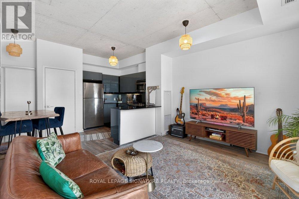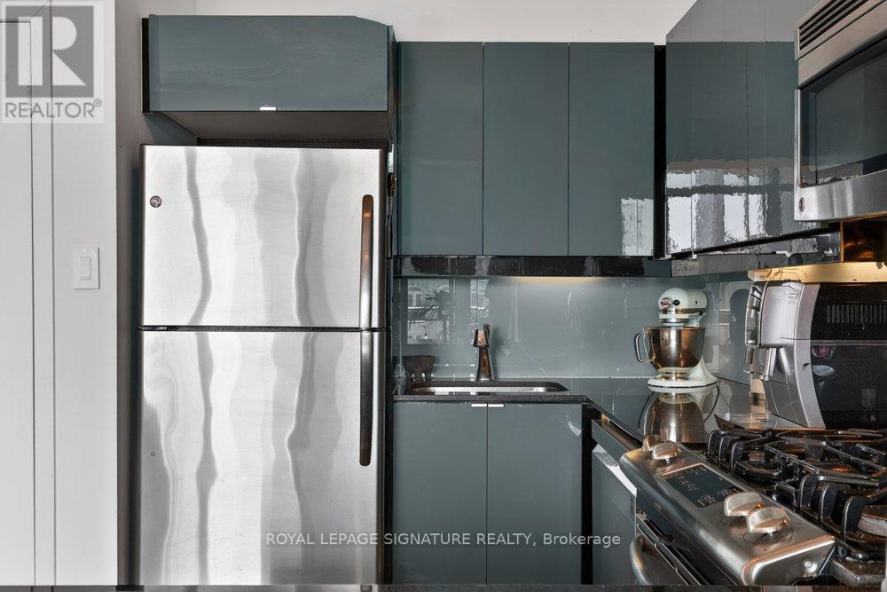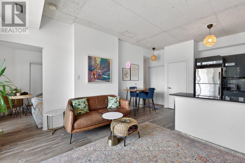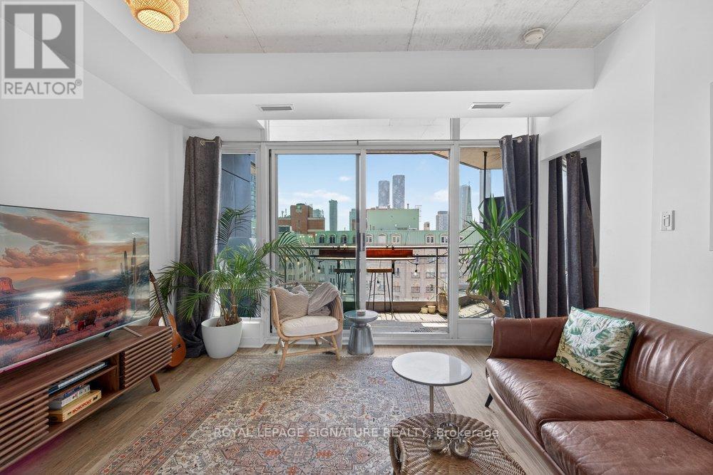 Welcome to Glasshouse Lofts, an exceptional loft residence in the heart of downtown Toronto, perfectly positioned at Queen & Jarvis in the vibrant Church-Yonge Corridor, where the charm of the Garden District meets the historic character of the St. Lawrence Market neighbourhood, all just moments from the Financial District. Soaring 9'3" exposed ceilings and dramatic floor-to-ceiling windows set the tone, flooding the space with natural light while framing breathtaking, unobstructed views of the French Quarter and the city skyline, creating an old-world European charm. The desirable wide layout creates a sense of openness rarely found in downtown condos, offering a highly functional layout for everyday living and effortless entertaining.The thoughtfully renovated kitchen is a true standout, featuring modern finishes and a coveted gas stove, a rare luxury in high-rise living, making it a space where cooking becomes a genuine pleasure. Just beyond, step out to your private balcony, complete with a natural gas BBQ hookup. Generous in size, it feels like a true extension of the living space, perfect for hosting dinner gatherings, cocktail evenings, or enjoying quiet al fresco moments with a stunning urban backdrop. Beautiful laminate flooring flows seamlessly throughout, adding warmth and continuity to the space. The generously sized bedroom provides a peaceful retreat, featuring a double closet and a private walkout to the balcony, where morning coffee comes paired with a view worth waking up for. Step outside and immerse yourself in the pulse of the city. Surrounded by Toronto's most sought-after destinations, from St. Lawrence Market and St. James Park to the Eaton Centre, everything is just steps away. Transit is exceptionally convenient, with streetcars at your doorstep and a short walk to Queen Subway Station. This isn't just a home, it's a lifestyle. A refined urban escape with a distinctly European feel tucked into one of Toronto's most dynamic neighbourhoods. (id:50787)