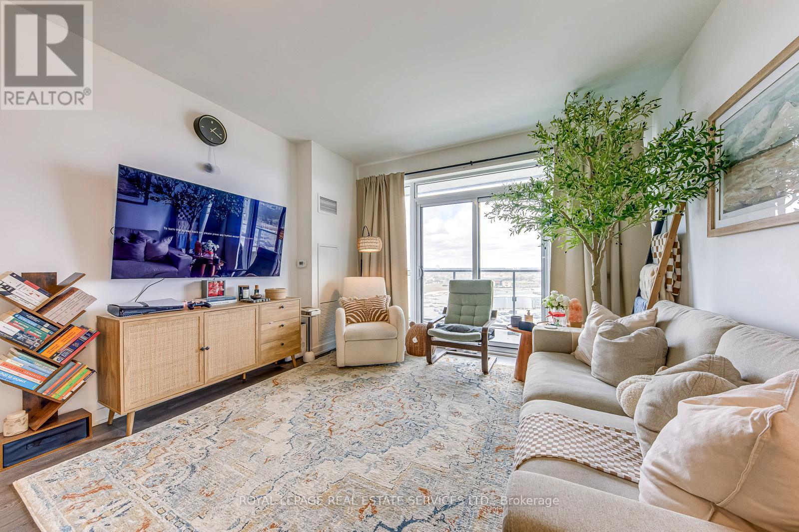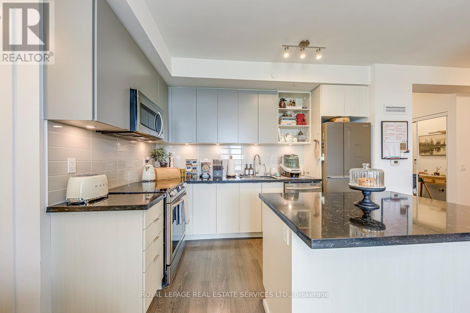 Great opportunity @ Perfect Place to Live in the heart of Erin Mills community! Steps to Erin Mills Mall Town Centre, This Two bedrooms + Den Condo & 2 washrooms is of open-concept layout includes floor-to-ceiling windows, and a generous, combined living and Den dining area. The functional and spacious primary bedroom with a walk in closet and a 3pc ensuite! a 2nd bedroom with a large / Corner terrace patio, this unit has modern Kitchen filled with natural light and boasts stainless steel appliances and a contemporary backsplash Quartze Counter Tops, Kitchen Island, Window Sills, and Laminate Flooring Throughout.! Enjoy the convenience of an ensuite laundry. 1 parking spot, and 1 locker included!. Enjoy top-notch building amenities Endless Situated On 8 Acres Of Extensively Landscaped Grounds & Gardens. 17,000 Sqft Amenity Building W/Indoor Pool, Steam Rooms & Saunas, Fitness Club, Library/Study Retreat, & Rooftop Terrace W/ Bbqs.! Close to all Amenities - Shoppings stores & Dining restuarants , great Schools, Credit Valley Hospital, very close access to HWy 403 & More!. (id:50787)