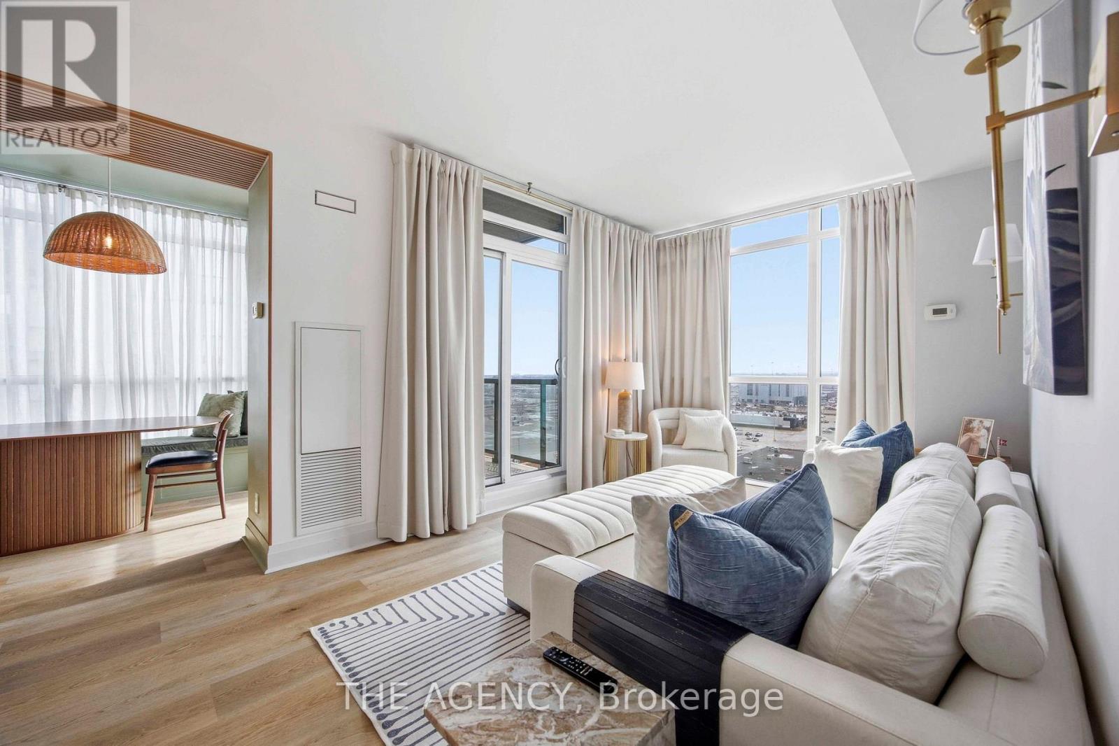 This beautifully updated suite is located in one of Etobicoke's most rapidly evolving communities. offering strong long-term growth potential and an unbeatable lifestyle for young professionals and commuters. Featuring updated flooring, smooth ceilings, fresh paint throughout, and modern light fixtures, this unit is completely move-in ready. The fantasticlayout is both functional and inviting, highlighted by a custom built-in dining area with bench seating for 8, perfect for hosting. Enjoy tranquil views overlooking Lake Ontario, with a parkjust steps away, ideal for dog lovers and outdoor enthusiasts. The desirable corner unit southwest exposure fills the space with natural light and offers stunning evening sunsets. Designed with convenience in mind, this location is ideal for commuters with seamless access to transit and highways. TTC is right at your doorstep, and you're just minutes to the Gardiner Expressway for an easy downtown commute. Plus, Toronto Pearson Airport is only 10 km away, perfect for frequent travelers. Walk to groceries, restaurants, and entertainment, all allwhile being surrounded by green space in a fast-growing, high-demand neighborhood. A perfect blend of style, comfort, and convenience. This is urban living at its best. Residents enjoy exceptional building amenities, including an indoor pool, sauna, hot tub, fully equipped gym, rooftop terrace with BBQs, party room, guest suites, visitor parking, pet wash, car washstation, and 24-hour concierge. (id:50787)