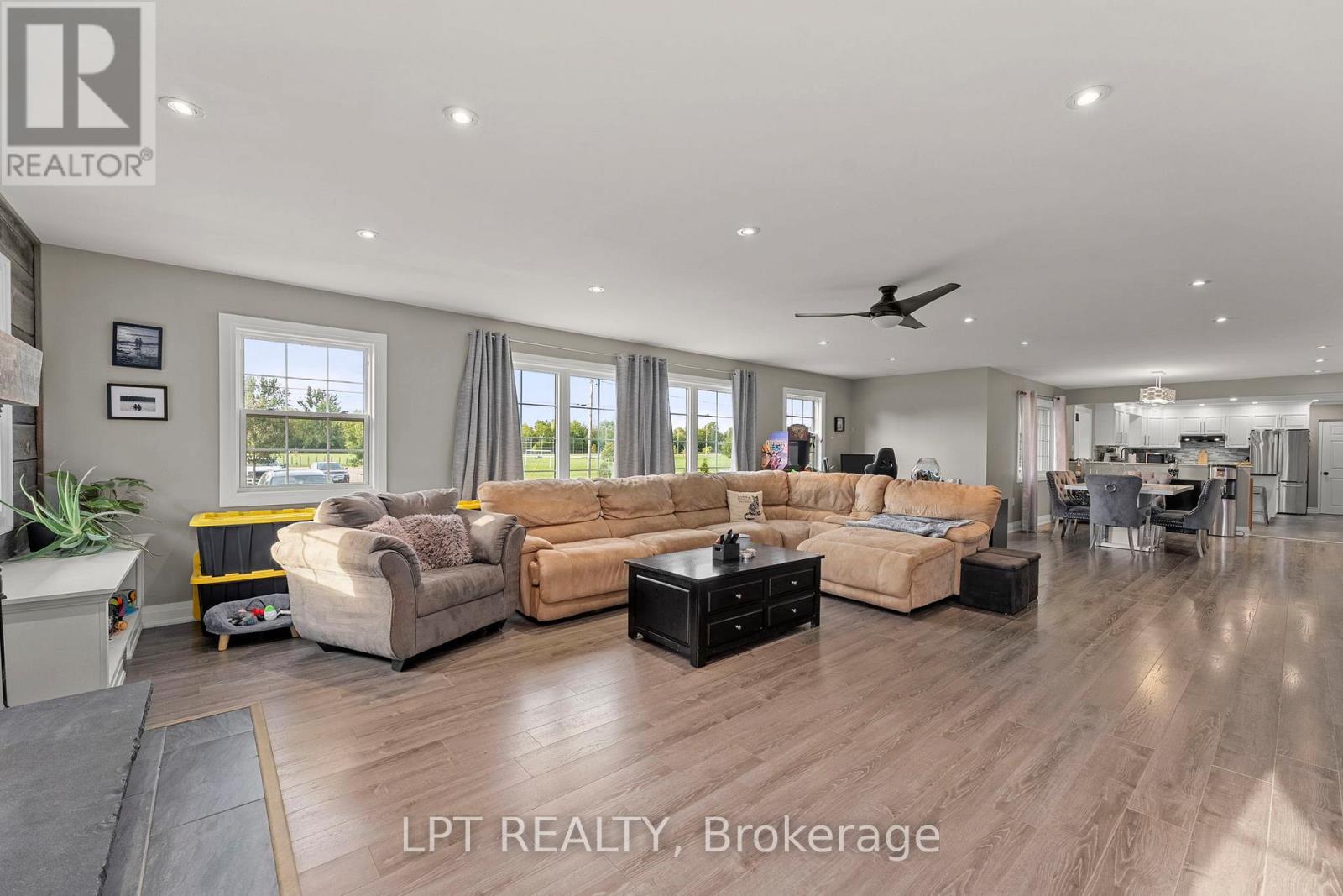 Escape The Ordinary With This 5-Acre Property Offering Endless Possibilities! Whether You Need Room For A Business Yard, Extra Storage, Or Dream Of A Future Hobby Farm, This One Has It All. A 30' X 30' Insulated Garage, Multiple Outbuildings, And A Driveway That Fits 10+ Vehicles Make It A Standout. Enjoy Summer Days On The Expansive Deck Overlooking The Above-Ground Pool And Evenings Surrounded By Peace And Privacy. Inside, The 2,473 Sq. Ft. Bungalow Features A Functional Mudroom With Built-Ins, A Renovated Kitchen, And A Bright Open-Concept Living And Dining Room With Fireplace. The Primary Suite Boasts A Walk-Out To The Deck, Large Walk-In Closet, And 4-Piece Ensuite, With Two More Bedrooms, Two Full Baths, And An Office/Flex Space Completing The Main Floor. The Separate Finished Walk-Up Basement With Its Own Entrance Adds Another 1,218 Sq. Ft. Of Flexible Living Space, Including 3 Bedrooms, A Family Room, Dining Area, And Plenty Of Storage - An Ideal Setup For Visiting Extended Family Or Future Multi-Generational Living (Not Currently A Legal Apartment). All This, Directly Across From West Park And Just Down The Road From Lake Simcoe, Makes This A True Country Escape With Room To Live, Work, And Grow! (id:50787)