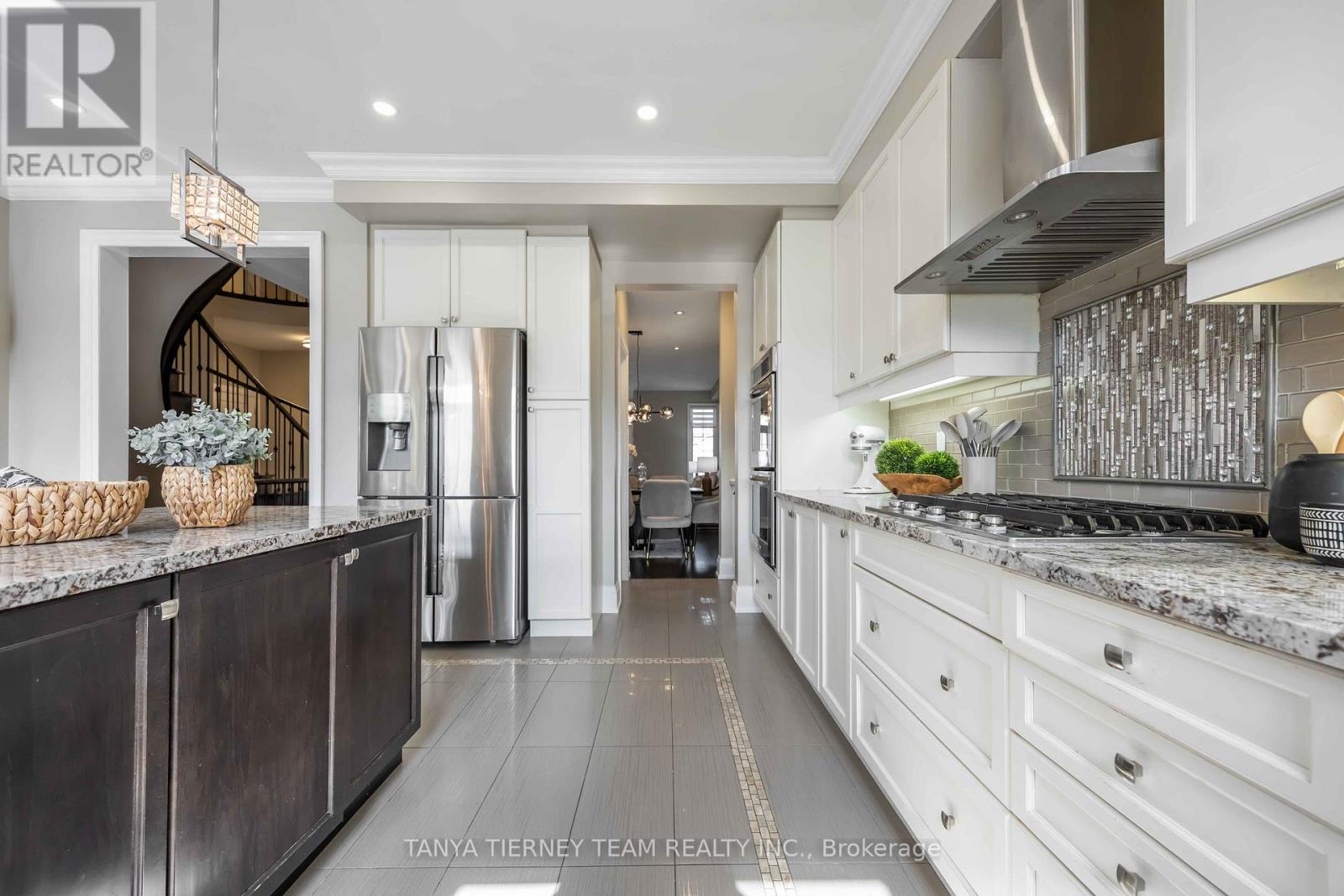 Beautiful Medallion built all brick 4 bedroom family home with a partially finished walk-up basement offering excellent in-law suite potential. An inviting arched stone entry leads into elegant formal living and dining rooms featuring custom millwork and crown moulding throughout. The main floor office with French doors and custom built-ins provides the perfect work-from-home space. A convenient mudroom with built-in storage and direct garage access adds everyday functionality. The gourmet kitchen is designed for both everyday living and entertaining, featuring granite countertops, a working centre island with breakfast bar, stylish backsplash, servery with walk-in pantry, and built-in appliances including a gas cooktop and double oven. The spacious breakfast area offers a sliding glass walk-out to an impressive 700 sq ft two-tier entertainer's deck complete with glass railings, pergola for privacy, fire pit area, and double gated access. Upstairs you'll find the laundry room and four generous bedrooms, each with its own ensuite and closet organizers. The primary retreat offers a large walk-in closet and a luxurious 5-piece spa-like ensuite featuring a soaker tub and glass shower.The partially finished walk-up basement includes a rec room with above-grade windows, ample storage, and fantastic potential for an in-law or multi-generational living space. Located in a highly sought-after Whitby community close to schools, parks, transit, and with easy highway access for commuters, this home offers the perfect combination of space, comfort, and convenience for growing families. (id:50787)