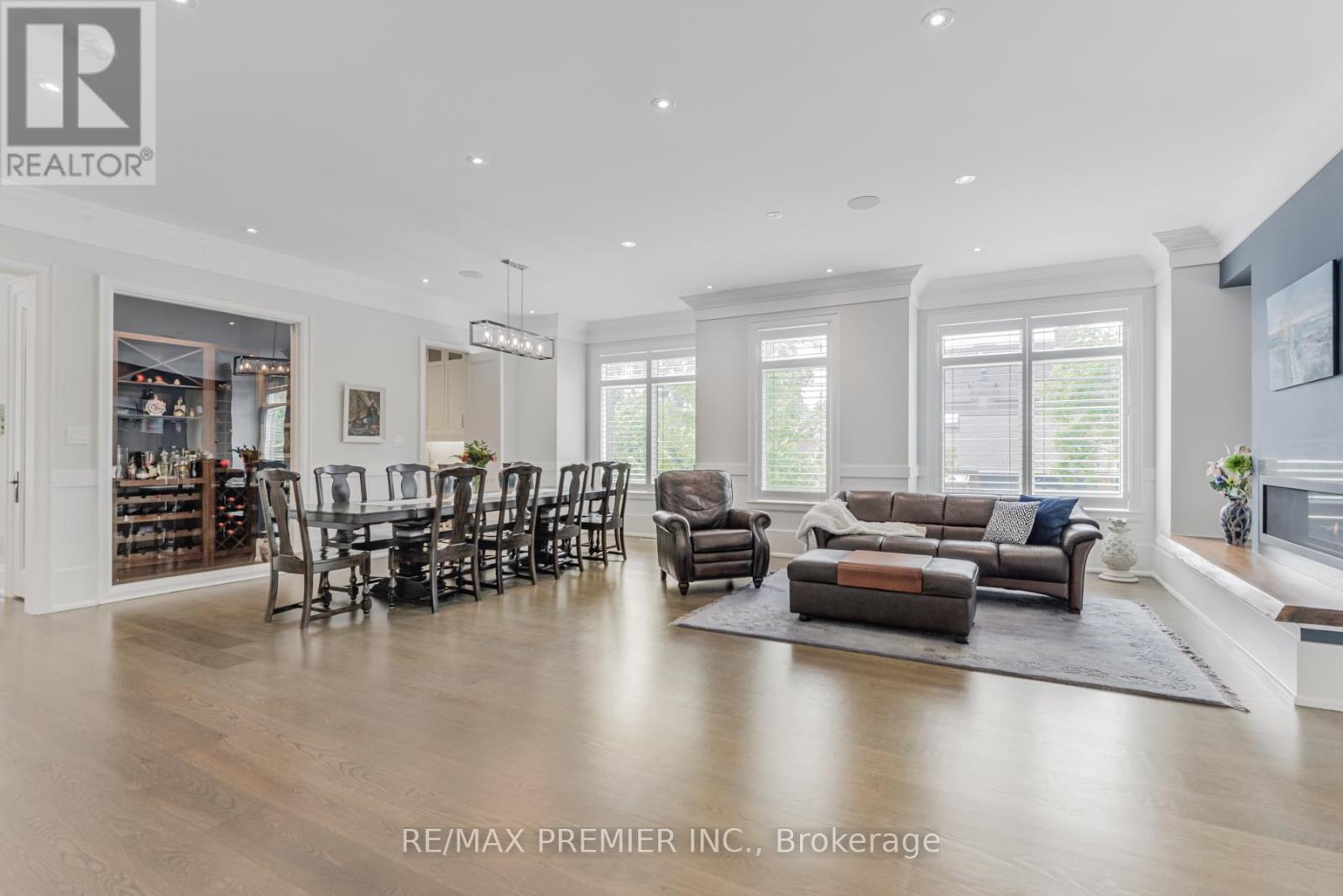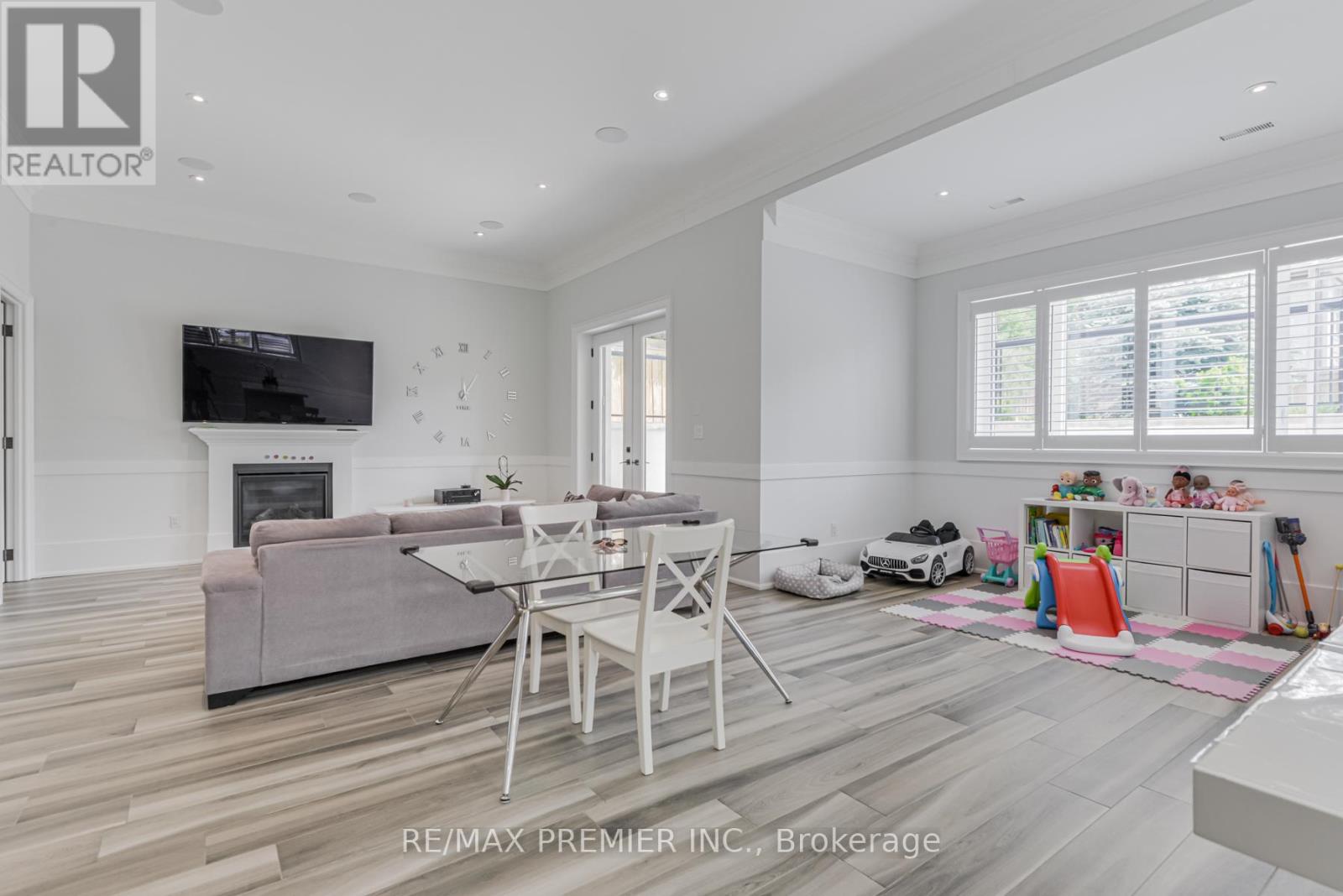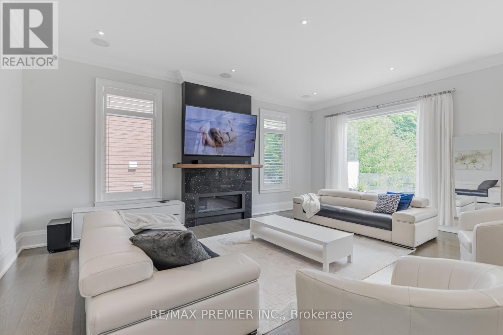 Stunning custom-built modern manor in prestigious Bathurst Manor, offering over 6,000 sq.ft of exceptional living space. This residence combines contemporary elegance, accessibility, and thoughtful design, set on a premium 50 x 150 fully fence lot with a level backyard ideal for entertaining or future pool installation. The main level showcase 10-ft ceilings, engineered hardwood floors, and an open concept layout designed for both comfort and style. The living room has a double-sided gas fireplace which overlooks the front door, while the family room has another gas fireplace opens to a gourmet eat-in kitchen featuring custom cabinetry, integrated appliances, and a large island for casual dining. The dining rm has a walk-in kitchen featuring custom cabinetry, integrated appliances, and a large island for casual dining. The dining rm has a walk-in spirt/wine display. A private den provides the perfect home office or study space. A private elevator, accessible from the grade-level garage, offers seamless mobility between all floors-an ideal feature for multi-generational living or aging in place. The upper level features four bedrooms, each with a private ensuite and 9-ft ceilings. The primary suite includes a 7-piece spa-inspired ensuite with steam shower, bidet, double vanity, freestanding soaker tub, and an electric fireplace heated floor. A separate HVAC system ensures personalized climate control, with sound-insulated laundry and furnace room for added peace. The lower level offers 12ft ceilings which is 7.5 ft of above-grade height, creating a bright living space with a walkout to the backyard, full kitchen, two bedrooms, and family room with gas fireplace-perfect for guests or extended family. The basement approx 120 sq has a laundry room and cold cellar. Smart home technology includes three touchscreen keypads, multi-zone audio, and an integrated security system. Every element has been carefully curated to combine luxury, comfort. (id:50787)