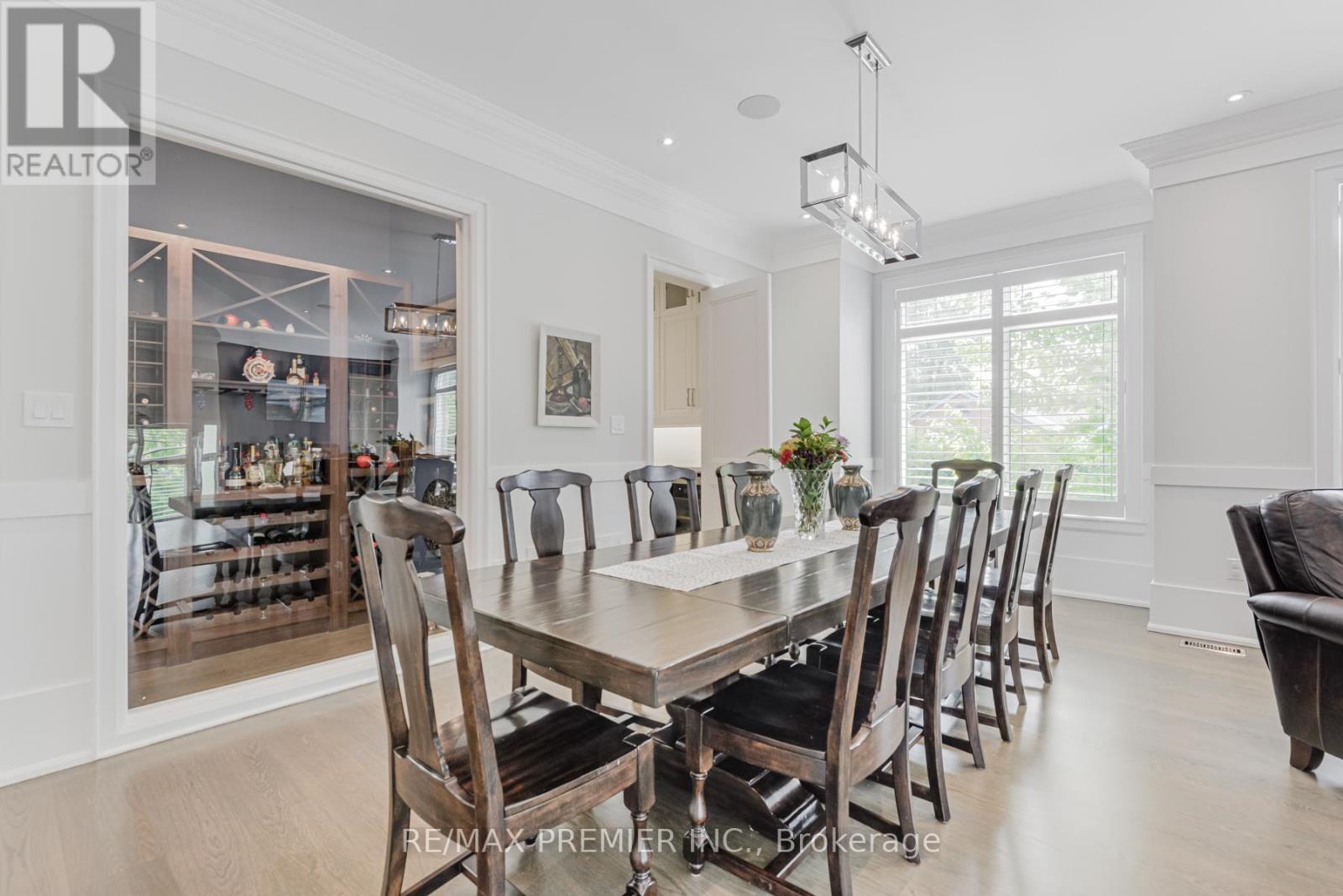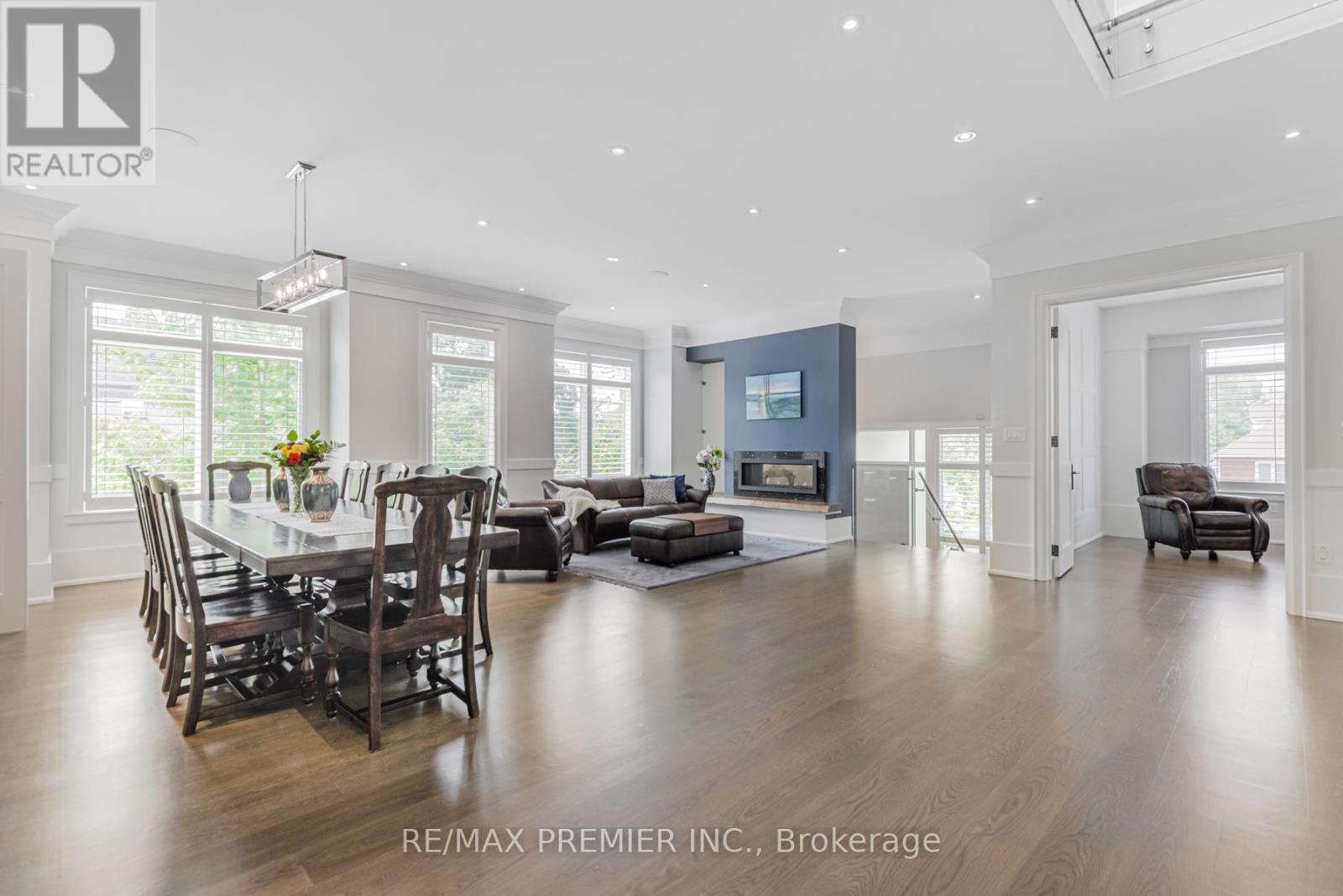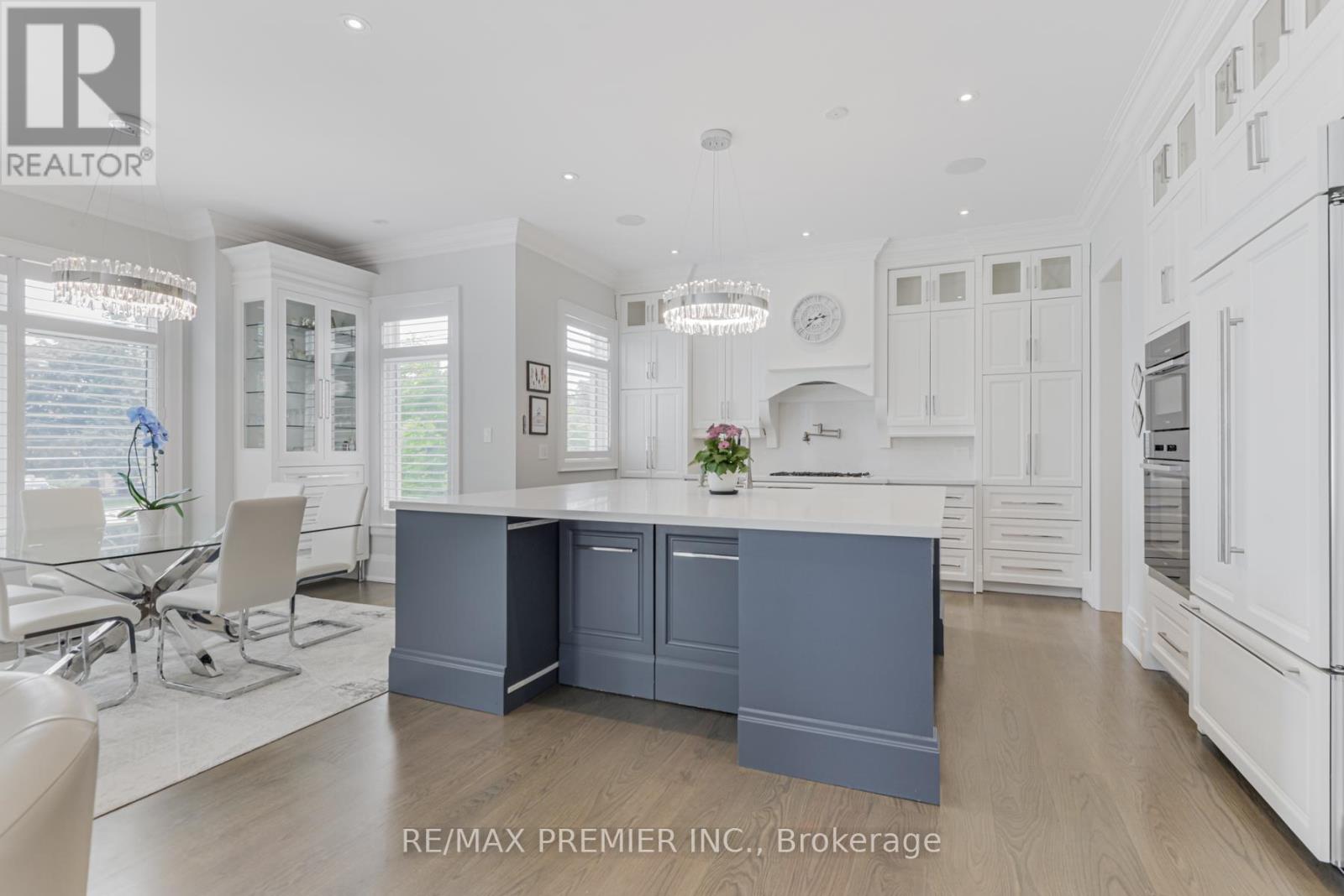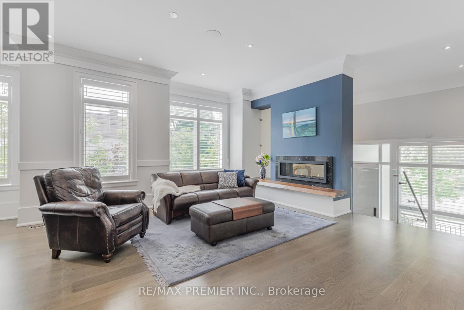 Stunning custom-built modern manor in prestigious Bathurst Manor, offering over 6,000 sq.ft of exceptional living space. This residence combines contemporary elegance, accessibility, and thoughtful design, set on a premium 50 x 150 fully fence lot with a level backyard ideal for entertaining or future pool installation. The main level showcase 10-ft ceilings, engineered hardwood floors, and an open concept layout designed for both comfort and style. The living room has a double-sided gas fireplace which overlooks the front door, while the family room has another gas fireplace opens to a gourmet eat-in kitchen featuring custom cabinetry, integrated appliances, and a large island for casual dining. The dining rm has a walk-in kitchen featuring custom cabinetry, integrated appliances, and a large island for casual dining. The dining rm has a walk-in spirt/wine display. A private den provides the perfect home office or study space. A private elevator, accessible from the grade-level garage, offers seamless mobility between all floors-an ideal feature for multi-generational living or aging in place. The upper level features four bedrooms, each with a private ensuite and 9-ft ceilings. The primary suite includes a 7-piece spa-inspired ensuite with steam shower, bidet, double vanity, freestanding soaker tub, and an electric fireplace heated floor. A separate HVAC system ensures personalized climate control, with sound-insulated laundry and furnace room for added peace. The lower level offers 12ft ceilings which is 7.5 ft of above-grade height, creating a bright living space with a walkout to the backyard, full kitchen, two bedrooms, and family room with gas fireplace-perfect for guests or extended family. The basement approx 120 sq has a laundry room and cold cellar. Smart home technology includes three touchscreen keypads, multi-zone audio, and an integrated security system. Every element has been carefully curated to combine luxury, comfort. (id:50787)