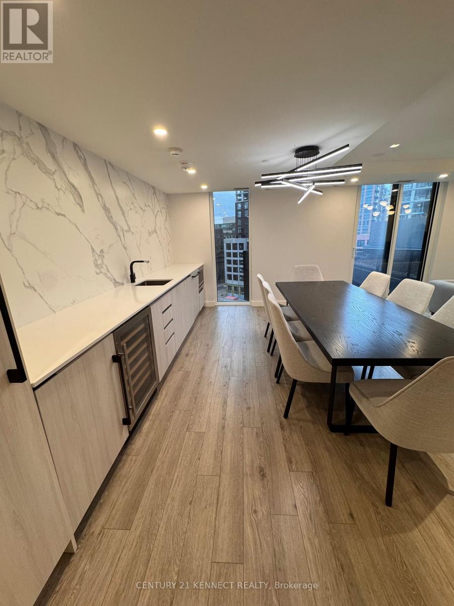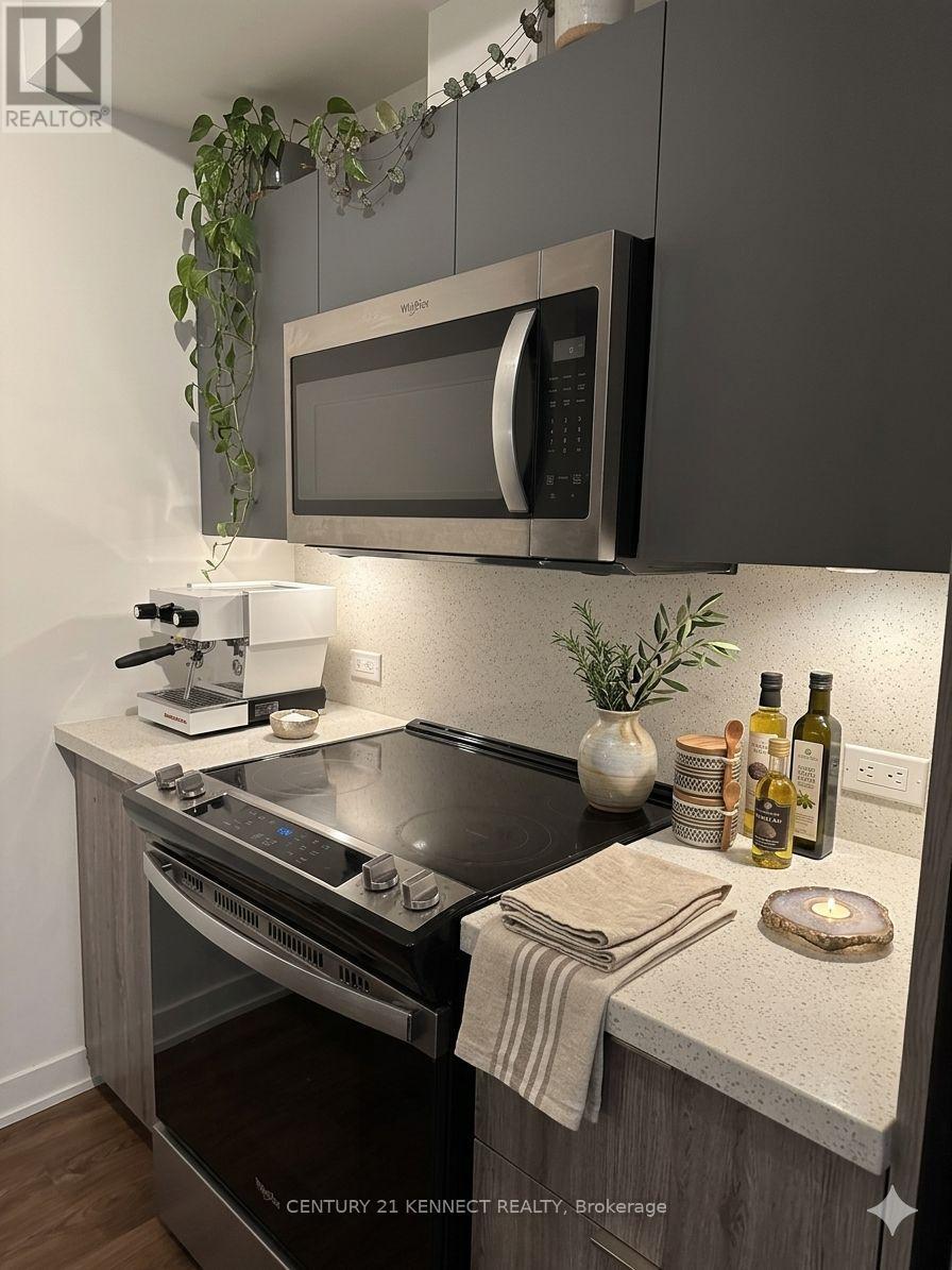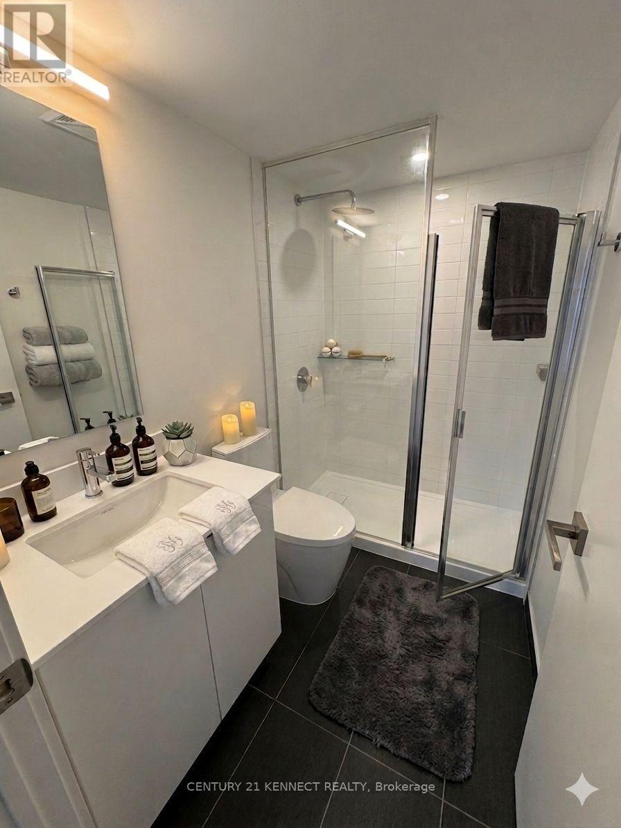 Welcome to this chic, modern 11th-floor suite at the highly desirable Tretti Condos, where Scandinavian-inspired design meets urban convenience. This pristine 2BR, 2BA home features a bright, open-concept layout with 9ft ceilings and high-end finishes throughout. The modern kitchen is a showstopper, featuring quartz countertops and upgraded S/S appliances, including a fridge, stove, microwave, and dishwasher. The primary bedroom serves as a quiet retreat,complete with a private 3pc ensuite and generous closet space.This unit is uniquely positioned right next to the elevator for effortless access and includes thoughtful upgrades like a secure smart lock for keyless entry and custom rolling shades. Enjoy beautiful evening sunsets from your private west-facing balcony, offering a serene escape from the city bustle. The offering is complete with ensuite laundry, 1 underground parking spot, and1 locker.Residents enjoy world-class amenities including a 24hr concierge, a fully equipped gym, a bookable party rooms with an outdoor BBQ patio, and dedicated work/study rooms with meeting spaces & internet. Families will appreciate the indoor children's playroom, while pet owners can take advantage of the on-site dog run and pet spa.The location is a commuter's dream with a direct pedestrian walkway putting you at Wilson Subway Station in just 2 mins. You're only 1 stop from the luxury shopping at Yorkdale Mall and minutes from Hwy 401/400 and Allen Rd. Enjoy unparalleled convenience with a 5-min walk to a massive retail hub featuring Costco, Home Depot, Best Buy, Starbucks, and diverse dining options like Jollibee and Freshii. With lush parks nearby and the new Roger Stadium just one subway stop north, this move-in-ready unit is perfect for professionals or small families seeking the best of the Clanton Park community. (id:50787)