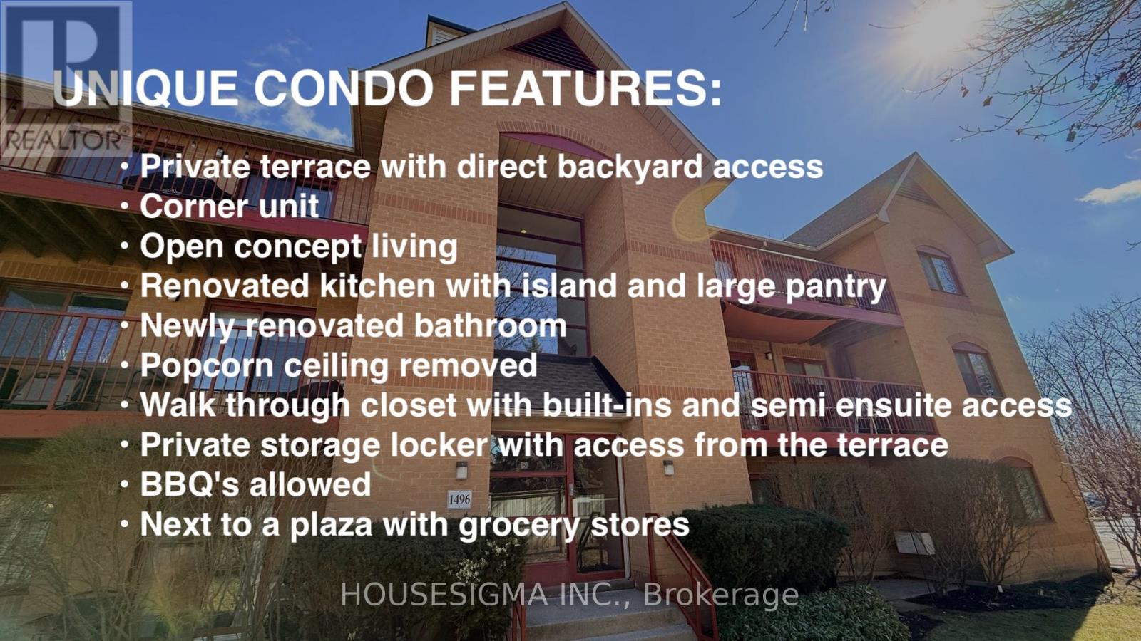 $606 MonthlyCorner open concept unit with a private terrace that opens directly to the backyard, offering the feel of a sunny outdoor space in this boutique building. The unit has been upgraded throughout, including a renovated kitchen with an island, a new bathroom, pot lights, popcorn ceiling removal, and built-ins in the walk-through closet with semi-ensuite access. The kitchen also features a large pantry, and the unit includes an exclusive-use storage locker with direct access from the terrace. Includes one underground parking space, with the option to assume an additional tandem parking space for $55/month. Located next to a plaza with grocery stores and everyday amenities, with excellent highway access and highly regarded schools nearby. (id:50787)
