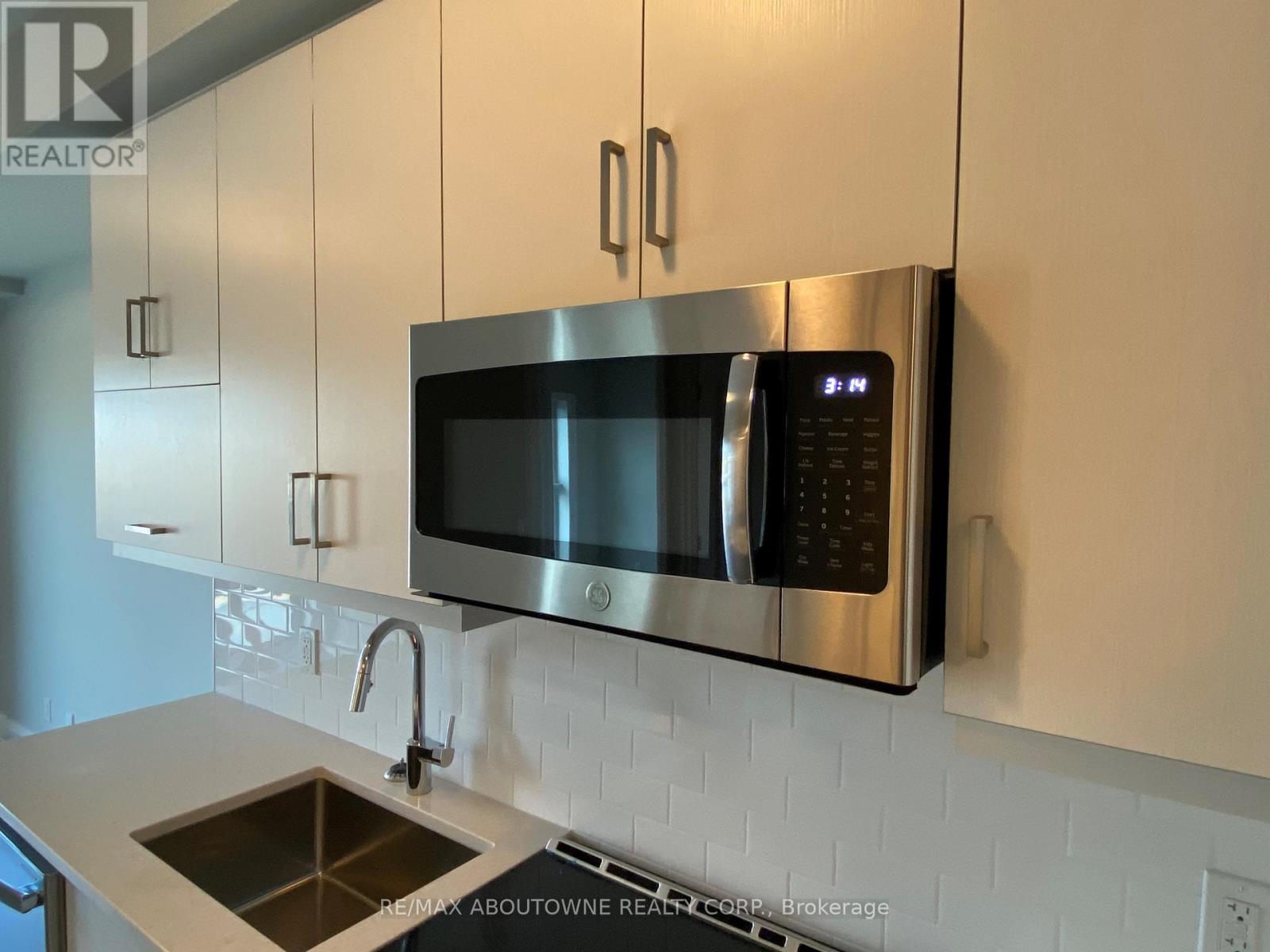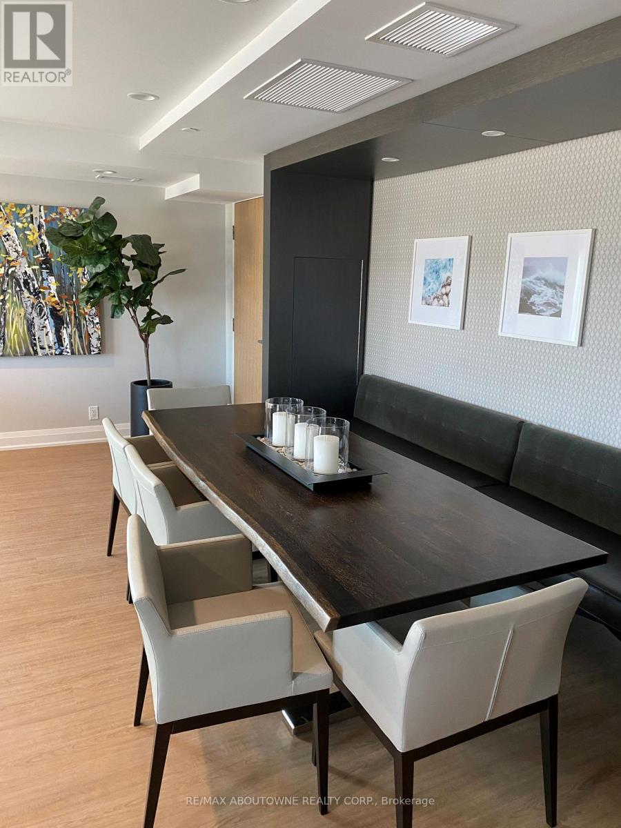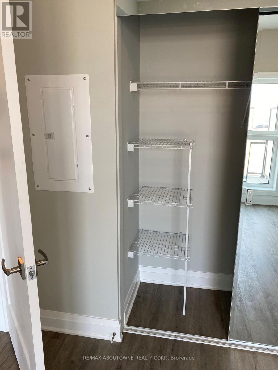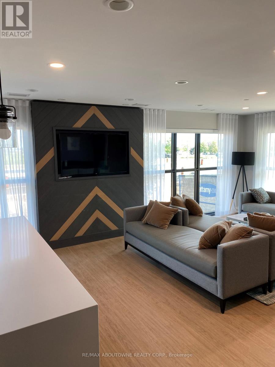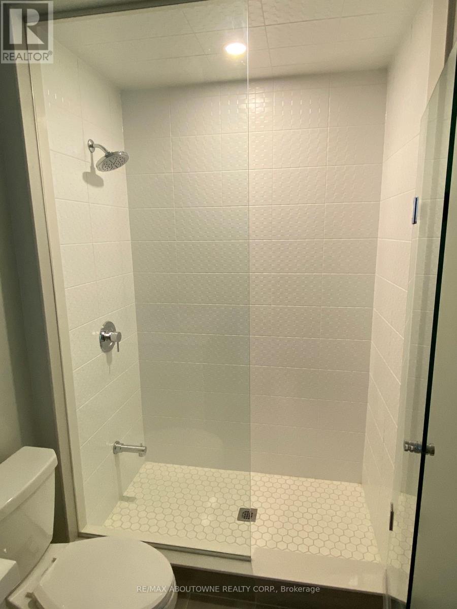 Beautiful 1 bedroom + den executive suite in Mattamy's Bower Condos. Immediate Possession Available! Thousands in luxury upgrades and modern finishes! Kitchen features upgraded porcelain tiles, stainless steel appliances with slide in range, French door refrigerator, built in dishwasher & microwave plus upgraded kitchen cabinetry with pots & pan drawers & quartz countertops with island waterfall. Den can be used as a work or guest space. Upgraded bathroom with walk in shower. Enjoy the sunny south facing exposure & view from your large private terrace. The three piece washroom features upgraded porcelain tiles, vanity and faucets. In suite laundry. 635 sq. ft plus plus 168 sq. ft patio!. One underground parking space and private locker included. Building amenities include fitness room & social lounge. Excellent location, walk to shopping, great parks, public transit and easy access to QEW, 403, 407 and a short drive to Oakville Hospital and Oakville Go station. Triple A tenants (id:50787)