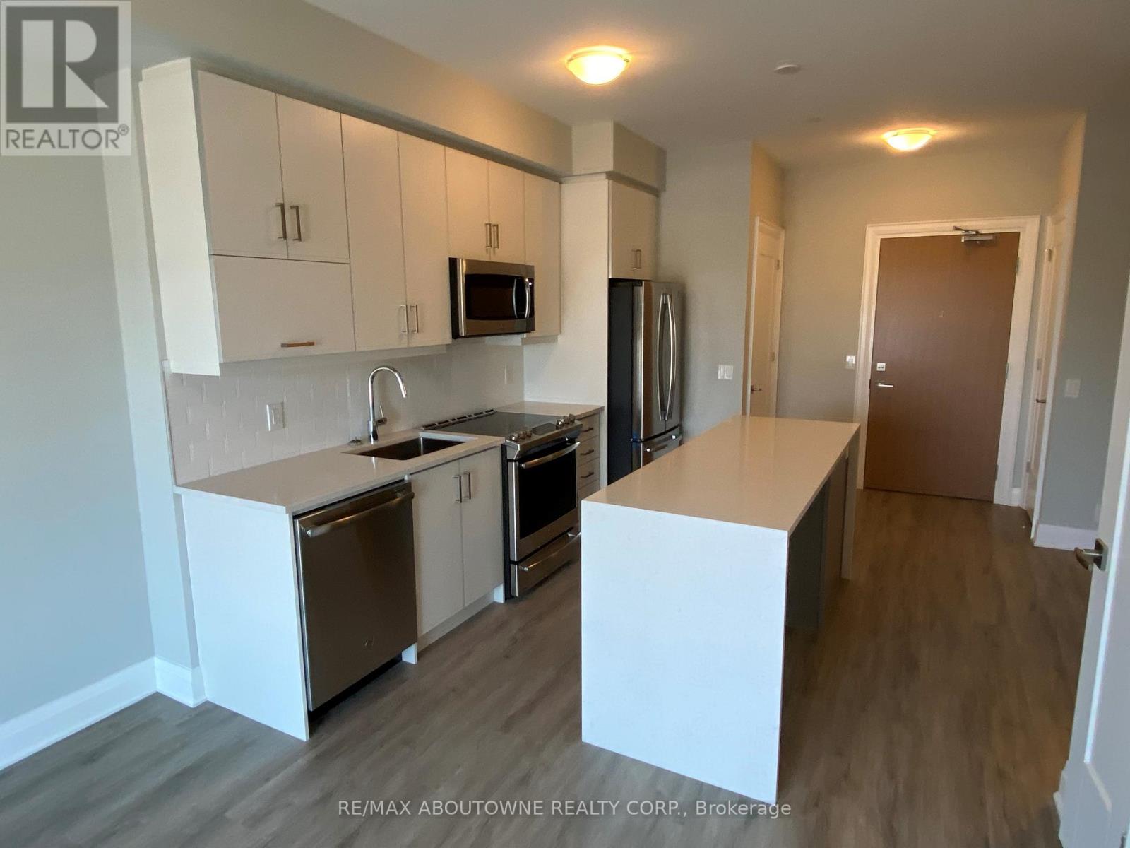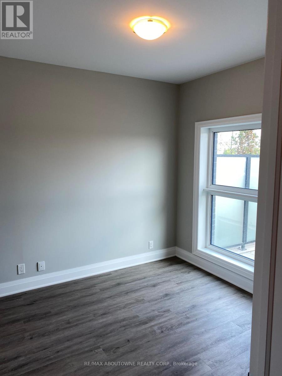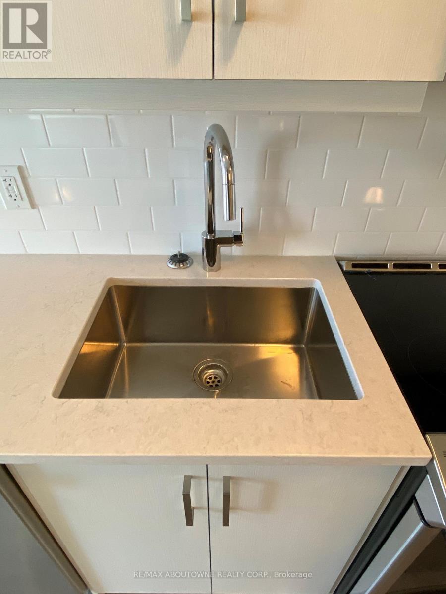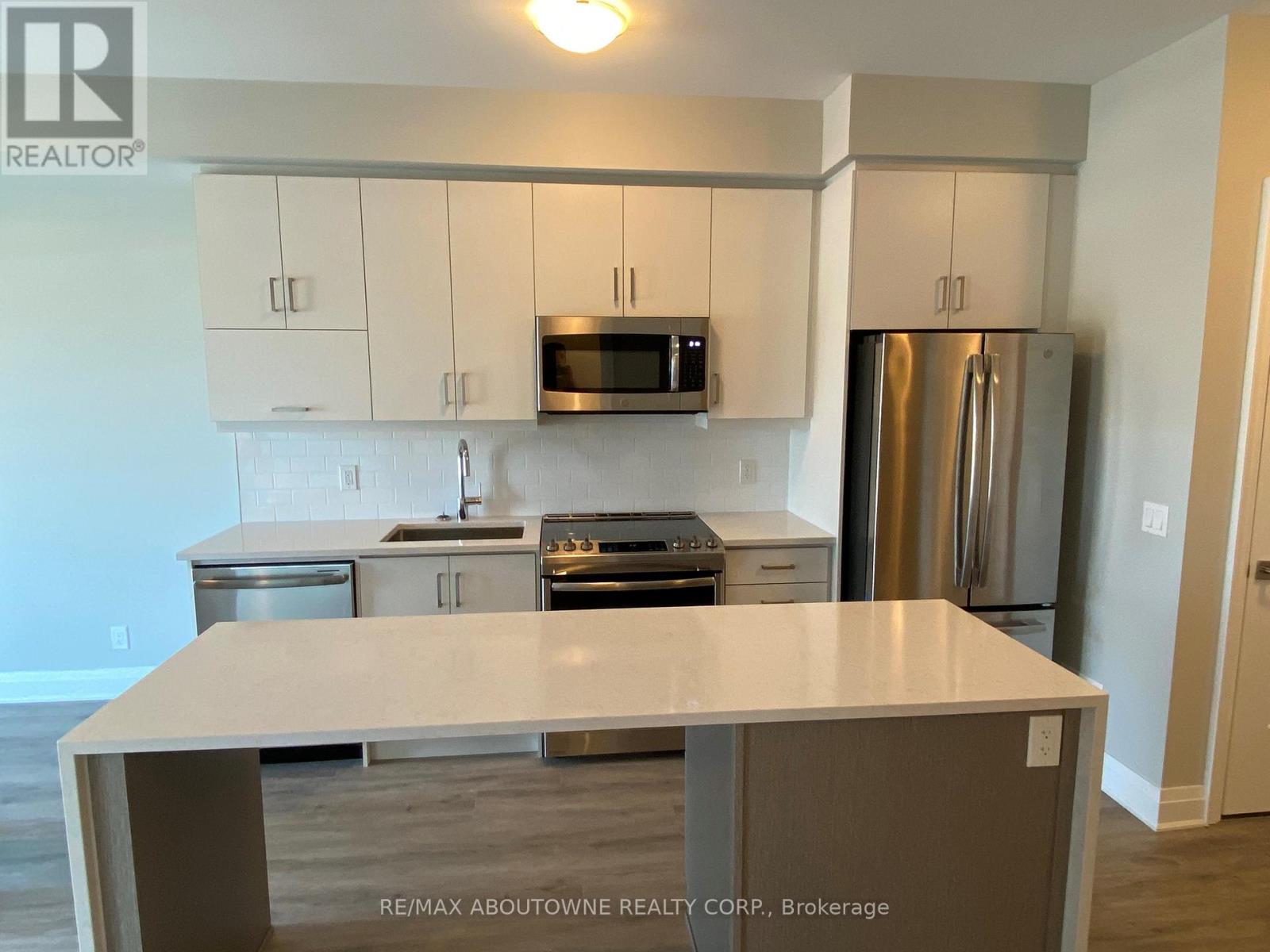 Beautiful 1 bedroom + den executive suite in Mattamy's Bower Condos. Immediate Possession Available! Thousands in luxury upgrades and modern finishes! Kitchen features upgraded porcelain tiles, stainless steel appliances with slide in range, French door refrigerator, built in dishwasher & microwave plus upgraded kitchen cabinetry with pots & pan drawers & quartz countertops with island waterfall. Den can be used as a work or guest space. Upgraded bathroom with walk in shower. Enjoy the sunny south facing exposure & view from your large private terrace. The three piece washroom features upgraded porcelain tiles, vanity and faucets. In suite laundry. 635 sq. ft plus plus 168 sq. ft patio!. One underground parking space and private locker included. Building amenities include fitness room & social lounge. Excellent location, walk to shopping, great parks, public transit and easy access to QEW, 403, 407 and a short drive to Oakville Hospital and Oakville Go station. Triple A tenants (id:50787)