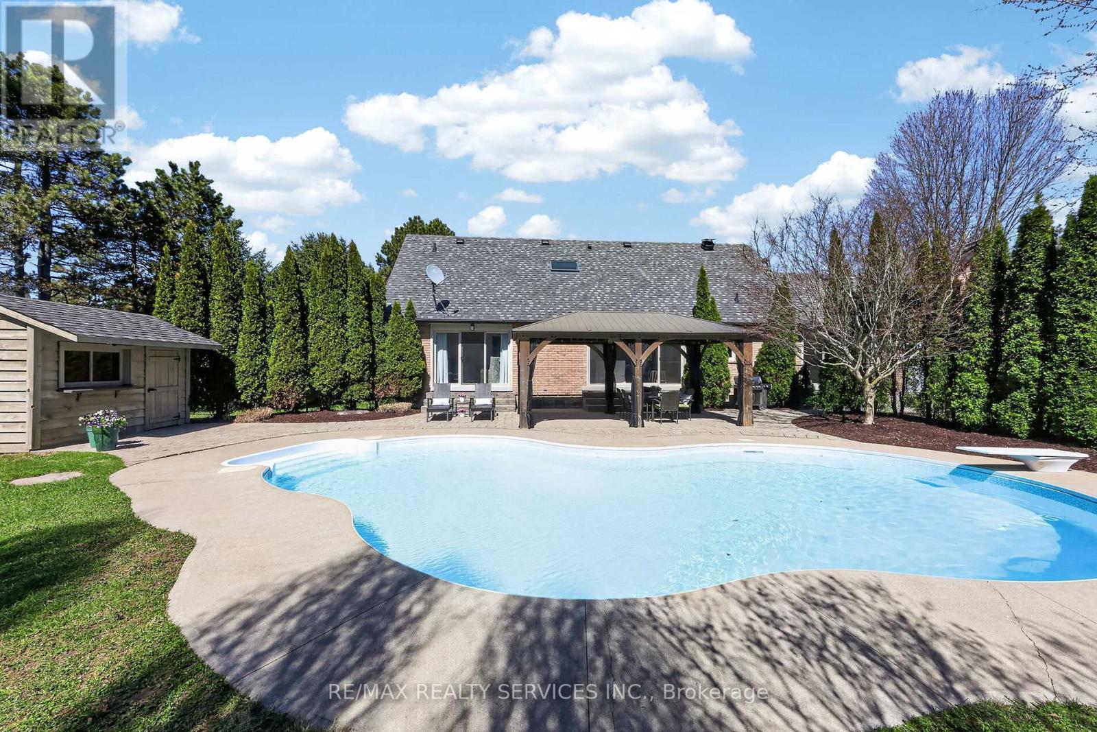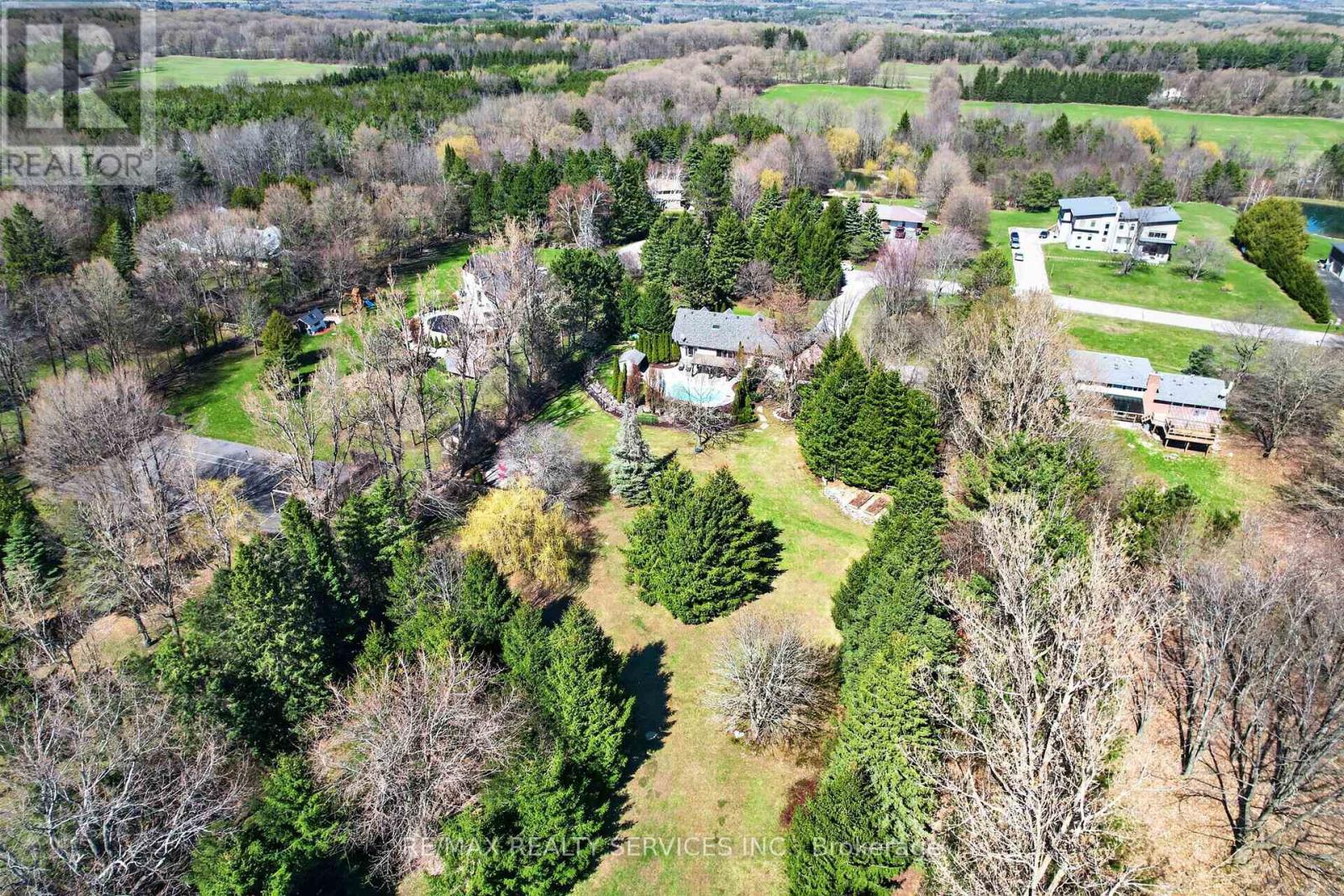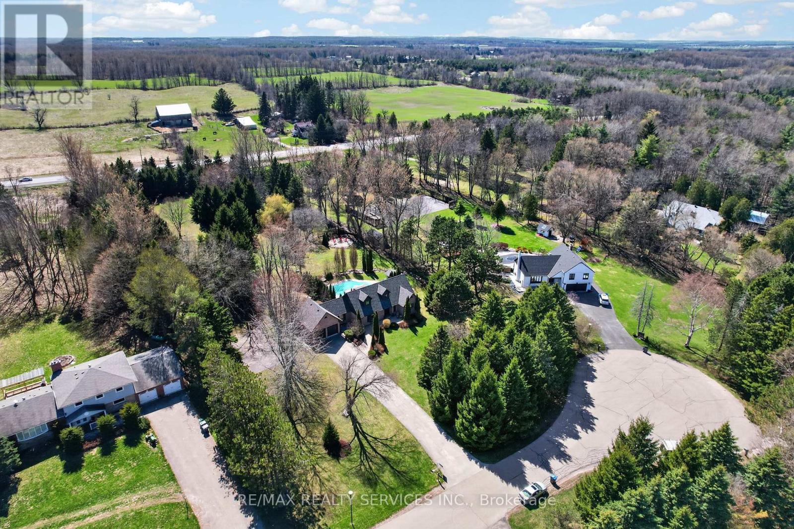 Welcome to the country escape everyone talks about but rarely finds. Tucked away on a private, quiet court in rural Caledon, this beautifully renovated home sits on 2.72 acres of pure tranquility, offering the perfect blend of modern comfort and peaceful country living, just a short drive from Caledon East, Caledon Village, and Orangeville. Step outside and experience your own backyard haven: a heated inground saltwater pool, a cozy fire pit for unforgettable evenings under the stars, ample space for kids to run and play freely, concrete pad for basketball court or ice rink in the Winter, garden beds and a walking trail, all framed by mature trees for the ultimate privacy. With a driveway that accommodates 10 vehicles, this property is designed for both relaxation and gathering. Inside, over $300K in upgrades have transformed this home into a turnkey retreat. Stunning wide-plank luxury vinyl flooring, fresh paint and pot lights throughout. The thoughtful main floor layout includes a formal living room with bay window, and a beautiful kitchen open to the dining area with extended cabinetry, additional sink and walkout to the patio. A spacious mudroom/laundry room offers direct garage access and sliding doors to a fenced dog pen. The two-car garage includes a convenient mezzanine for extra storage. With two bedrooms and a full 3-piece bath on the main level, plus a second-floor primary retreat, additional bedroom, charming playroom with reading nook, and a spa-inspired 5-piece bath, there's space for the whole family. The newly renovated basement adds even more versatility with two bedrooms, a full 3-piece bath, and a large, bright recreation space complete with an electric fireplace, perfect for movie nights, games, or a home gym. Professionally landscaped and meticulously maintained, this is your opportunity to leave behind the city grind and subdivision life and finally own the space, privacy, and lifestyle you've been dreaming of. (id:50787)