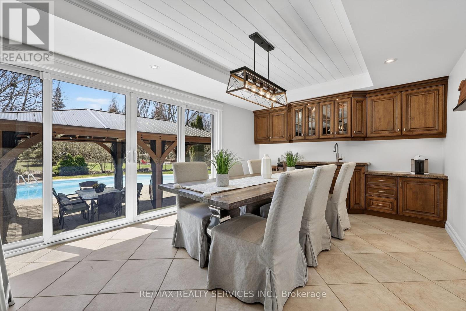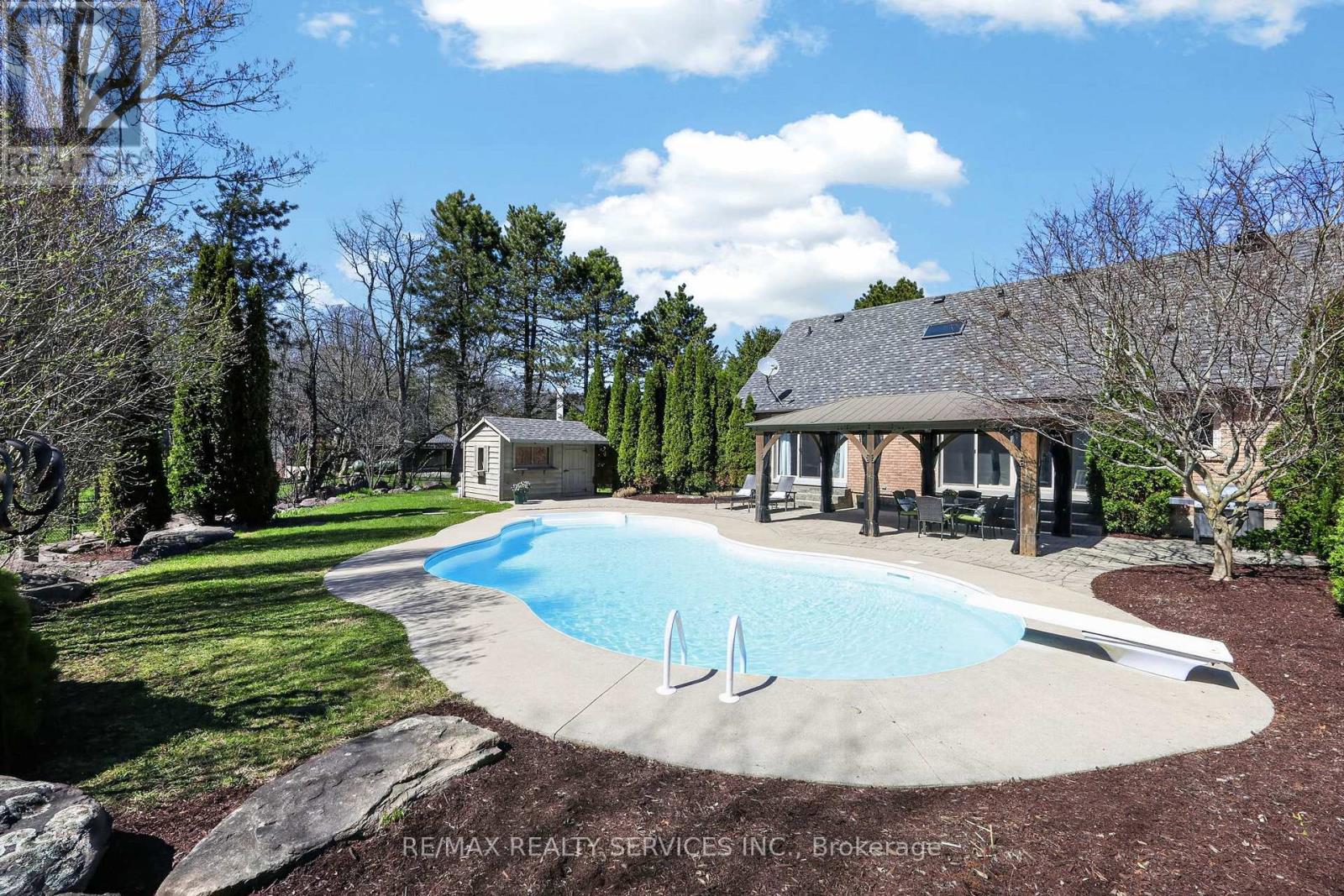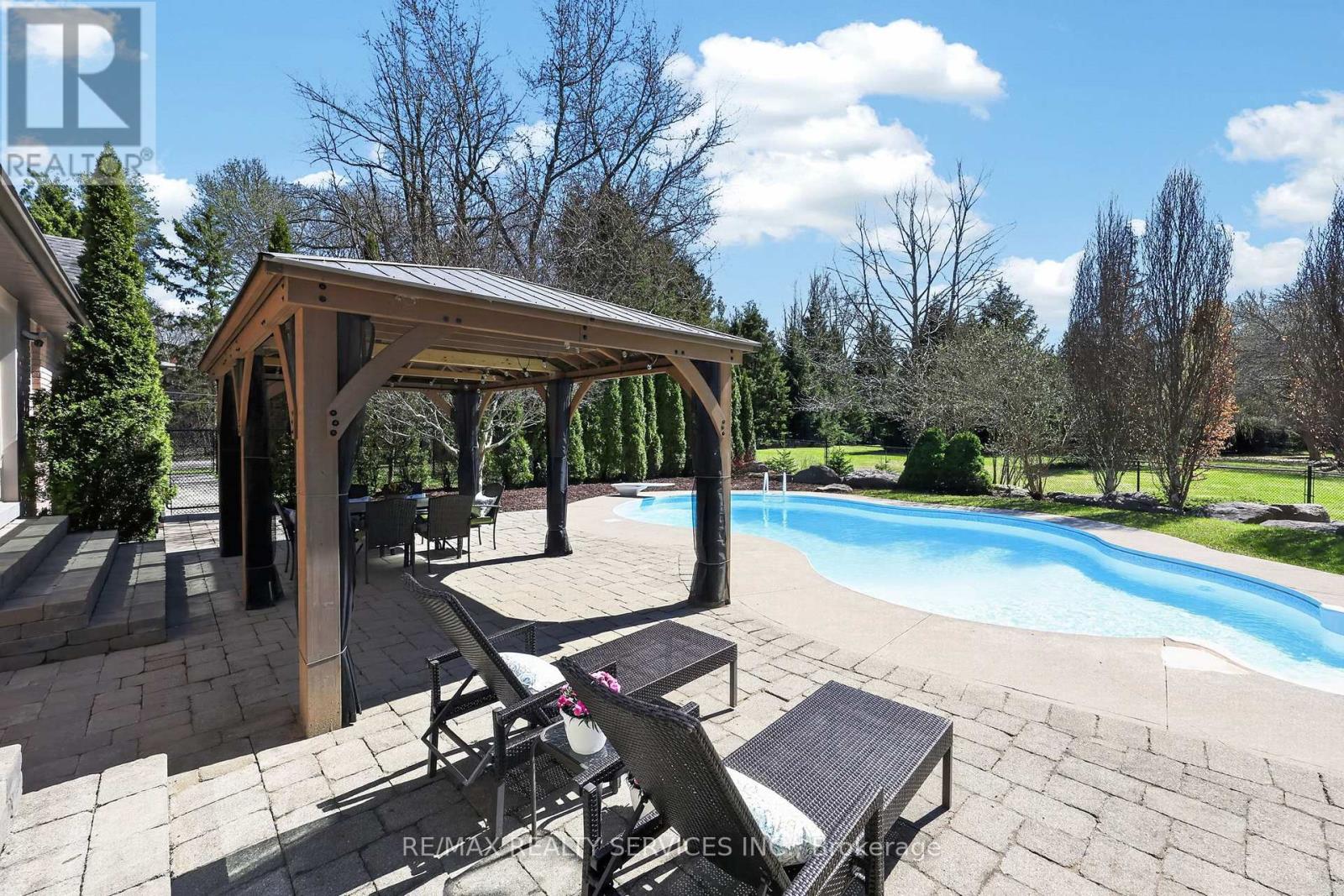 Welcome to the country escape everyone talks about but rarely finds. Tucked away on a private, quiet court in rural Caledon, this beautifully renovated home sits on 2.72 acres of pure tranquility, offering the perfect blend of modern comfort and peaceful country living, just a short drive from Caledon East, Caledon Village, and Orangeville. Step outside and experience your own backyard haven: a heated inground saltwater pool, a cozy fire pit for unforgettable evenings under the stars, ample space for kids to run and play freely, concrete pad for basketball court or ice rink in the Winter, garden beds and a walking trail, all framed by mature trees for the ultimate privacy. With a driveway that accommodates 10 vehicles, this property is designed for both relaxation and gathering. Inside, over $300K in upgrades have transformed this home into a turnkey retreat. Stunning wide-plank luxury vinyl flooring, fresh paint and pot lights throughout. The thoughtful main floor layout includes a formal living room with bay window, and a beautiful kitchen open to the dining area with extended cabinetry, additional sink and walkout to the patio. A spacious mudroom/laundry room offers direct garage access and sliding doors to a fenced dog pen. The two-car garage includes a convenient mezzanine for extra storage. With two bedrooms and a full 3-piece bath on the main level, plus a second-floor primary retreat, additional bedroom, charming playroom with reading nook, and a spa-inspired 5-piece bath, there's space for the whole family. The newly renovated basement adds even more versatility with two bedrooms, a full 3-piece bath, and a large, bright recreation space complete with an electric fireplace, perfect for movie nights, games, or a home gym. Professionally landscaped and meticulously maintained, this is your opportunity to leave behind the city grind and subdivision life and finally own the space, privacy, and lifestyle you've been dreaming of. (id:50787)