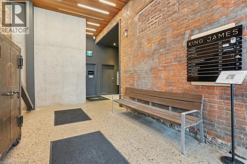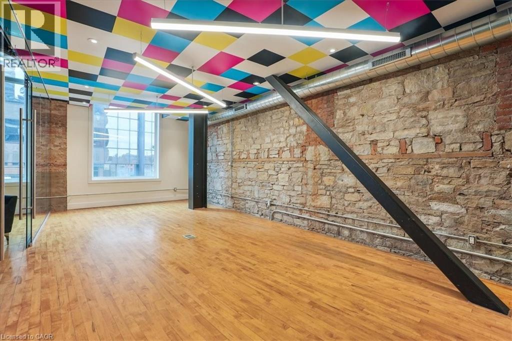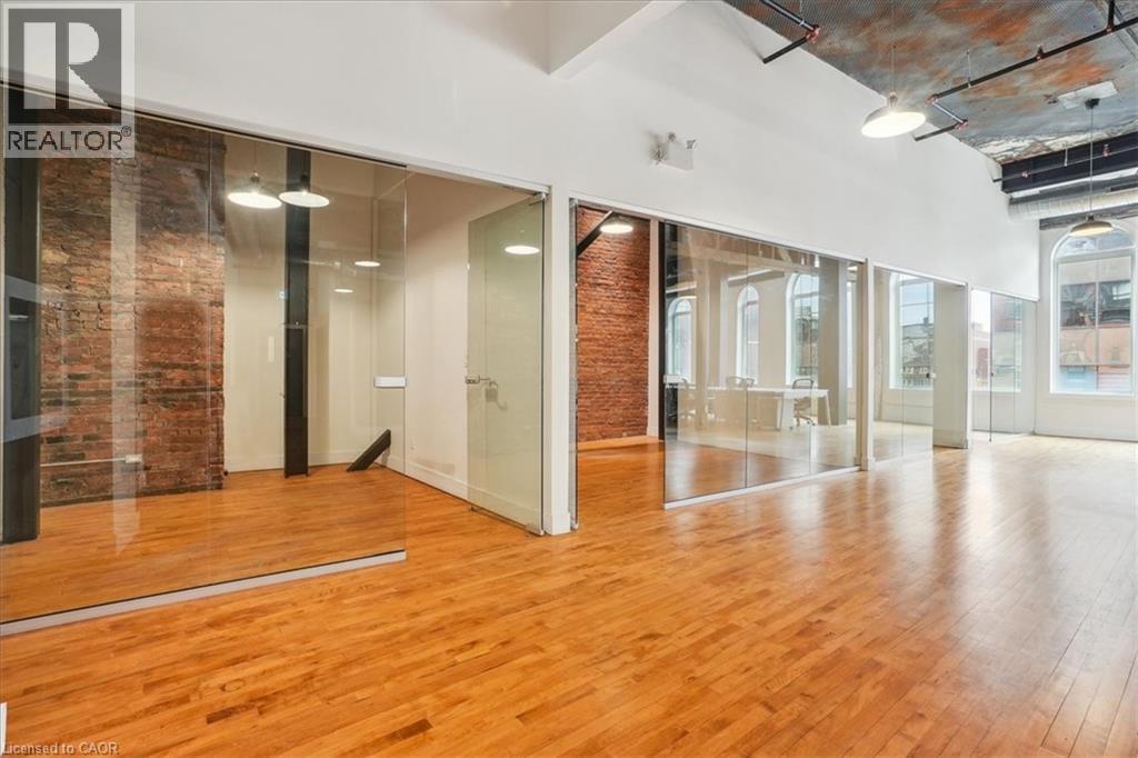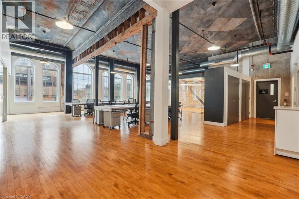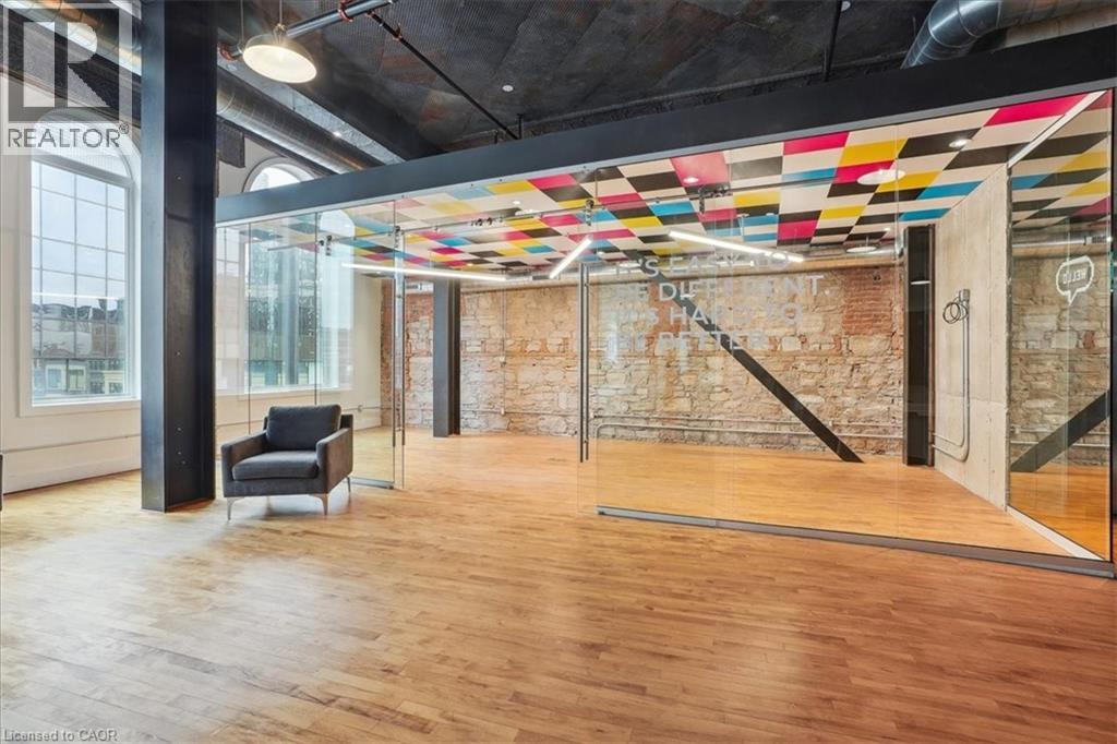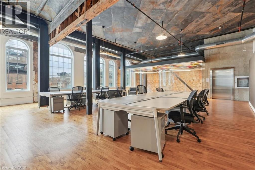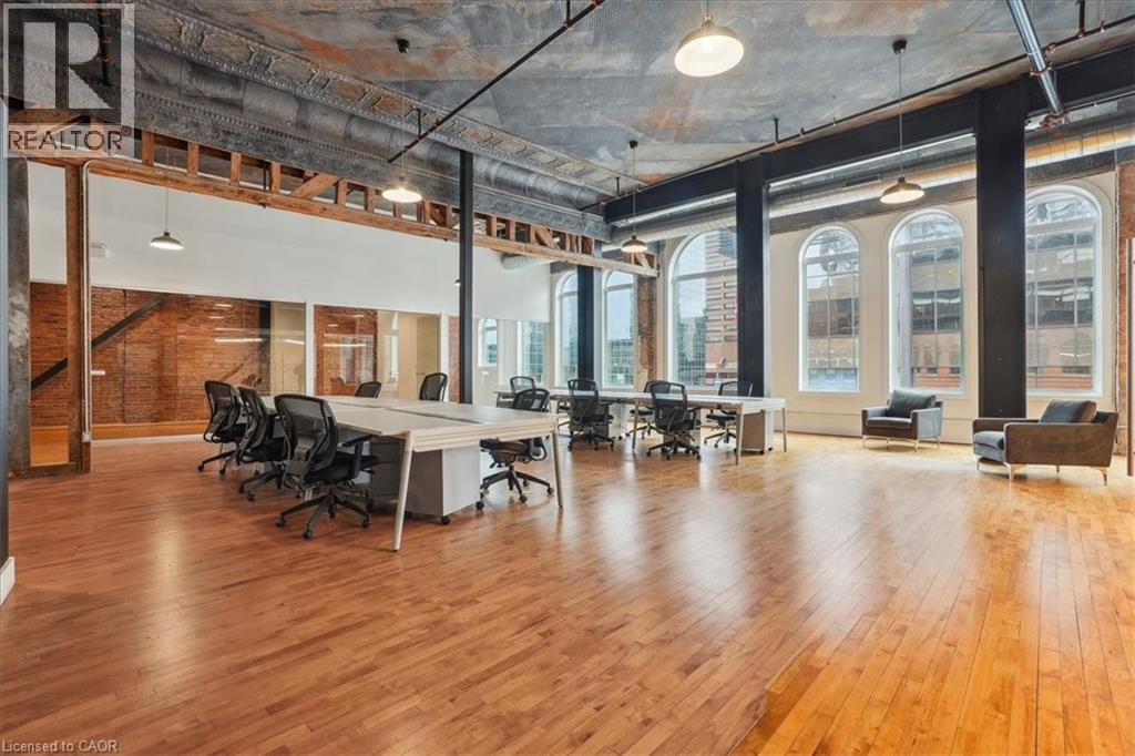 Pristine office space available at the prestigious King James Building! This one-of-a-kind suite offers 2,800 square feet with soaring 16' hammered-tin ceilings, floor-to-ceiling arched windows, glass-enclosed boardroom, kitchen, in-suite washrooms (including one fully-AODA compliant), storage closets, exposed ductwork, post-and-beam construction, multiple glass-enclosed, private offices, and access to the fifth floor common area terrace! Serviced by a fob-secured elevator that opens directly into the suite, this newly-available office suite is one of the most sought-after units in city. The building itself has been completely redeveloped by Core Urban; known for their brilliant combination of preserved heritage features and character with modern features and building systems. Located in the heart of downtown Hamilton, this suite is literal steps away from the major banks, City Hall, the court houses, McMaster University's downtown campus, the James North Arts district, Jackson Square, TD Coliseum, the King William restaurant district, and so much more! Immediately available. Note: furniture shown in photography belongs to prior tenant and not available for use. (id:50787)