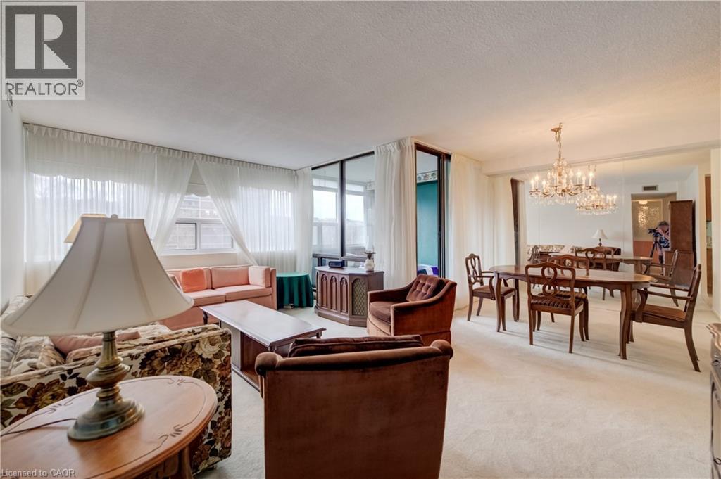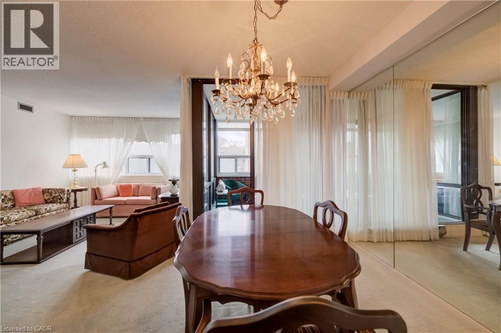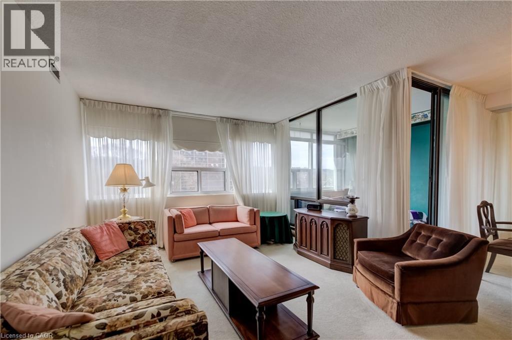 Bright and spacious 2-bedroom + den, 2 bath condo with South facing views in the sought-after Durand neighbourhood. Offering an exceptional lifestyle with room to make it your own. This well-laid-out unit features an eat-in kitchen with ample cabinetry, plus separate dining area that opens into a sun-filled living room and versatile den, perfect for a home office or reading retreat. Enjoy the convenience of in-suite laundry and exclusive underground parking. The building offers a full suite of amenities including an indoor saltwater pool, hot tub, sauna, fitness room, library, covered visitor parking, and outdoor BBQ areas. Set in one of the city's most walkable pockets, you're just steps to downtown shops, restaurants, the hospital, parks, and scenic trails, with quick access to GO transit and major highways. A fantastic opportunity to get into a premium location and add your own vision over time. (id:50787)