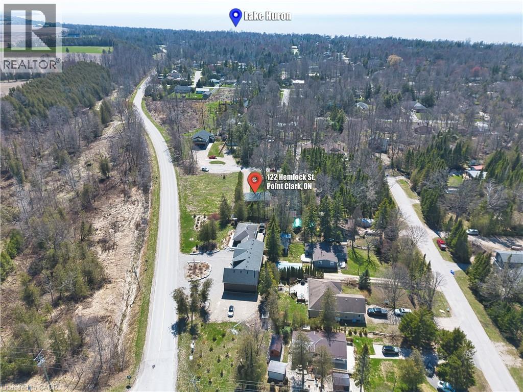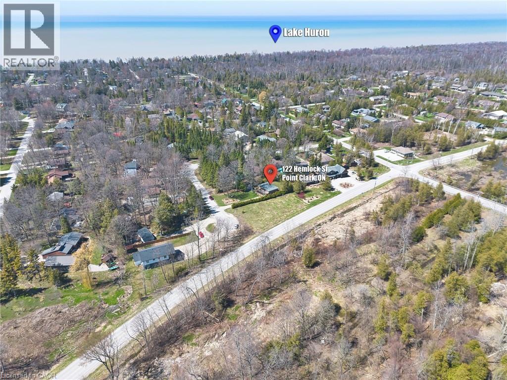 Welcome to 122 Hemlock St in the quiet community of Point Clark situated right on the shores of Beautiful Lake Huron. Just a 9 minute walk to the beach sits this charming year round Home/Cottage situated on a quiet dead end street. There is a large partially covered deck out the front overlooking the expansive front yard. Lots of room outside for entertaining family and friends or just enjoying time around the fire pit on those nice summer evenings. This fully renovated open concept Home/Cottage is set back in for added privacy and ready for you to start your memories. Once inside you will find all the maticulous updates starting with the kitchen and dining, followed by 2 large bedrooms and a good size 4 pc bathroom with Laundry. The bunkie /shed which has hydro and WiFi that reaches from the Cottage is the perfect spot for the kids to get away and enjoy as their own space or extra sleeping arrangements for your guests. Definately an added attraction to this already nice property. This Turn key little piece of paradise is selling as fully furnished and is Located just 25 minutes from Bruce Power. (id:50787)