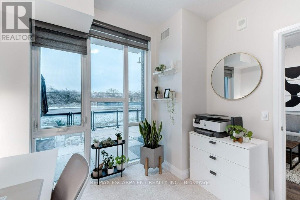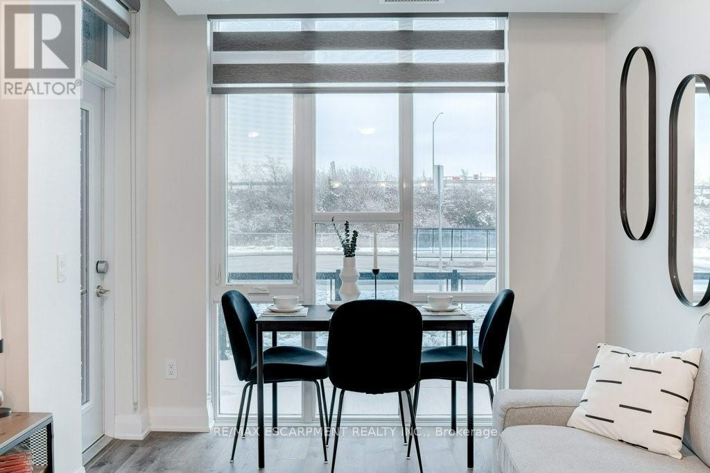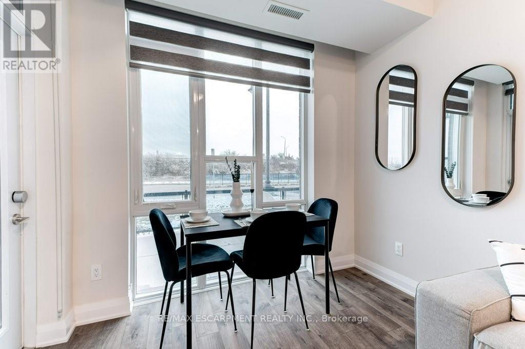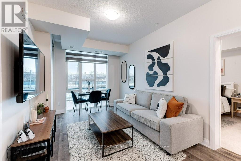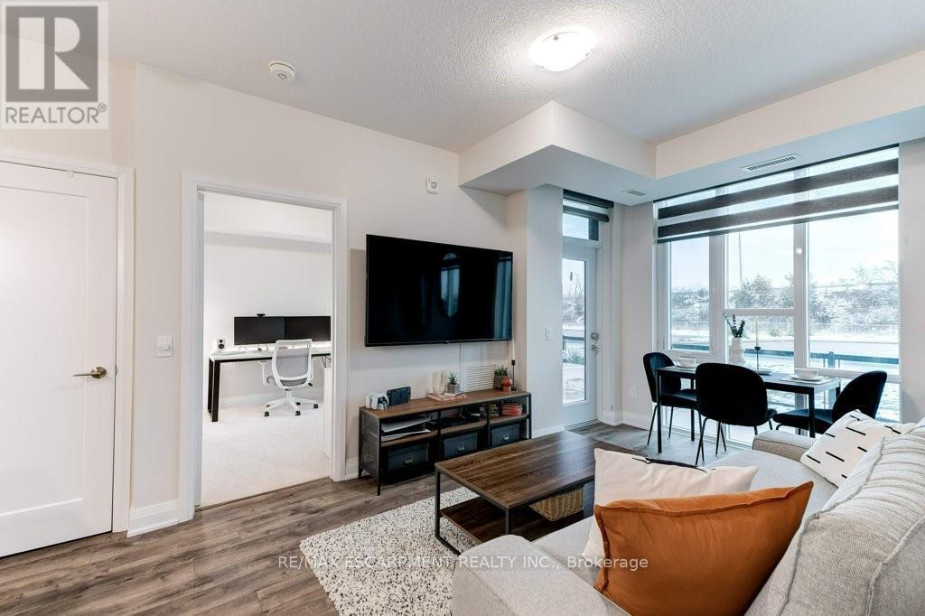 Upscale Lakefront Living! Elegant 2 Bedroom, 2 Bathroom ground floor suite with oversized 385 sq. ft. Terrace in the award winning AquaZul Waterfront Condominiums. Open-concept design, 9' ceilings, floor-to-ceiling windows & 1,191 SqFt of total living space with the expansive private Terrace; perfect for Entertaining & Lounging. Fabulous gourmet Kitchen w/Breakfast Bar, custom white cabinetry, S/S Appliances, floating shelves, tiled backsplash & ledgestone feature. Large Primary Suite with walk-in closet & luxe 3pc Ensuite with frameless walk-in glass shower. Spacious second Bedroom w/floor to ceiling windows. Stylish second (4pc) Bath & oversized closet w/system. Generous Great Room w/laminate wood floors, floor to ceiling windows & w-o to huge Terrace w/glass railings for spectacular seasonal entertaining. Aquazul is designed with opulent style & 5-star Resort style amenities: in-ground outdoor Pool with Cabanas, BBQ areas, Club Room w/fireplace & Terrace, Fitness Centre w/Lake views, Billiards, Media Room, Visitor Parking and so much more! Poised on the shores of Lake Ontario amidst the beauty of Wine Country & on Grimsby's $5 Million revitalized Lake Shore. Steps to Grimsby Waterfront Beach Park Trail & walkable to the unique shops & restaurants of charming Grimsby on the Lake. Close to transit, highways & 2 minutes from the new GO train station in the works. AquaZul will be like living at your own resort, and it's all just outside your front door. Book your private viewing today! (id:50787)