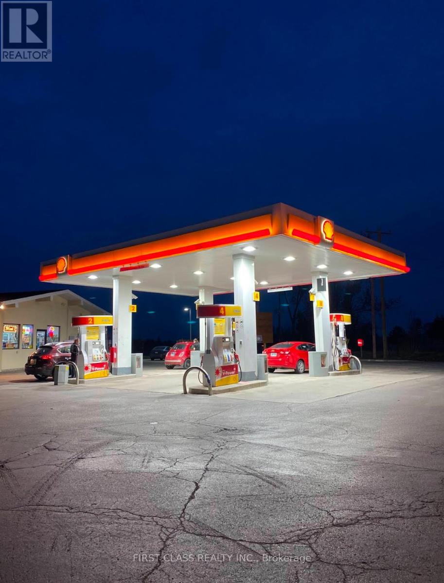 Shell gas station with Tim Hortons drive-through on 2.56 acres at County Rd 10 and Hwy 26, Stayner. Only Shell in the corridor. 4 pumps, 10 nozzles including high-speed diesel, double-wall fibreglass tanks, full retail canopy. Convenience store doubled in size following a 2025 renovation with new concept design to accommodate a national QSR brand. Revenue streams include fuel, c-store, Tim Hortons, cross-lease, restaurant, propane, ATM, and air commission. Canada Post mailboxes service on-site drive daily repeat traffic.The only direct route connecting Barrie, Blue Mountain, Collingwood, and Wasaga Beach runs through this intersection. Year-round volume from tourists, commuters, agricultural vehicles, and transport trucks. Playtime Casino Wasaga Beach minutes away. Over 1,000 residential units in active development across Clearview Township, backed by $35M in provincial infrastructure funding. This market is growing and this station sits at its crossroads. More than 1 acre of surplus land is included for future commercial expansion. Nothing else like it is available in the market. (id:50787)