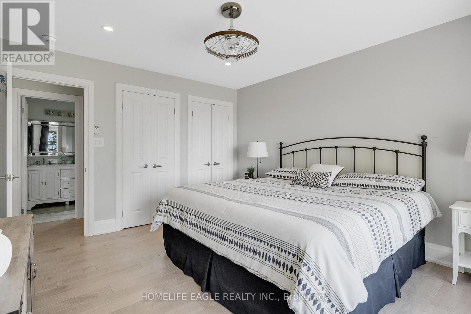 This charming property is ideal for individuals and couples seeking a cozy living space, while also offering the potential for families who may appreciate additional room for guests or relatives in the future. With it's warm ambiance and custom layout, this home is designed for comfort and convenience ,making it a perfect fit for a variety of life styles. Zoned for 2 additional units: one detached behind the main house and one connected to the main house. The home offers 2.5 acres of fenced lot, located only 60min from GTA , and 20min to Orillia. With panoramic views from every room, the home is about 3,400 SF and showcases superior craftmanship, thoughtful design, and exceptional energy efficiency. A spectacular wraparound glass enclosed deck, creates a seamless indoor-outdoor flow. The upper-level primary suite, an impressive 750SF, 9F high ceilings offers a serene and private sanctuary with expansive windows and abundant natural light. Built to exceed standards, the home features insulation levels above code throughout ,including the basement and laundry room, ensuring year-round comfort and quiet elegance. Central heating and air conditioning, powered by propane, complete the home's efficient climate control. Ideal for hosting, the property includes a separate 3-bedroom guest wing, offering privacy and comfort for family and visitors. A substantial 4 -car garage, approximately 1,000 SF with 10 F high ceilings and epoxy coated floors, provides ample space for vehicles, storage, or a workshop. Featuring: main floor bedroom,5 piece bathroom, Triple-glazed, UV protected vinyl casement windows, 200 amp electrical panel, linen closet, bidet, pot lights, raised insulated floors in the basement and laundry room, Insulated walls in the 500SF crawl space, full backup generator,65-foot Naylor dock, about 3000SF barn, circular driveway, and a high quality water system including a particulate filter, a water softener, iron filter, and & UV sterilization unit. (id:50787)