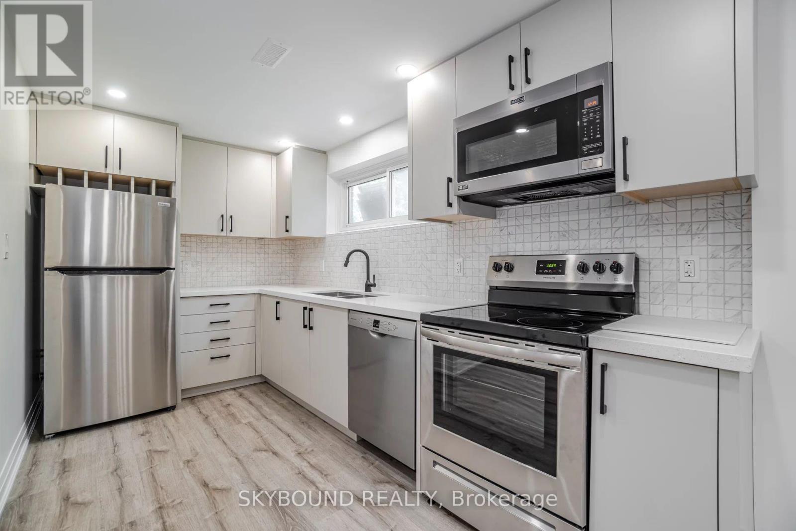 Renovated, Bright and spacious Basement 1+ 1 Bdrm with windows above grade. Bedroom + Den/office area, perfect for those who work from home or need extra space.Seperate entrance for complete privacy. This unit has professionally renovated top to bottom; vinyl floors thru out, new modern kitchen with S/S appliances quarts counter top, Led pot lights thru out. Close to Public Transportation and major Hwy's, Go Train. 15 minutes to both downtown Toronto and Toronto& Pearson Int'l Airport. 10 minutes to Subway, 5 minutes from lake Ontario, Marine Parade Drive, Parks, Trendy Restaurants. All Utilities are included and parking spot. Shared laundry with main floor tenant. (id:50787)