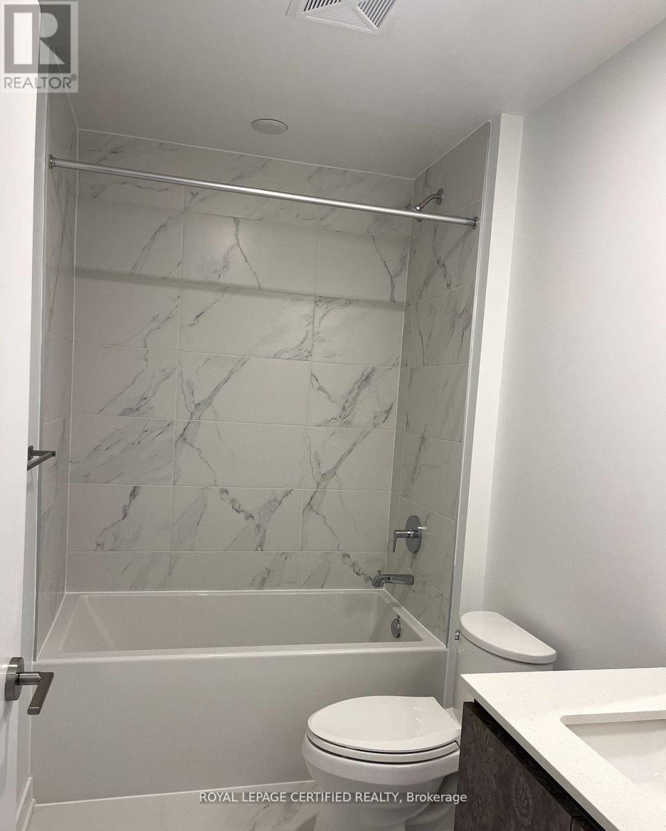 Welcome to Distrikt Trailside 2 - Where Luxury Meets Lifestyle in Oakville Experience upscale living in this stunning one-year-old condo located in one of Oakville's most sought-after residences, Distrikt Trailside 2, thoughtfully designed by a renowned architect. This elegant building truly defines modern luxury with its premium finishes and exceptional attention to detail. Step inside a beautifully designed unit featuring soaring ceilings of nearly 12 feet, creating a bright and spacious atmosphere that enhances everyday living. The expansive private terrace offers the perfect setting to entertain guests, enjoy BBQs, or simply unwind in your own outdoor retreat. Residents enjoy an impressive range of amenities, including 24-hour concierge and security, a fully equipped fitness centre, party room, rooftop terrace, and convenient bicycle storage. Ideally located, this residence places you just moments away from fine dining restaurants, grocery stores like Fortinos and Food Basics, banks, clinics, coffee shops, and everyday essentials. Commuters will appreciate easy access to major highways, while healthcare is close at hand with Oakville Trafalgar Memorial Hospital nearby. Nature lovers will enjoy proximity to the scenic Sixteen Mile Creek and walking trails, while families benefit from top-rated schools and recreational facilities such as Sixteen Mile Sports Complex just steps away. This is more than just a home-it's a lifestyle opportunity in one of Oakville's finest communities. A must-see to truly appreciate the elegance, comfort, and convenience it offers. The monthly maintenance fee includes high-speed internet. (id:50787)