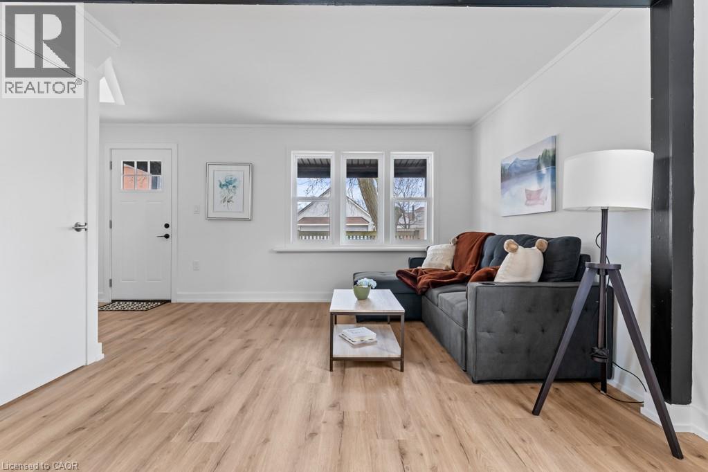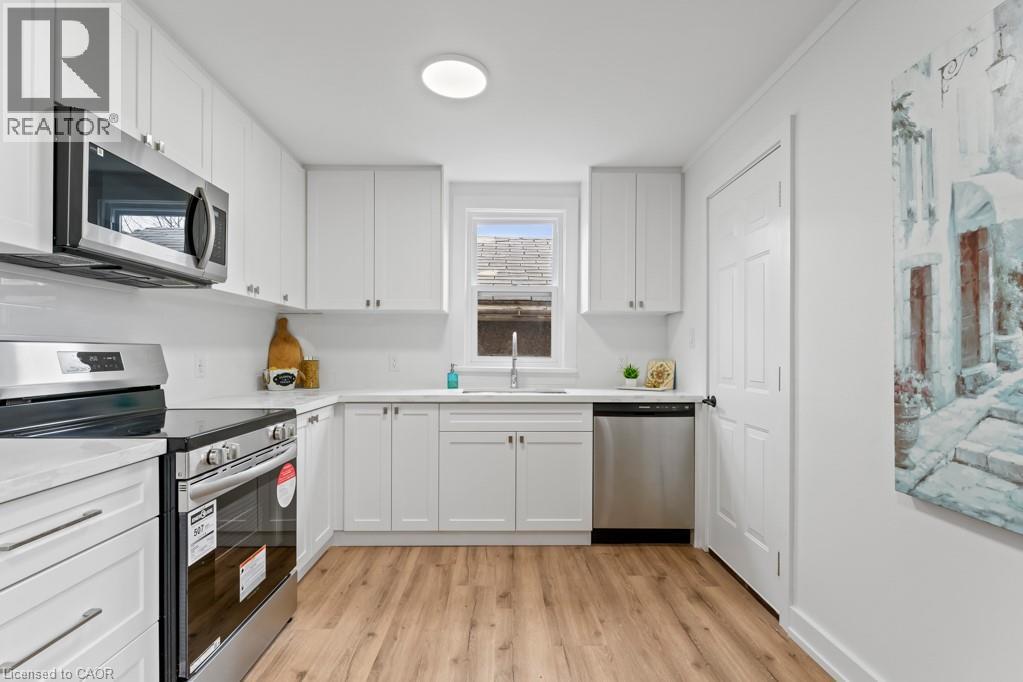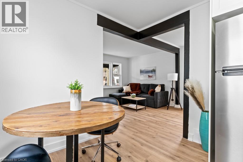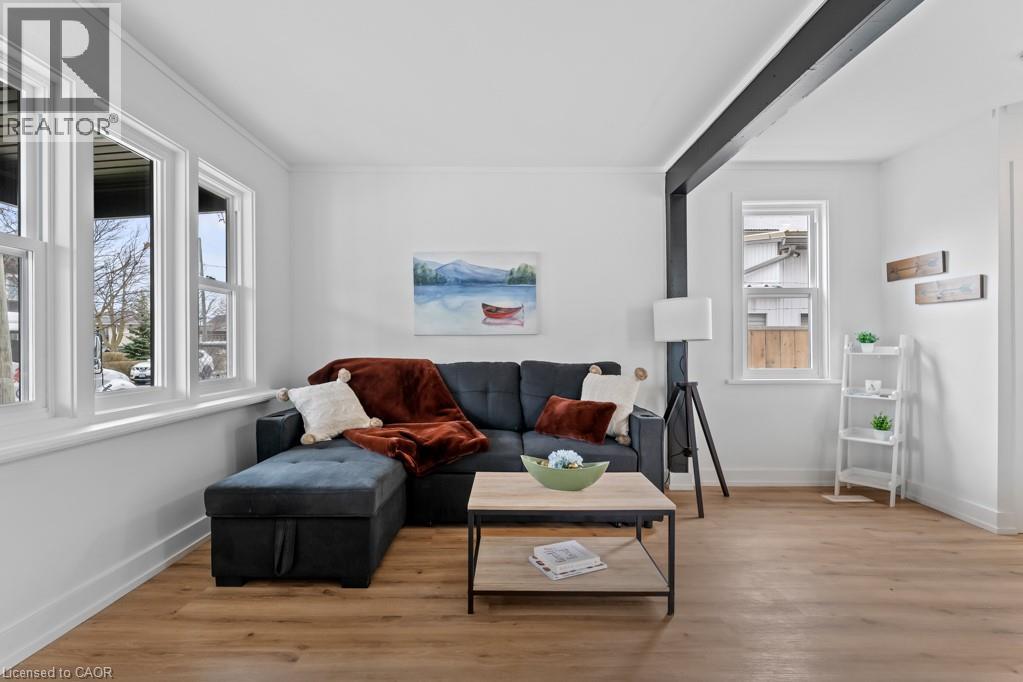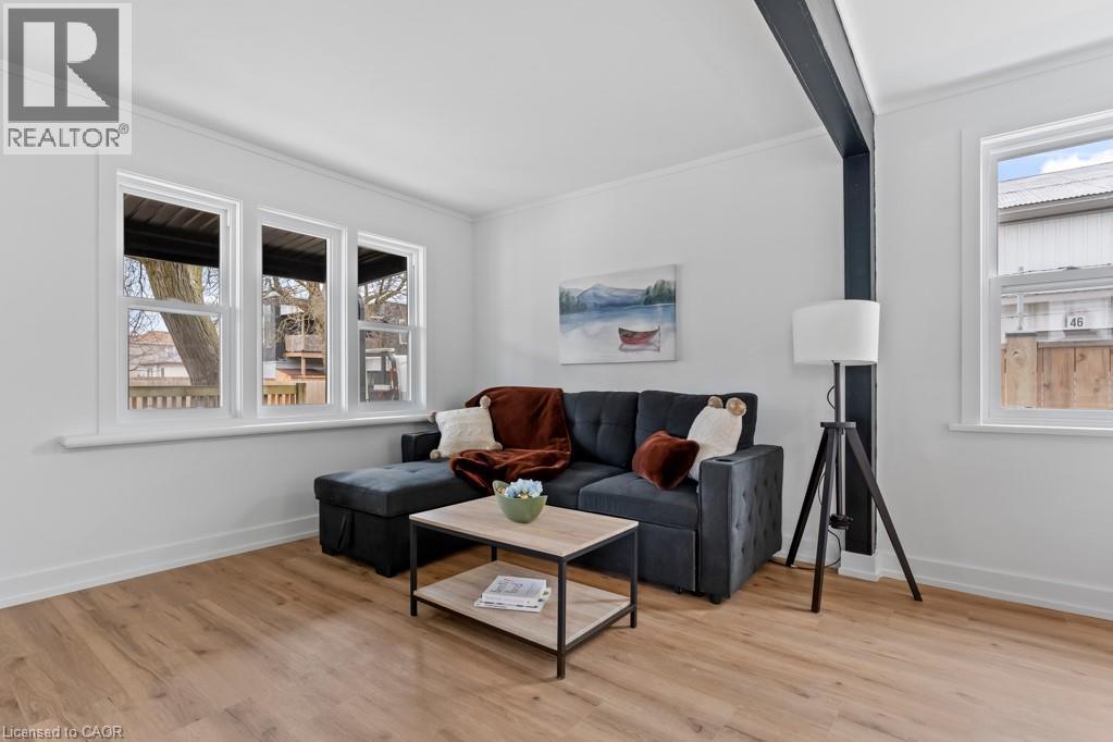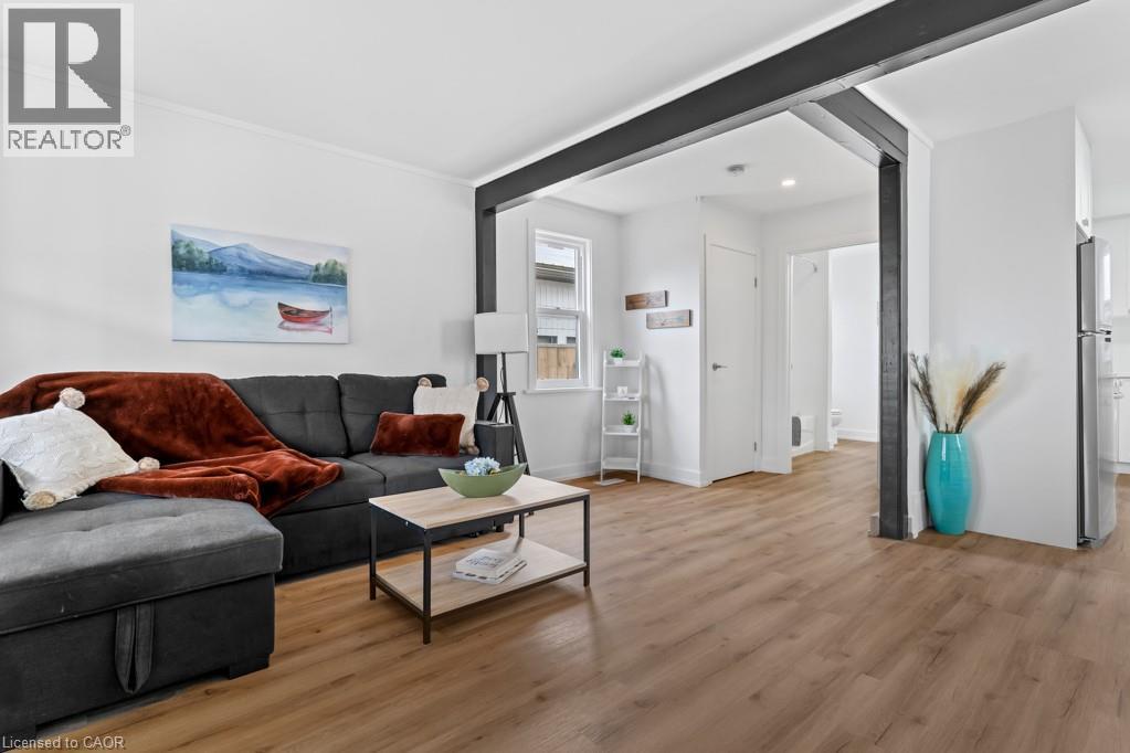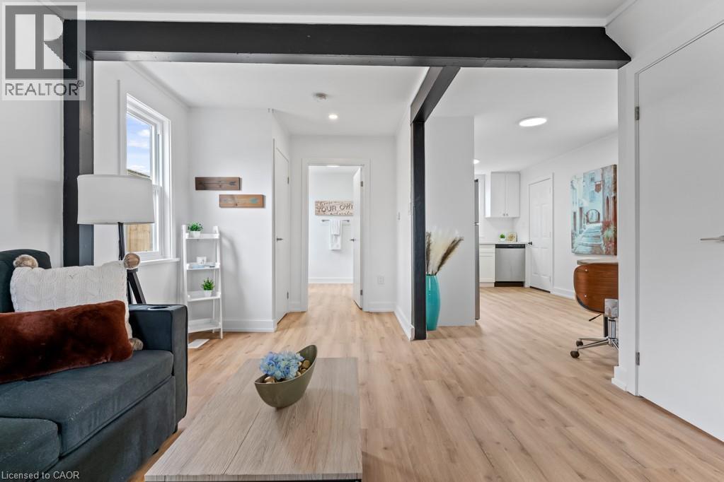 Charming and affordable fully renovated 1.5-storey detached home in Welland, conveniently located just minutes from the highway. The loft-style primary bedroom offers a spacious double closet and a cozy, functional layout. The main floor features a bright open-concept design with a modern kitchen that flows seamlessly into the dining area—perfect for everyday living and entertaining. The adjoining living room is warm and inviting, while the fully updated 4-piece bathroom adds a fresh, modern touch. Main-floor laundry adds everyday convenience. Enjoy your morning coffee or unwind in the evening on the welcoming covered front porch. (id:50787)