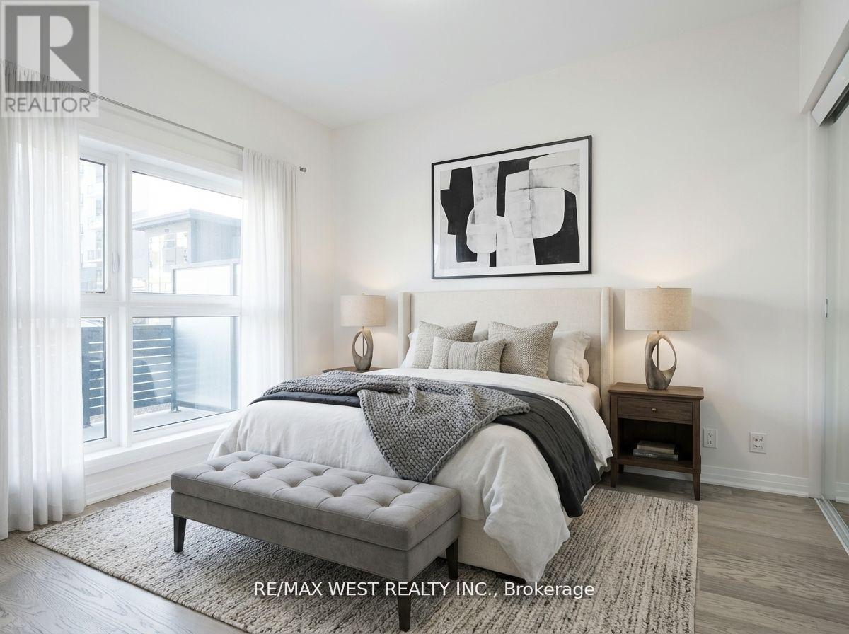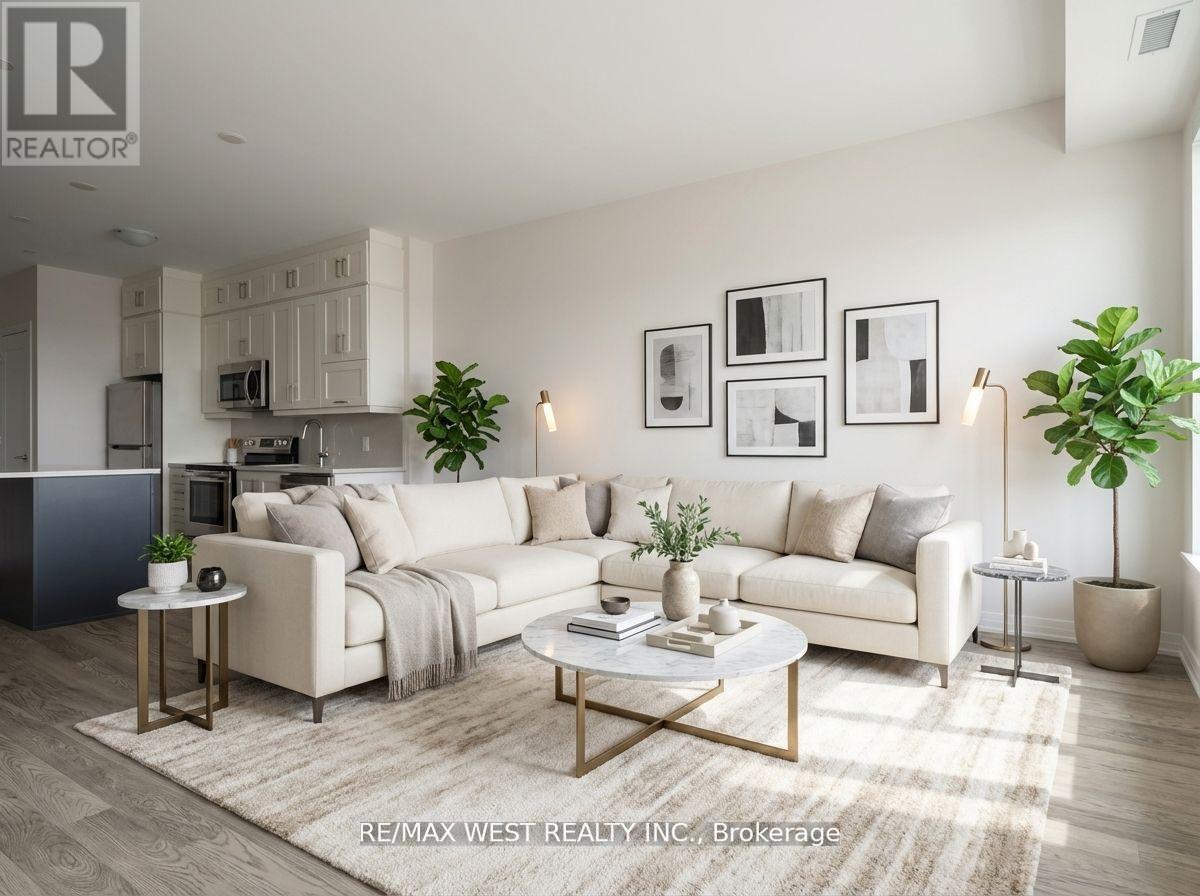 Experience modern comfort and style in this beautifully upgraded, light-filled condo unit located in Oakville's sought-after new district. This thoughtfully designed 1-bedroom + den suite features elegant hardwood floors, a sleek contemporary kitchen with quartz counters and premium stainless-steel appliances, and a tastefully upgraded bathroom for an elevated living experience. Enjoy a vibrant lifestyle with unmatched convenience-just steps to grocery stores, cafés, parks, transit, and minutes from the GO station, Sheridan College, restaurants, trails, and medical services. Offering approx. 596 sq ft of refined living space, this exceptional home blends luxury and practicality in one perfect package. Residents enjoy exceptional building amenities, including a fitness room, stylish party and meeting rooms, visitor parking, and more-offering convenience and lifestyle. (id:50787)