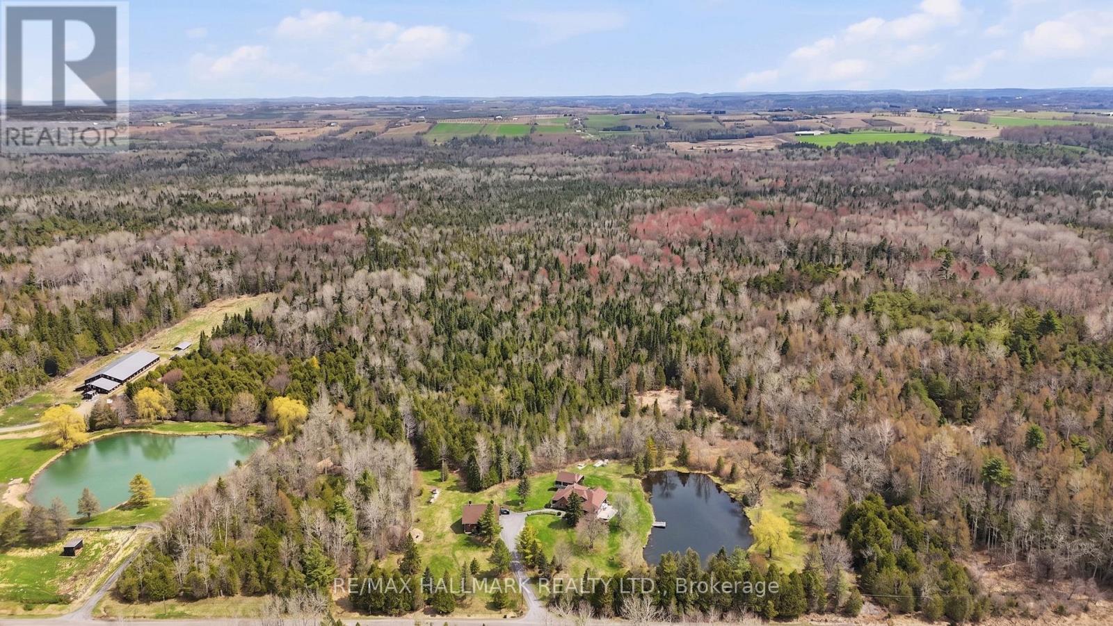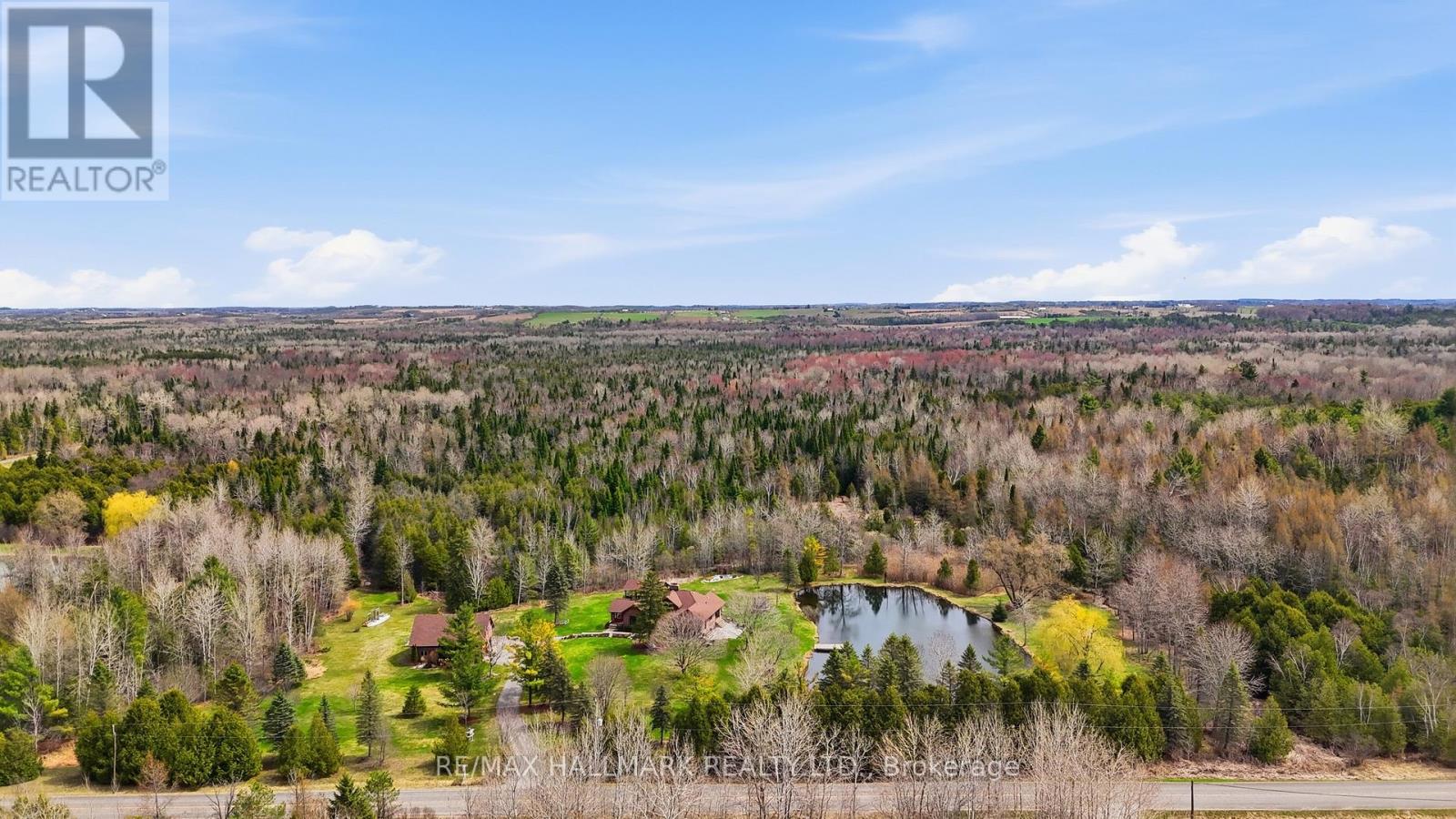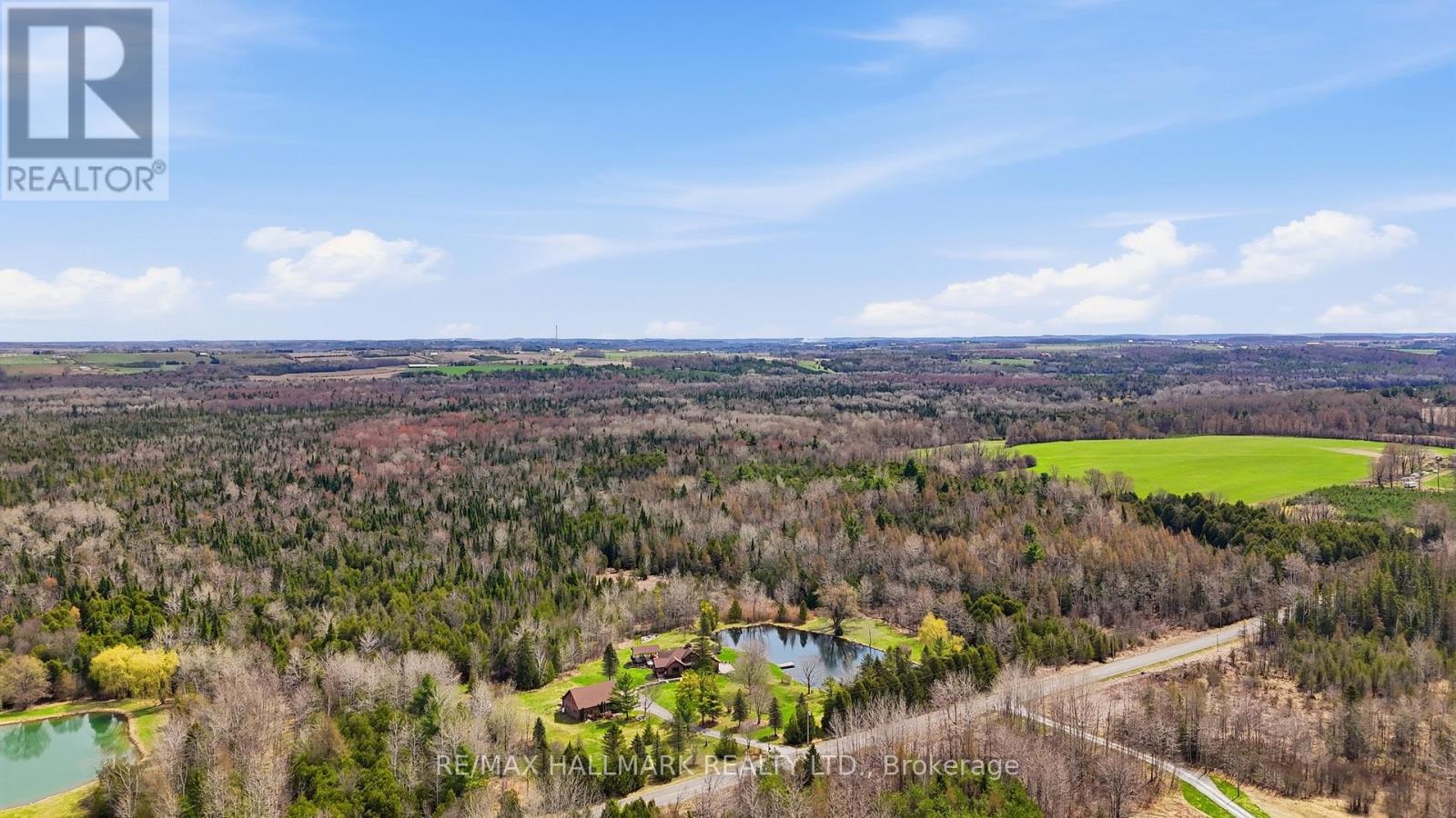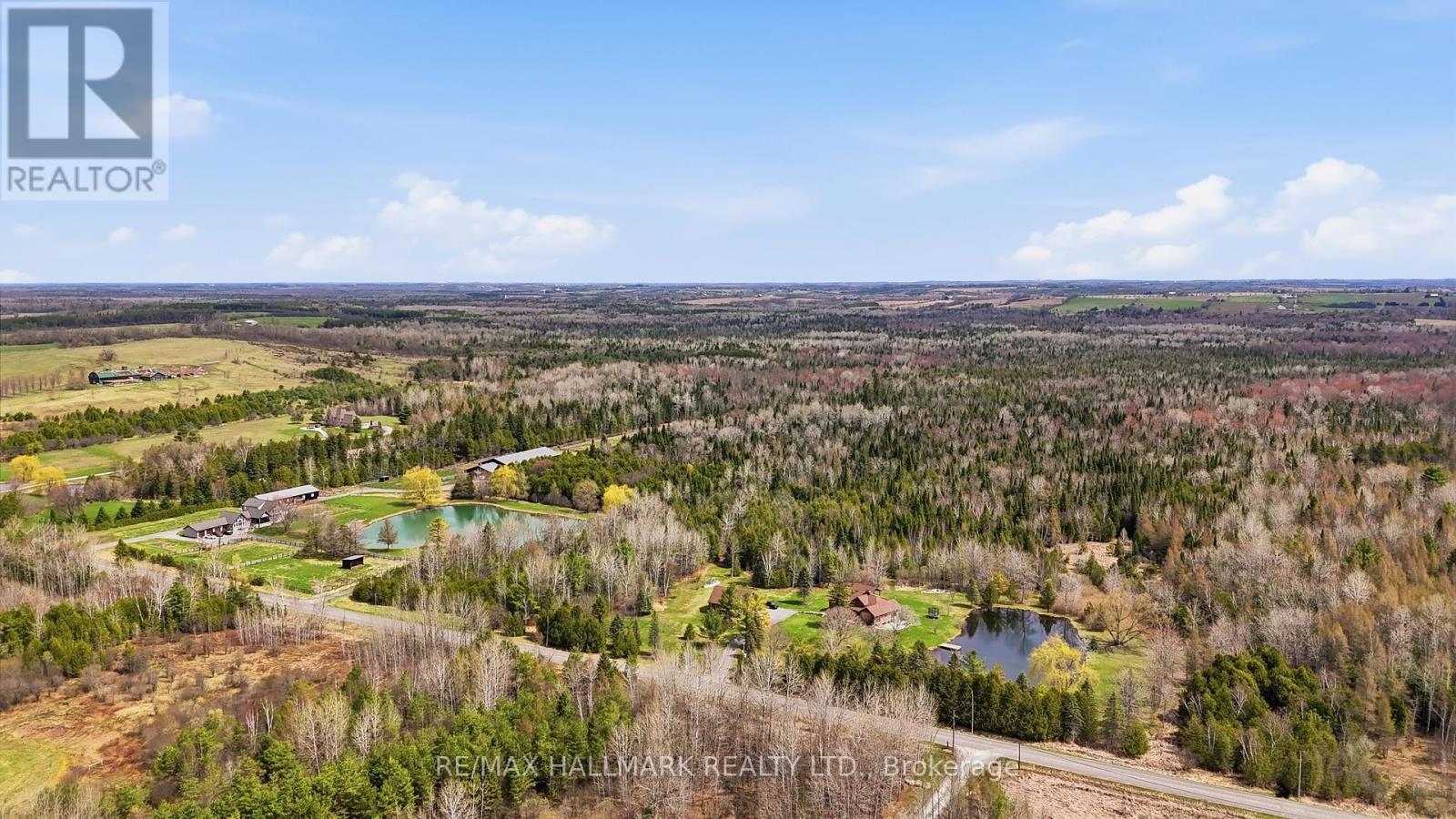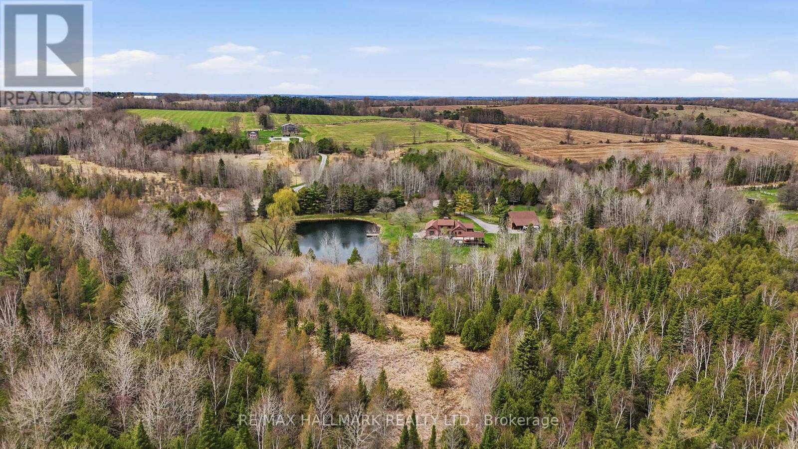 Exceptional Bungalow On Breathtaking 50 Acres Offering Over 4,000 Sqft Of Total Living Space In Uxbridge's Scenic Countryside! A grand foyer w/soaring 16ft ceilings leads into a thoughtfully designed home filled w/oversized Renewal by Andersen panoramic windows and sliding doors (2021). A striking 2-sided fieldstone fireplace anchors the living spaces. The fully upgraded 2024 modern kitchen features custom cabinetry, quartz counters & backsplash, large centre island, 2 pantries, custom tilework, new kitchen exhaust, and all new smart Energy Star SS appliances. Walk out to a custom 1,350sqft 2-tier sun deck w/a massive 445 sqft gazebo overlooking the pond, plus an interlocked fire-pit sitting area. The main floor features a serene primary suite w/walkout to pond & backyard, picture window overlooking the front garden, generous closet, and 4pc ensuite. 2nd bedroom w/large window, 4pc bath w/jacuzzi tub, and spacious mudroom w/vaulted ceilings, bay window, and convenient side-yard walkout, complete the level. Above, an approx. 800sqft loft provides versatile living space w/a 3rd bedroom&office or additional bedroom. The finished basement is perfect for entertaining, featuring a large bar area, 4th bedroom w/window & closet, and close access to a 4pc bathroom. Outdoors, enjoy a half-acre, 16ft deep natural spring-fed stocked pond w/bass & perch, ideal for swimming, fishing & winter skating, complete w/electrical rough-in for a pump. A detached 3 car garage includes a heated workshop w/plumbing & hydro, plus upper loft space. Additional features: efficient geo-thermal heating&air conditioning, 200-amp service w/copper wiring, owned hot water tank and water softener, central vacuum, new hard flooring in main floor bedrooms (2021) & new roofing over deck (2024). Located within the Oak Ridges Moraine, enjoy privacy, protected natural surroundings, abundant wildlife, and convenient access to town amenities & the GTA.Truly move-in ready rural living at its finest! (id:50787)