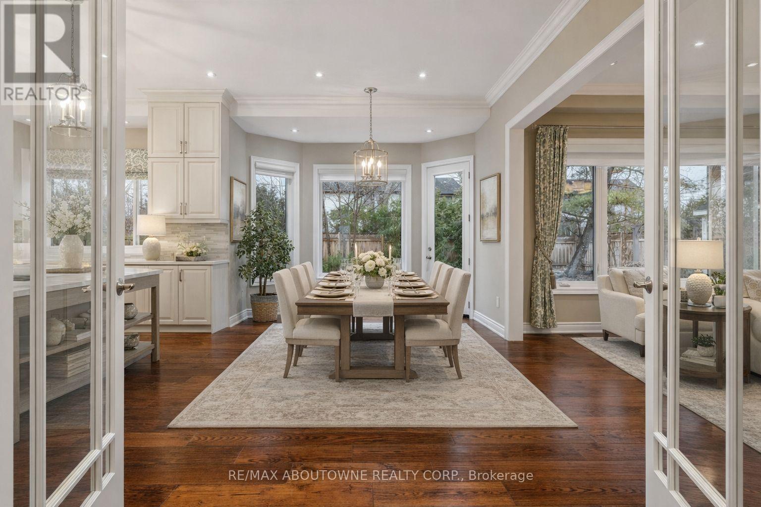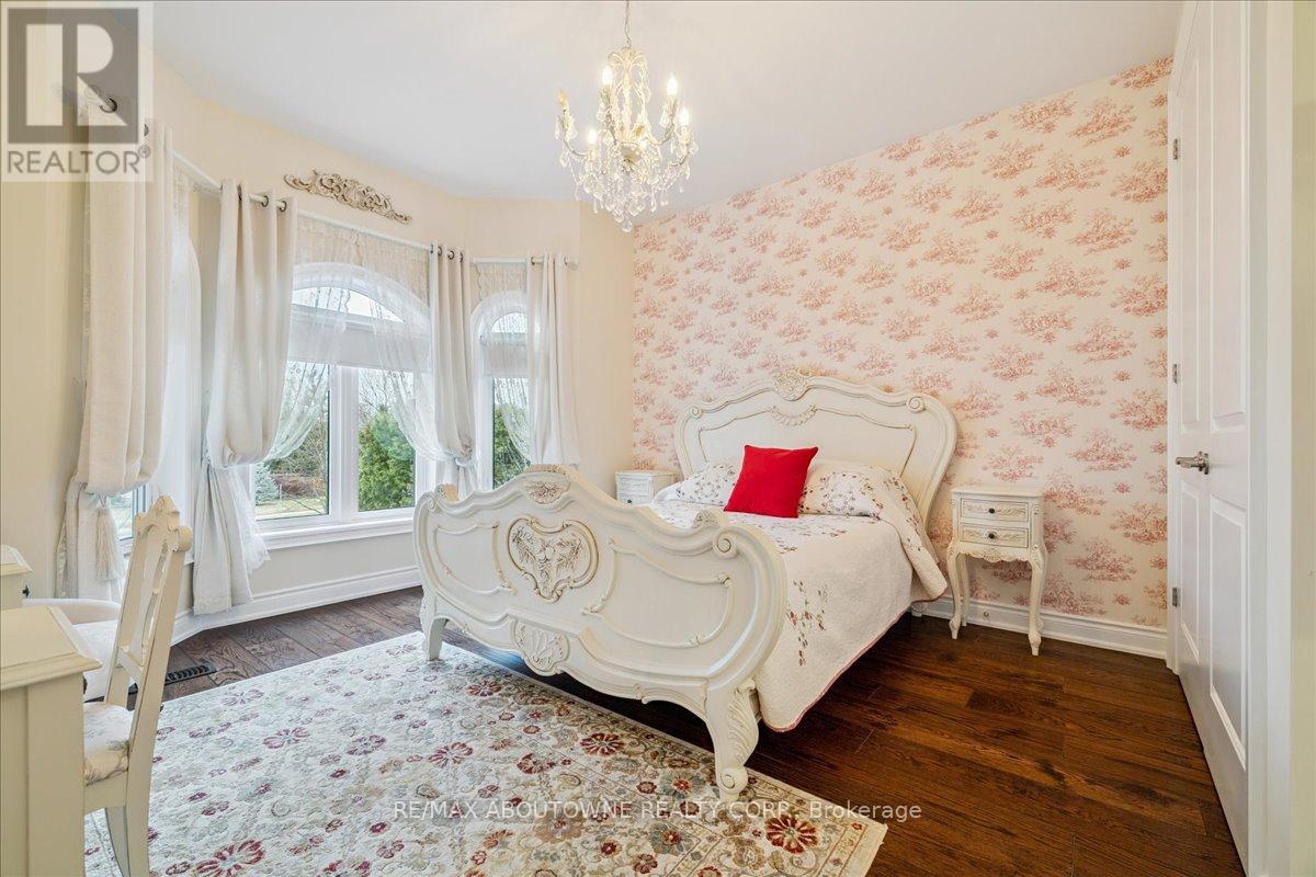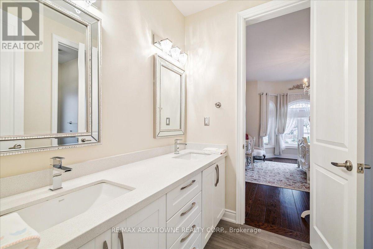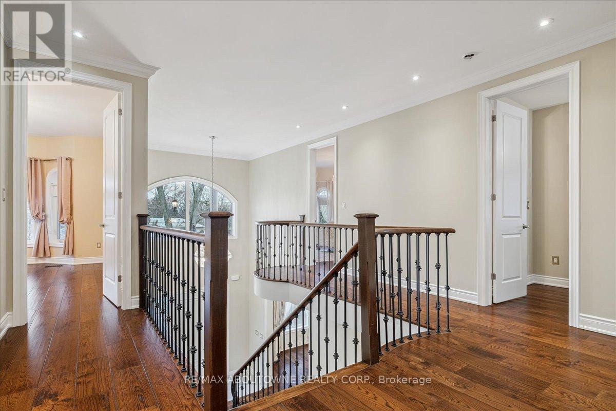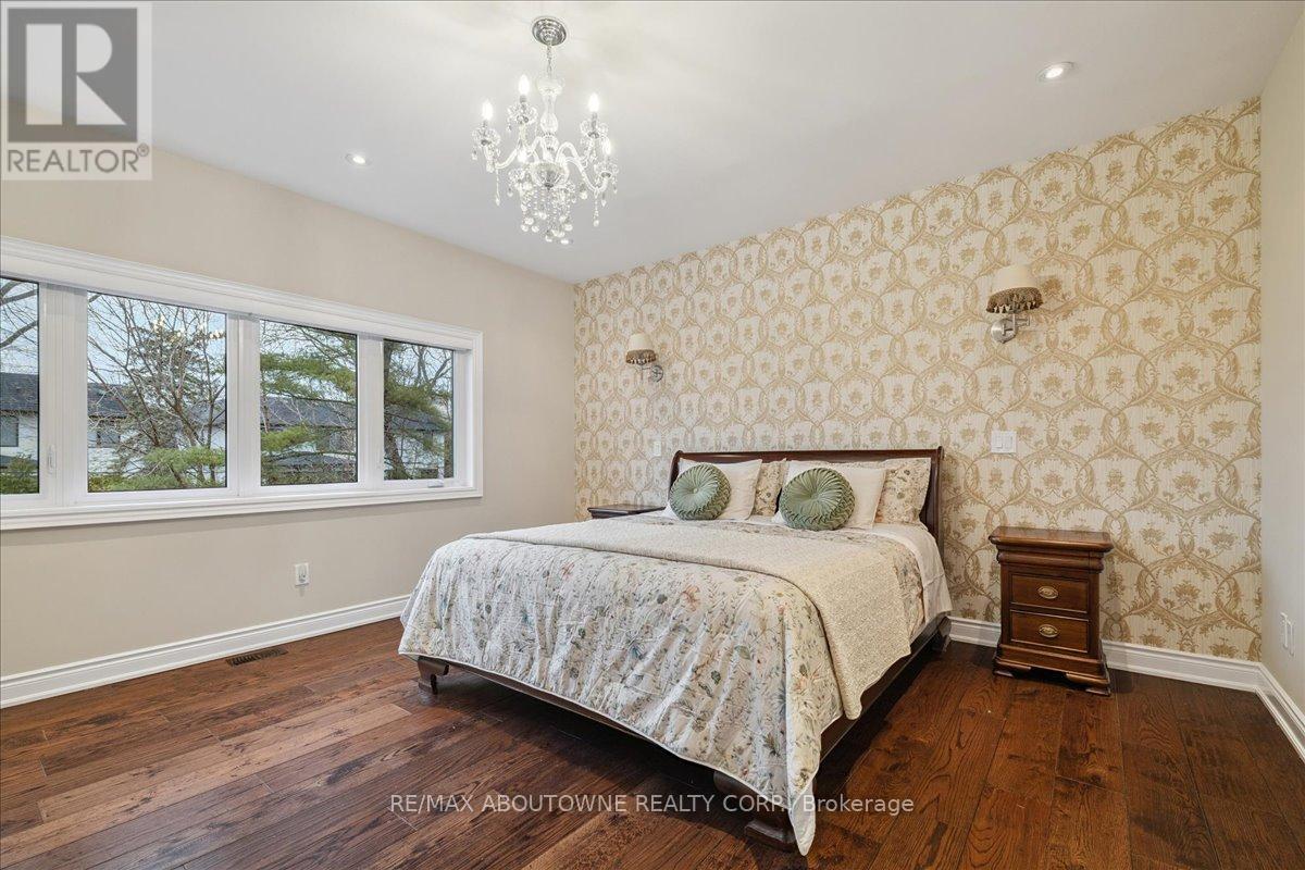 Welcome to this exceptional home in the heart of sought-after West Oakville, where timeless design meets modern comfort. Discover refined living, where elegance, space, and privacy come together on a premium lot with gated driveway, double car garage & landscaped front & back yards. This large home offers an ideal balance, perfect for both executive entertaining & a family home. An impressive cathedral-ceiling entrance with stunning chandelier fills the home with natural light & creates a grand first impression. The main floor features a spacious open-concept living area that offers elegant finishes & seamless flow throughout. The large gourmet kitchen with wine & bar fridge, & space for a large kitchen table for those informal get togethers is a home chef's delight. Family room, with gas fireplace and built-in bookshelves, can be closed off with large French doors. Separate dining & living rooms for more formal entertaining. A large main floor office, walk-in closet, powder room & mud room with access to the attached double car garage complete this level. The second floor delivers comfort & privacy for family members & guests alike. The primary bedroom has ample storage with beautifully designed built-in closets, a separate walk-in closet & 5-pc ensuite. Each bedroom is generously sized. Two bedrooms share a 5-pc ensuite & the 4th bedroom offers a 4-pc ensuite & walk-in closet. The beautifully finished walk-out basement provides incredible versatility, complete with in-law suite capability, good size bedroom with large walk-in closet, 3-pc bath, entertaining area, & kitchenette, ideal for multi-generational living, extended family, or potential income opportunities. Located in one of Oakville's most desirable neighbourhoods, close to top-rated schools, parks, lakefront trails, Walmart, Metro, LCBO & QEW, this home offers the perfect blend of luxury, functionality, & lifestyle. A rare opportunity in West Oakville - don't miss your chance to call it home. (id:50787)