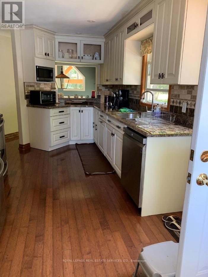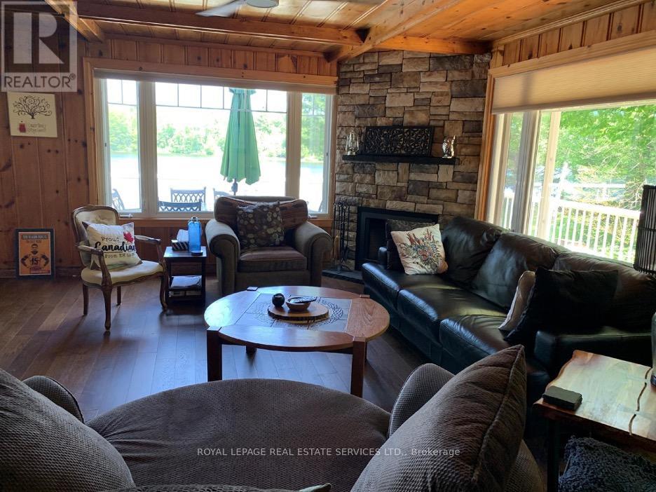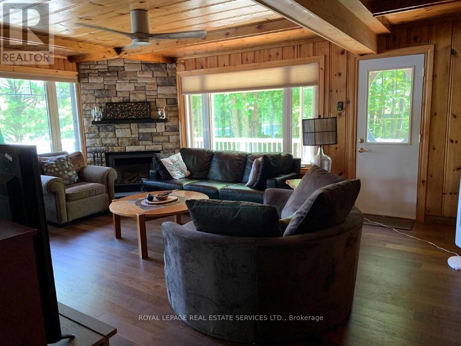 Welcome to this picture-perfect Muskoka retreat overlooking the Lake where modern comfort meets timeless cottage charm on the majestic, "Moon River in Gaunt Bay". A welcoming Foyer with exposed timber accents sets the tone, leading into a bright and functional living space ideal for both relaxing and entertaining. The gourmet kitchen, entertaining dining room, spacious family room with fireplace all overlook the water and nature. Four bedrooms with primary on main floor along with additional bedrooms on ground level offer picture windows and walkout to lawn, lake and dock. Nestled on stunning 250 ft waterfront lot, this thoughtfully updated property offers the perfect balance of year-round living and serene getaway lifestyle.The main cottage showcases a warm inviting design, large windows, wrap around (water and sides) deck with glass railings all overlooking the water, sandy beach and grassed play areas. Wake up to the sounds of nature, spend your days on the water, and unwind under the trees. This is Muskoka living at its best. Whether you're hosting family weekends, working remotely in a peaceful setting, or investing in a high-demand recreational market, this property offers exceptional versatility.Step outside and take in the peaceful surroundings of the Moon River in Gaunt Bay. Towering trees, open green space, and picturesque views of the water create a true sense of escape while still offering usable outdoor living space for gatherings, fires, and quiet times.This property features a detached single garage with a separate entrance to the upper open concept 3 season loft or bunkie. This versatile building adds both character and functionality to this offering.Located just moments from the quaint Town of Bala that offer shops, supermarket, restaurants, Dons bakery, Community centre, Arena, Legion, Kee to Bala, LCBO, Lumber Yards, Hardware store and more. (id:50787)