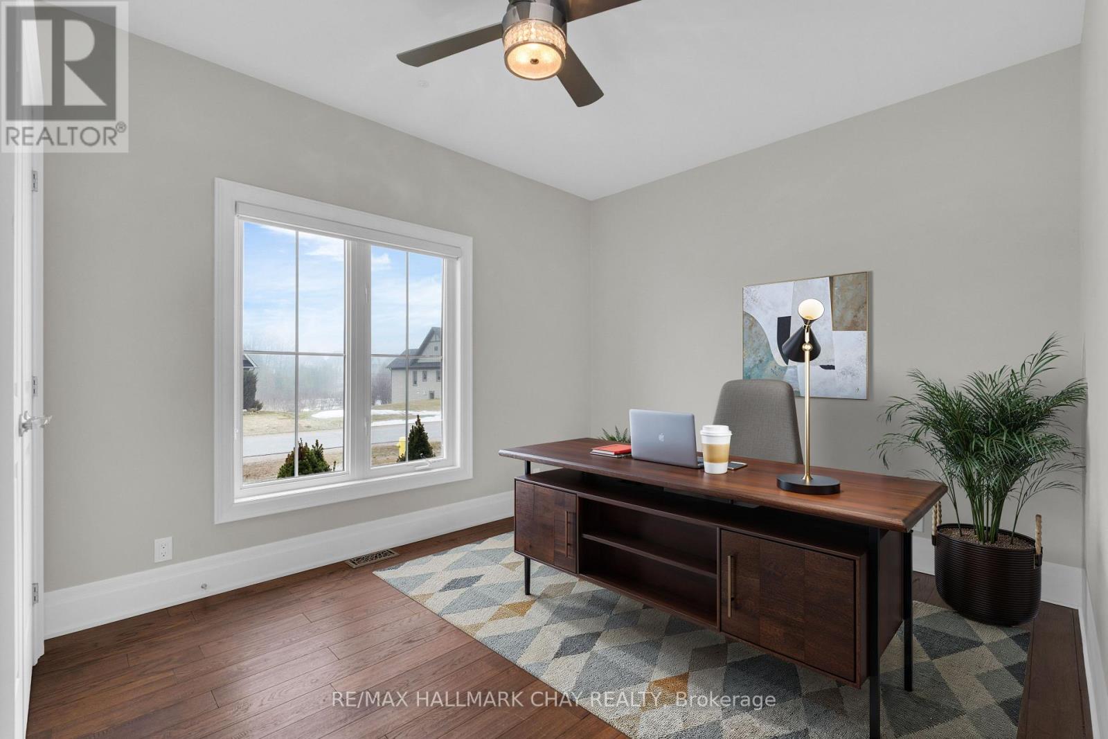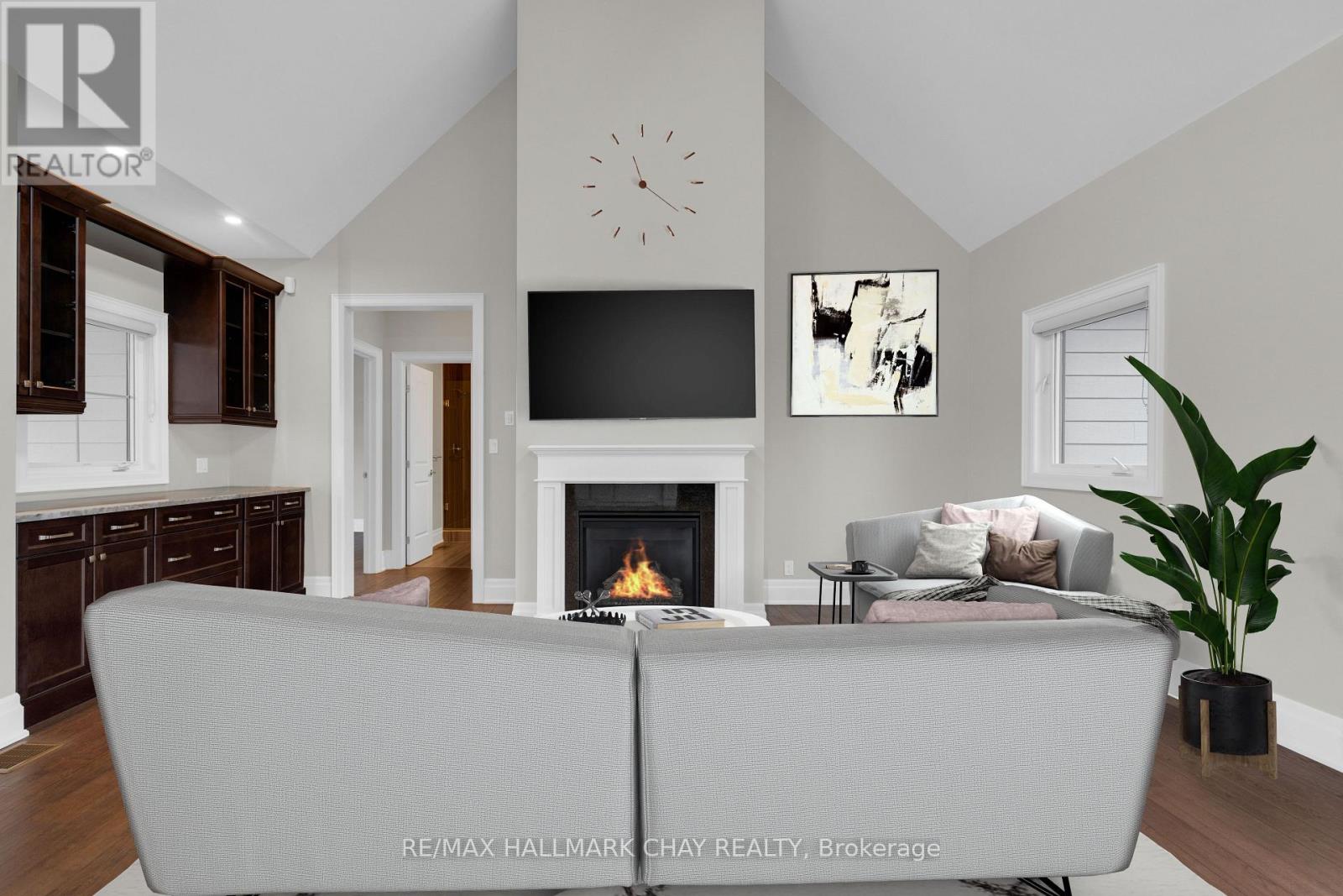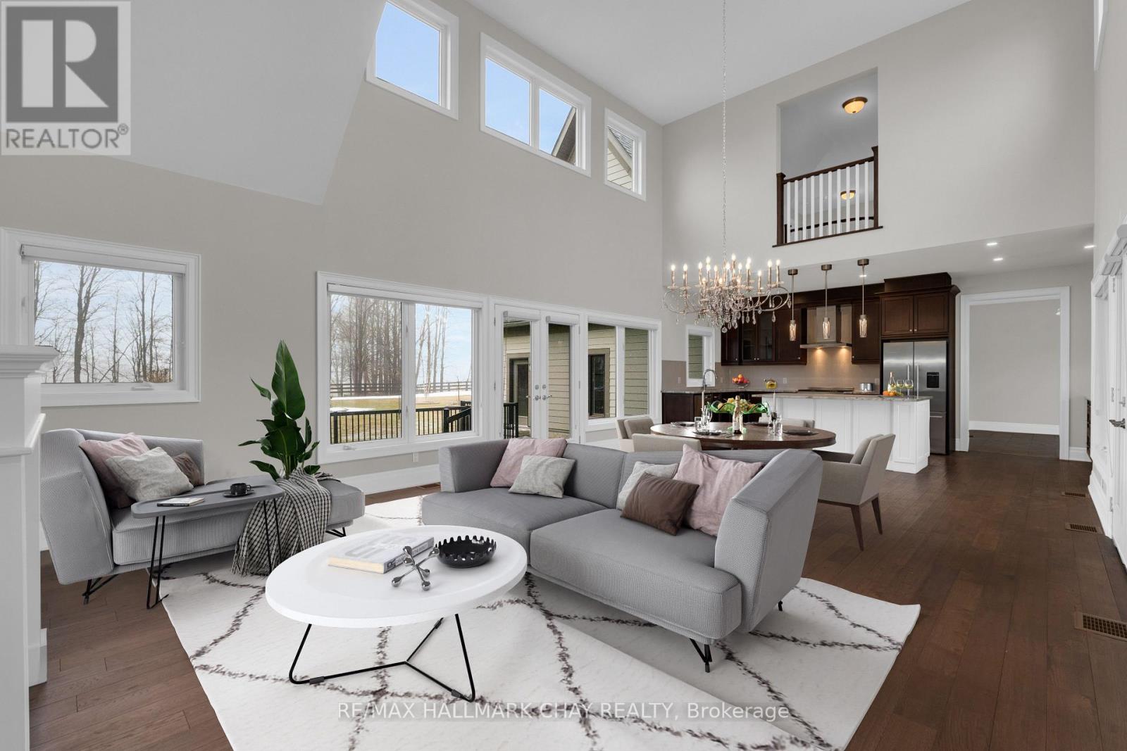 Welcome to 14 Georgian Grande Dr in Oro-Medonte's prestigious Braestone Estates. This charming bungaloft is nestled on a highly desirable + acre lot backing on the Braestone Farm. Enjoy easy access to the fields of berries, fruit trees, vegetables, and skating pond. This Morgan model boasts a modern open-concept design with 3 bedrms, 3 bathrms, and over 2,400 sq ft of fin living space. Dramatic soaring ceilings in the main living areas are accentuated with walls of windows both front and back. The kitchen features stone countertops, high end Fisher-Paykel appliances, and an additional servery to expand your storage space. The dining area, unique by design, has French doors leading to the front covered porch and also out to the back patio. The living room is made cozy by a Napoleon gas f/p. The primary suite is situated on the back of the home with tranquil views of the farm, has a W/I closet and 4 pc ens with glass shower. The second bedrm on the main floor is being used as an office. Upstairs, a 900 sq ft loft area is set out with a cozy sitting room, a bedroom that can accommodate 2 queen size beds and has an ensuite bath and W/I closet. Great for guests or family. The unfinished basement with rough-in bath has endless possibilities for extended living space. EXTRAS: $5,000 flooring allowance for upper loft. Bell Fibe high speed, Double car garage, 11 KW generator, monitored alarm system, gas BBQ hookup, and lawn sprinkler system. Located between Barrie and Orillia, enjoy peaceful country estate living with a wide variety of outdoor activities at your doorstep; Golf at the Braestone Club, Ski at Horseshoe and Mount St Louis, Bike at Hardwood Hills, Hike in the Simcoe and Copeland forests, Easy access to snowmobile trails, Boat in the surrounding lakes, Get pampered at the Vetta Spa. Feel comfortable being just 10-15 min drive from a wide variety of amenities including restaurants, rec centres, theatres, hospitals, shopping, and Costco. (id:50787)