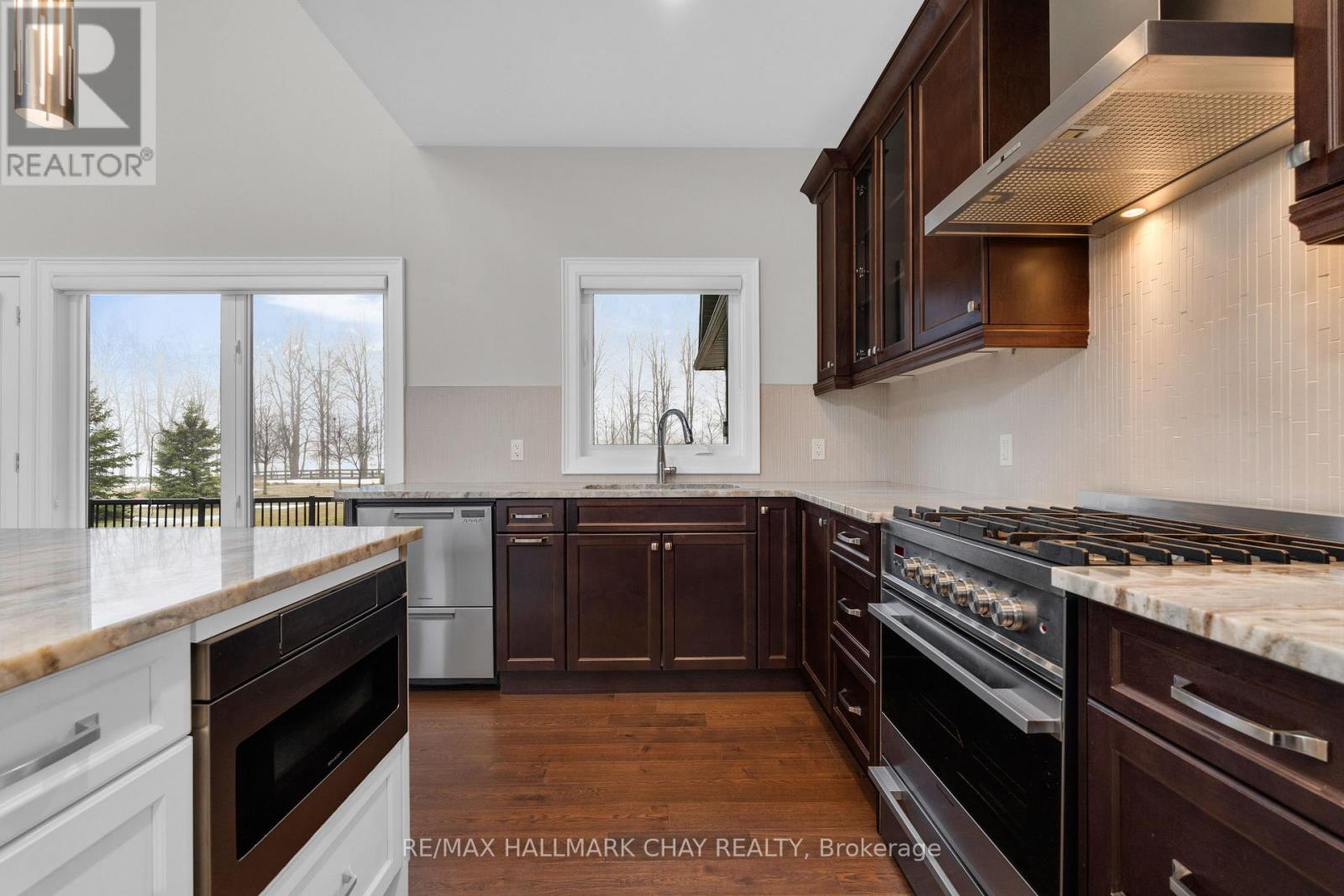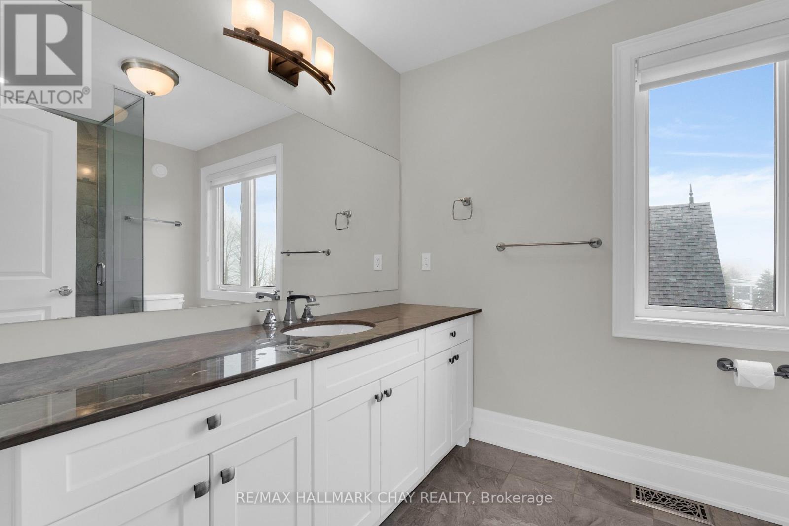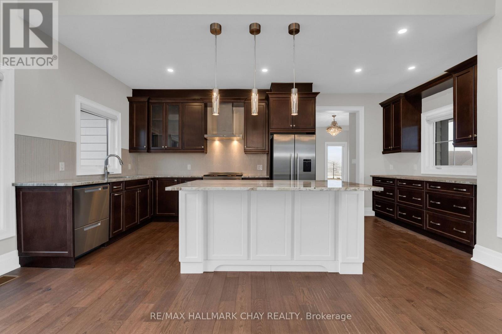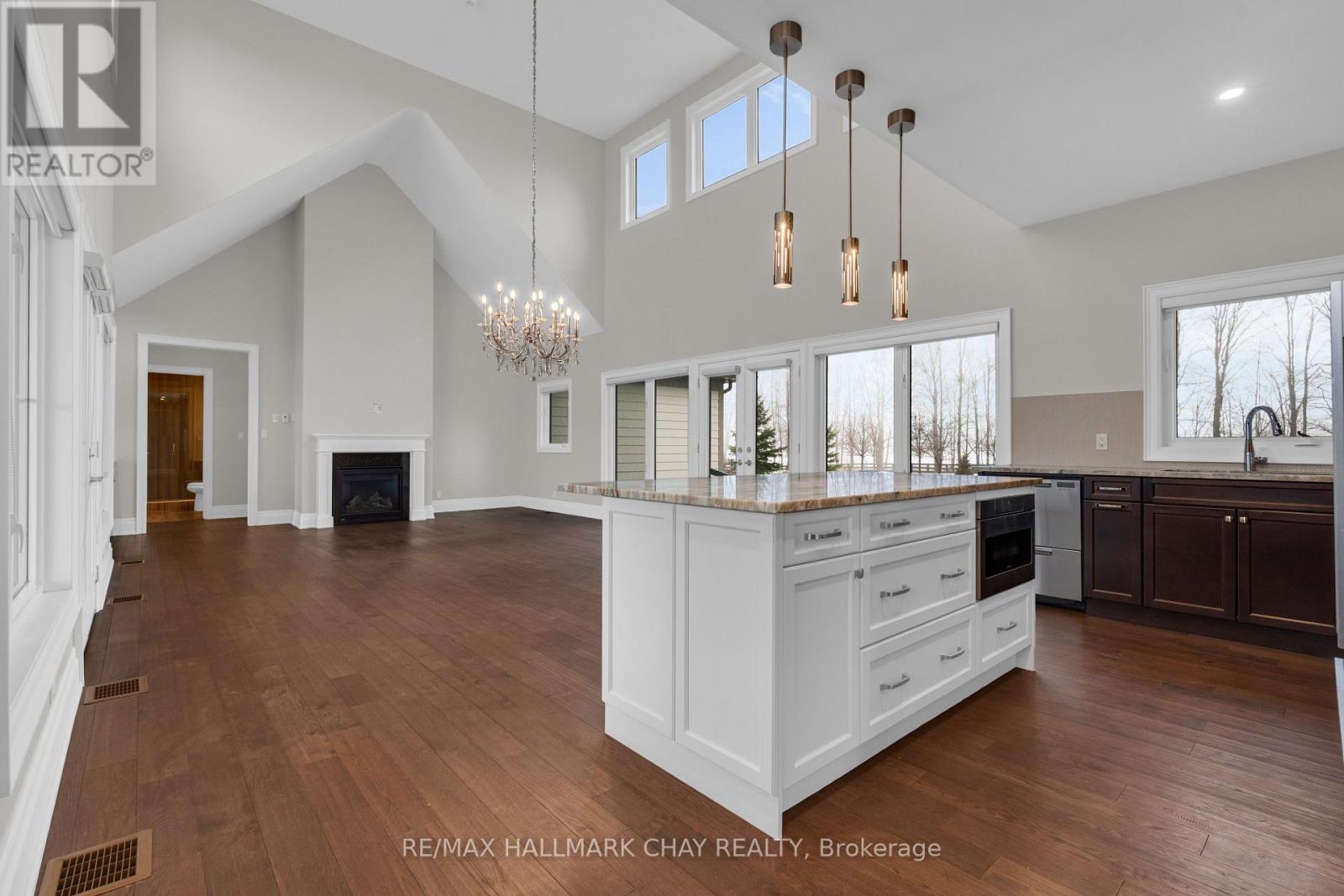 Welcome to 14 Georgian Grande Dr in Oro-Medonte's prestigious Braestone Estates. This charming bungaloft is nestled on a highly desirable + acre lot backing on the Braestone Farm. Enjoy easy access to the fields of berries, fruit trees, vegetables, and skating pond. This Morgan model boasts a modern open-concept design with 3 bedrms, 3 bathrms, and over 2,400 sq ft of fin living space. Dramatic soaring ceilings in the main living areas are accentuated with walls of windows both front and back. The kitchen features stone countertops, high end Fisher-Paykel appliances, and an additional servery to expand your storage space. The dining area, unique by design, has French doors leading to the front covered porch and also out to the back patio. The living room is made cozy by a Napoleon gas f/p. The primary suite is situated on the back of the home with tranquil views of the farm, has a W/I closet and 4 pc ens with glass shower. The second bedrm on the main floor is being used as an office. Upstairs, a 900 sq ft loft area is set out with a cozy sitting room, a bedroom that can accommodate 2 queen size beds and has an ensuite bath and W/I closet. Great for guests or family. The unfinished basement with rough-in bath has endless possibilities for extended living space. EXTRAS: $5,000 flooring allowance for upper loft. Bell Fibe high speed, Double car garage, 11 KW generator, monitored alarm system, gas BBQ hookup, and lawn sprinkler system. Located between Barrie and Orillia, enjoy peaceful country estate living with a wide variety of outdoor activities at your doorstep; Golf at the Braestone Club, Ski at Horseshoe and Mount St Louis, Bike at Hardwood Hills, Hike in the Simcoe and Copeland forests, Easy access to snowmobile trails, Boat in the surrounding lakes, Get pampered at the Vetta Spa. Feel comfortable being just 10-15 min drive from a wide variety of amenities including restaurants, rec centres, theatres, hospitals, shopping, and Costco. (id:50787)