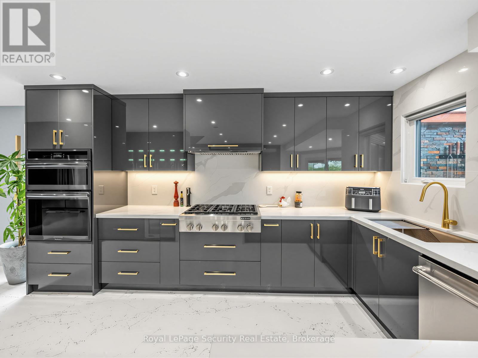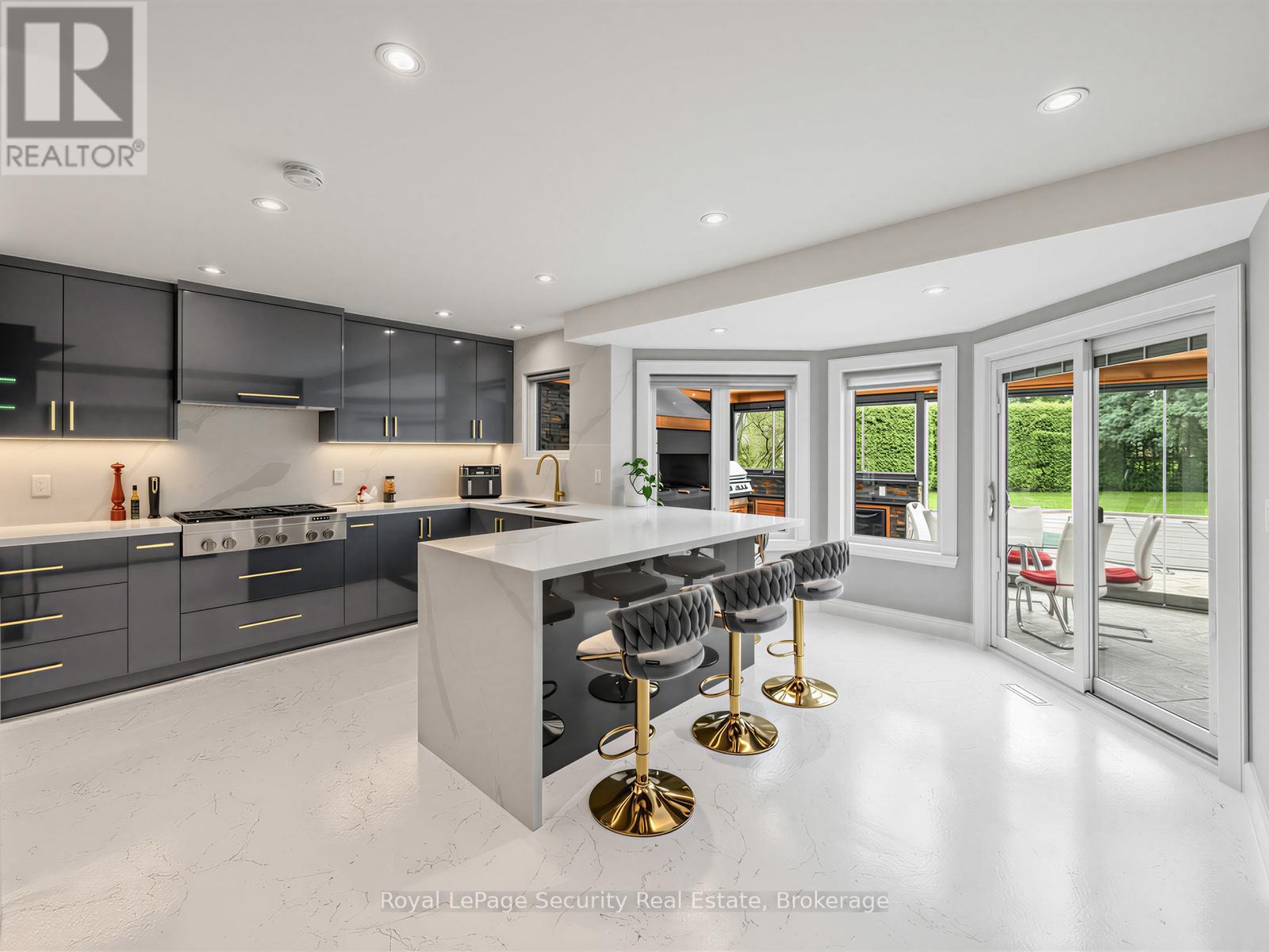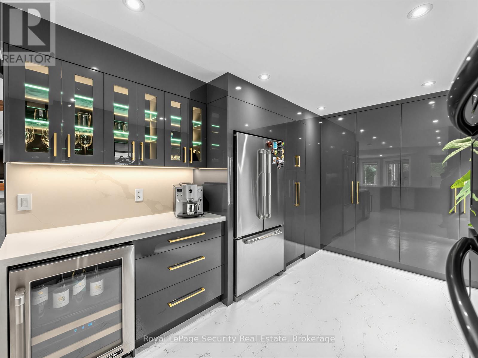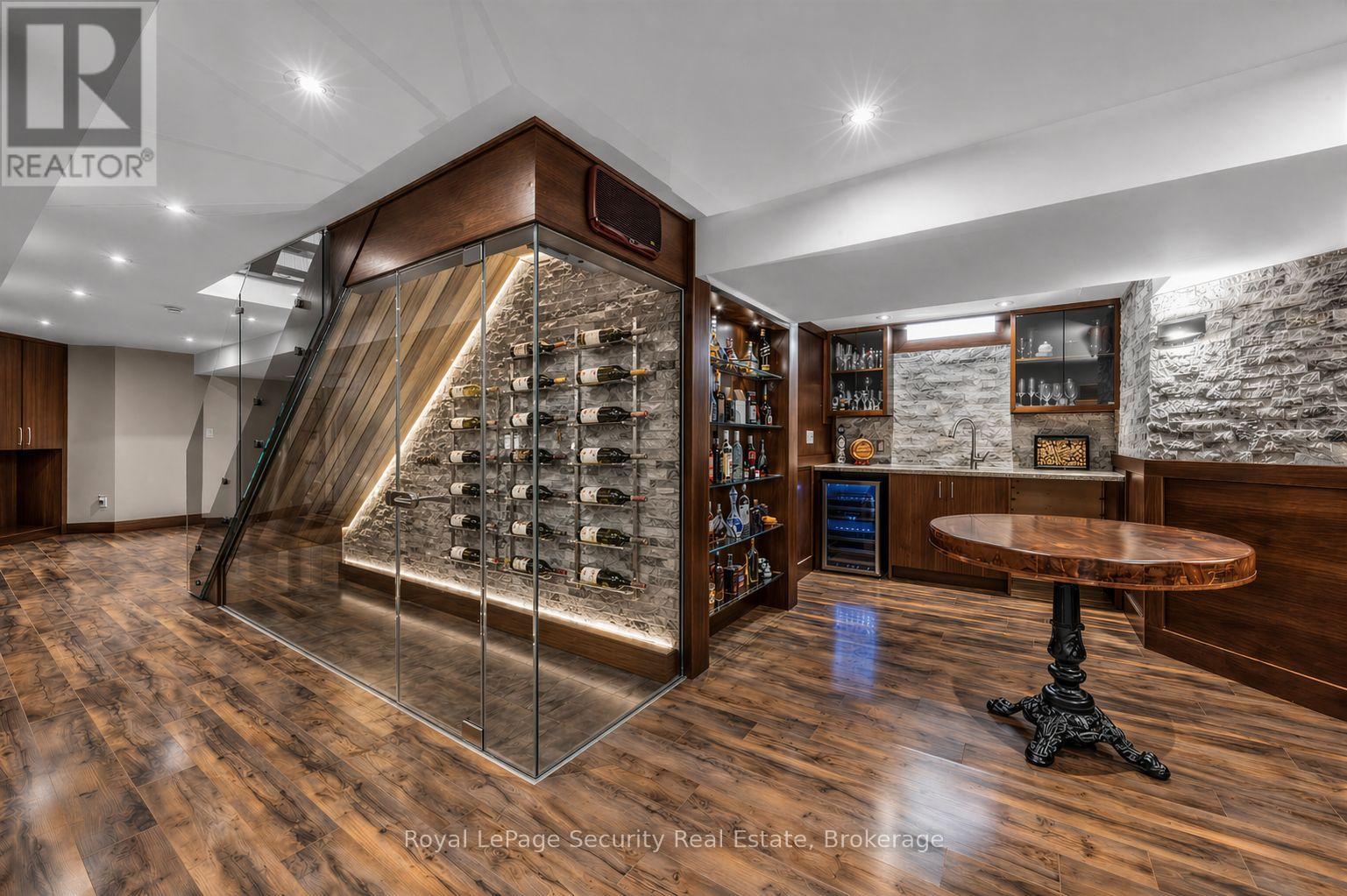 Stunning Brampton residence set on a generous lot in a park-like setting within a mature, family-friendly neighborhood. This home has been extensively redesigned and renovated with exceptional materials and craftsmanship throughout. A beautifully reimagined foyer welcomes you with a floor-to-ceiling custom feature wall, complete with built-in seating and a concealed closet. From here, sweeping sightlines reveal the main floor's open-concept design, highlighted by a mono-stringer red oak staircase with frameless glass railings. A wall of windows floods the space with natural light and frames views of the private backyard oasis. The chef's kitchen is equipped with top-of-the-line appliances, gleaming quartz countertops and backsplash, and abundant storage within floor-to-ceiling custom cabinetry. A large island anchors the space, perfect for both everyday living and entertaining. The kitchen also offers direct access to a sunroom/three-season entertaining area and the beautifully treed backyard with in-ground pool! Upstairs features four generously sized bedrooms. The primary suite boasts a wall-to-wall walk-in closet with custom floor-to-ceiling cabinetry. The finished basement is designed for entertaining, featuring a fully climate-controlled wine room, a bar with sink, and a full audio visual entertainment wall. Ideally located close to all amenities, including excellent shops, restaurants, parks (with direct access from the backyard), top-rated schools, public transit, and major highways. This is a home that must be experienced in person to be fully appreciated. *See attachment for full list of improvements and features. (id:50787)