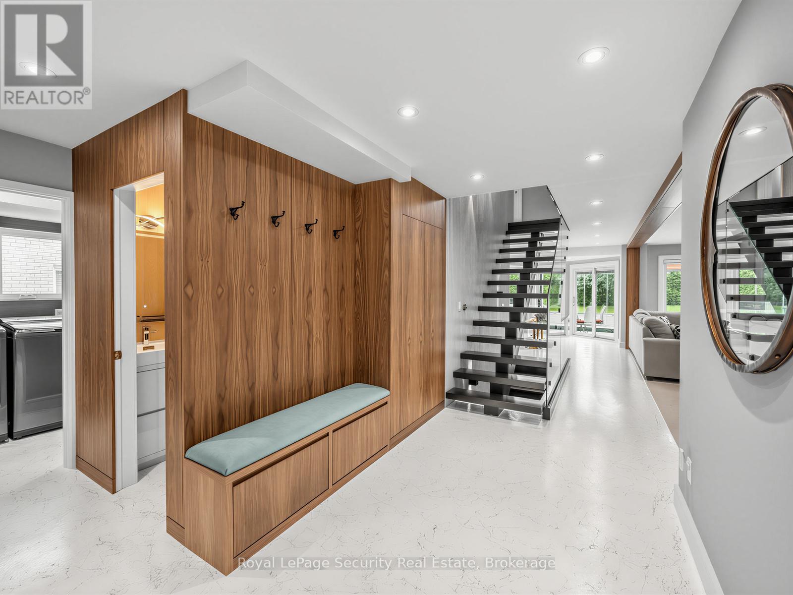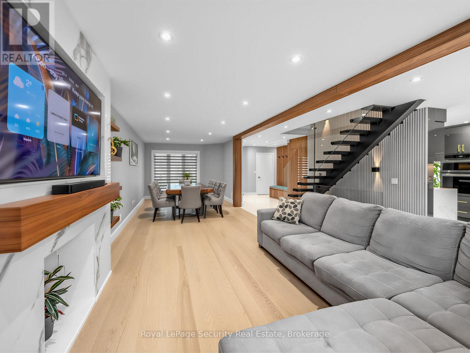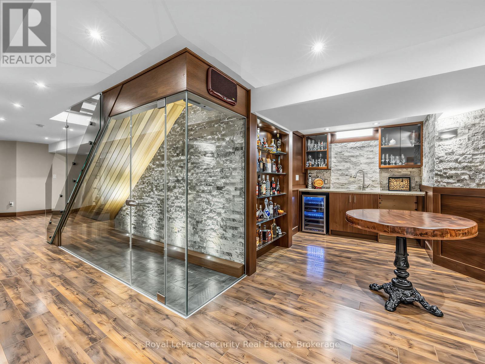 Stunning Brampton residence set on a generous lot in a park-like setting within a mature, family-friendly neighborhood. This home has been extensively redesigned and renovated with exceptional materials and craftsmanship throughout. A beautifully reimagined foyer welcomes you with a floor-to-ceiling custom feature wall, complete with built-in seating and a concealed closet. From here, sweeping sightlines reveal the main floor's open-concept design, highlighted by a mono-stringer red oak staircase with frameless glass railings. A wall of windows floods the space with natural light and frames views of the private backyard oasis. The chef's kitchen is equipped with top-of-the-line appliances, gleaming quartz countertops and backsplash, and abundant storage within floor-to-ceiling custom cabinetry. A large island anchors the space, perfect for both everyday living and entertaining. The kitchen also offers direct access to a sunroom/three-season entertaining area and the beautifully treed backyard with in-ground pool! Upstairs features four generously sized bedrooms. The primary suite boasts a wall-to-wall walk-in closet with custom floor-to-ceiling cabinetry. The finished basement is designed for entertaining, featuring a fully climate-controlled wine room, a bar with sink, and a full audio visual entertainment wall. Ideally located close to all amenities, including excellent shops, restaurants, parks (with direct access from the backyard), top-rated schools, public transit, and major highways. This is a home that must be experienced in person to be fully appreciated. *See attachment for full list of improvements and features. (id:50787)