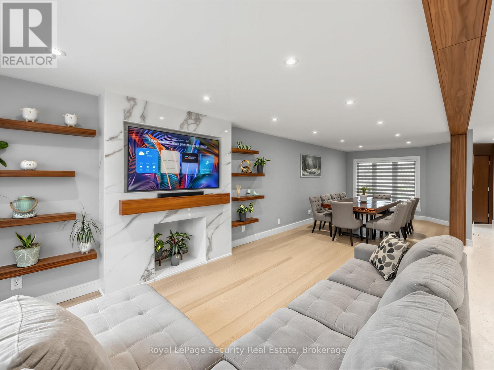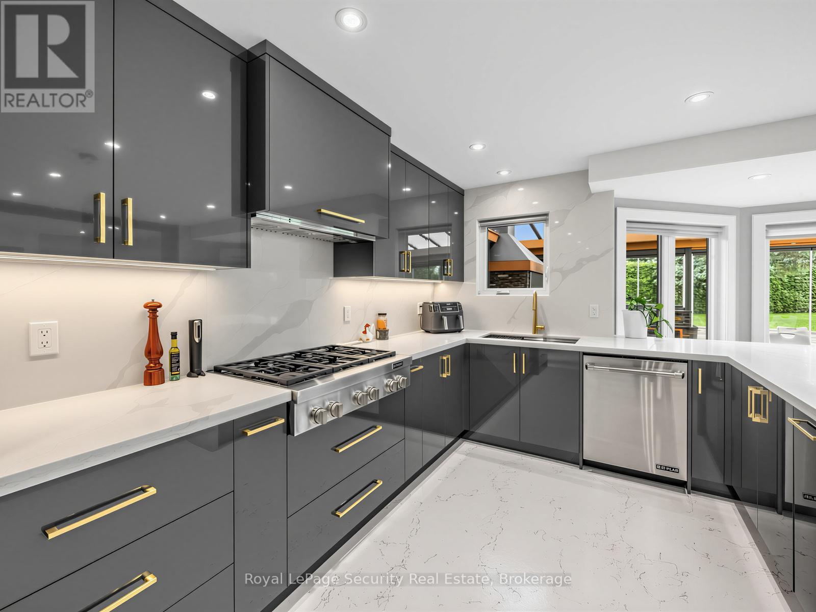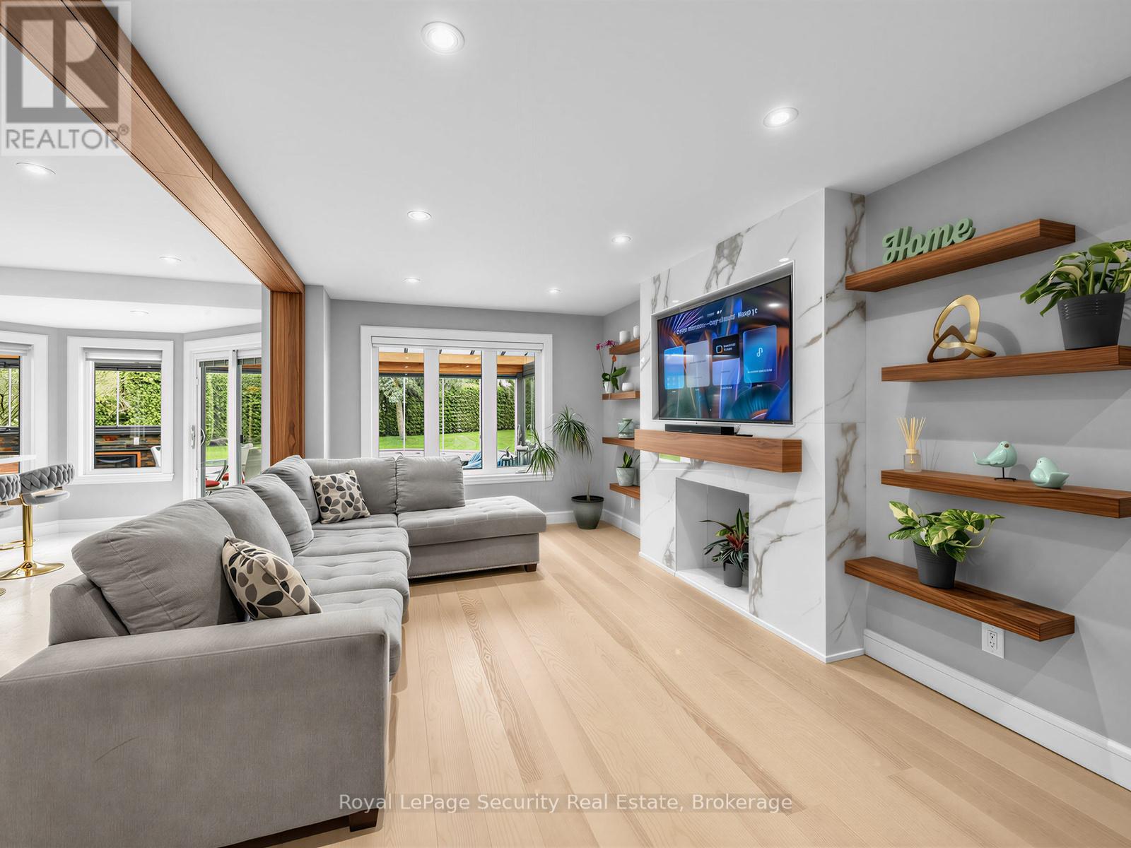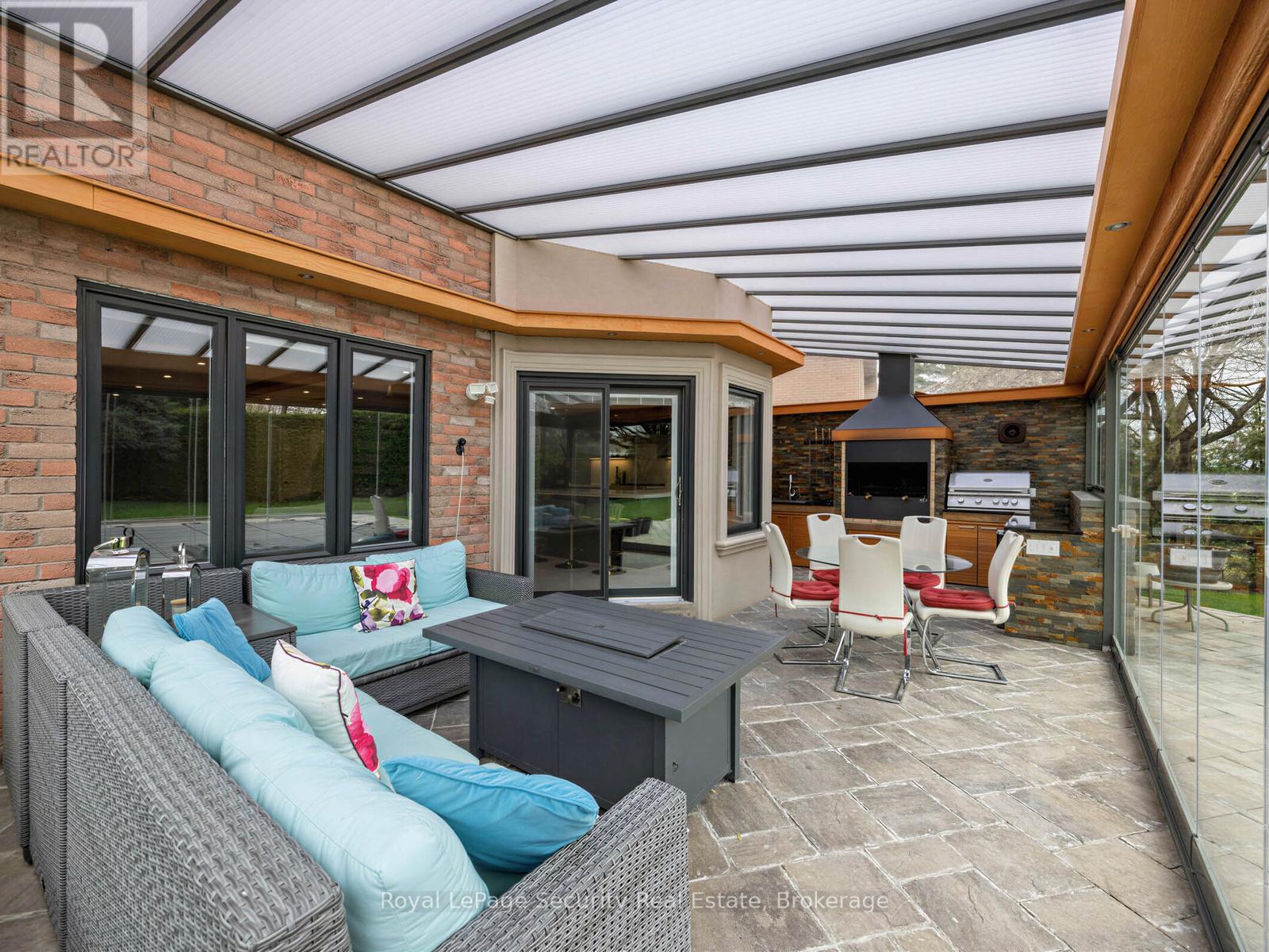 Stunning Brampton residence set on a generous lot in a park-like setting within a mature, family-friendly neighborhood. This home has been extensively redesigned and renovated with exceptional materials and craftsmanship throughout. A beautifully reimagined foyer welcomes you with a floor-to-ceiling custom feature wall, complete with built-in seating and a concealed closet. From here, sweeping sightlines reveal the main floor's open-concept design, highlighted by a mono-stringer red oak staircase with frameless glass railings. A wall of windows floods the space with natural light and frames views of the private backyard oasis. The chef's kitchen is equipped with top-of-the-line appliances, gleaming quartz countertops and backsplash, and abundant storage within floor-to-ceiling custom cabinetry. A large island anchors the space, perfect for both everyday living and entertaining. The kitchen also offers direct access to a sunroom/three-season entertaining area and the beautifully treed backyard with in-ground pool! Upstairs features four generously sized bedrooms. The primary suite boasts a wall-to-wall walk-in closet with custom floor-to-ceiling cabinetry. The finished basement is designed for entertaining, featuring a fully climate-controlled wine room, a bar with sink, and a full audio visual entertainment wall. Ideally located close to all amenities, including excellent shops, restaurants, parks (with direct access from the backyard), top-rated schools, public transit, and major highways. This is a home that must be experienced in person to be fully appreciated. *See attachment for full list of improvements and features. (id:50787)