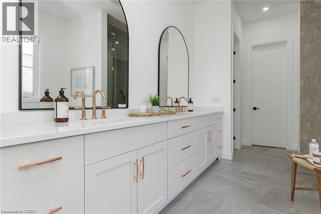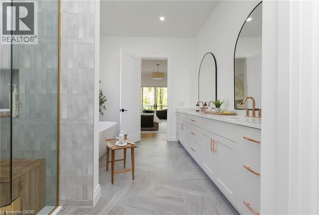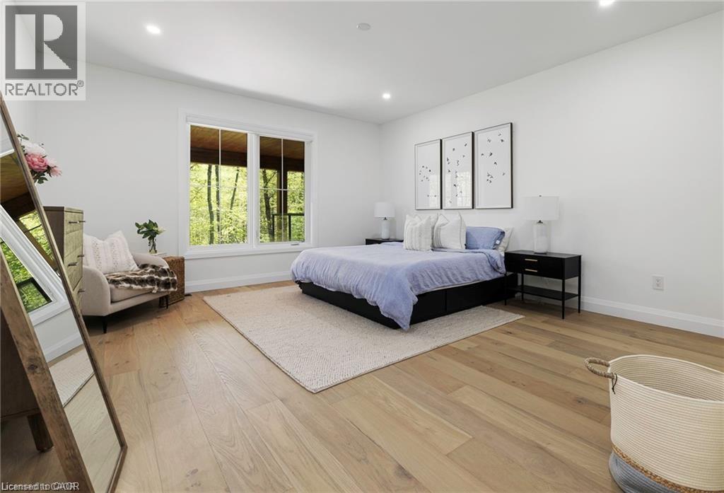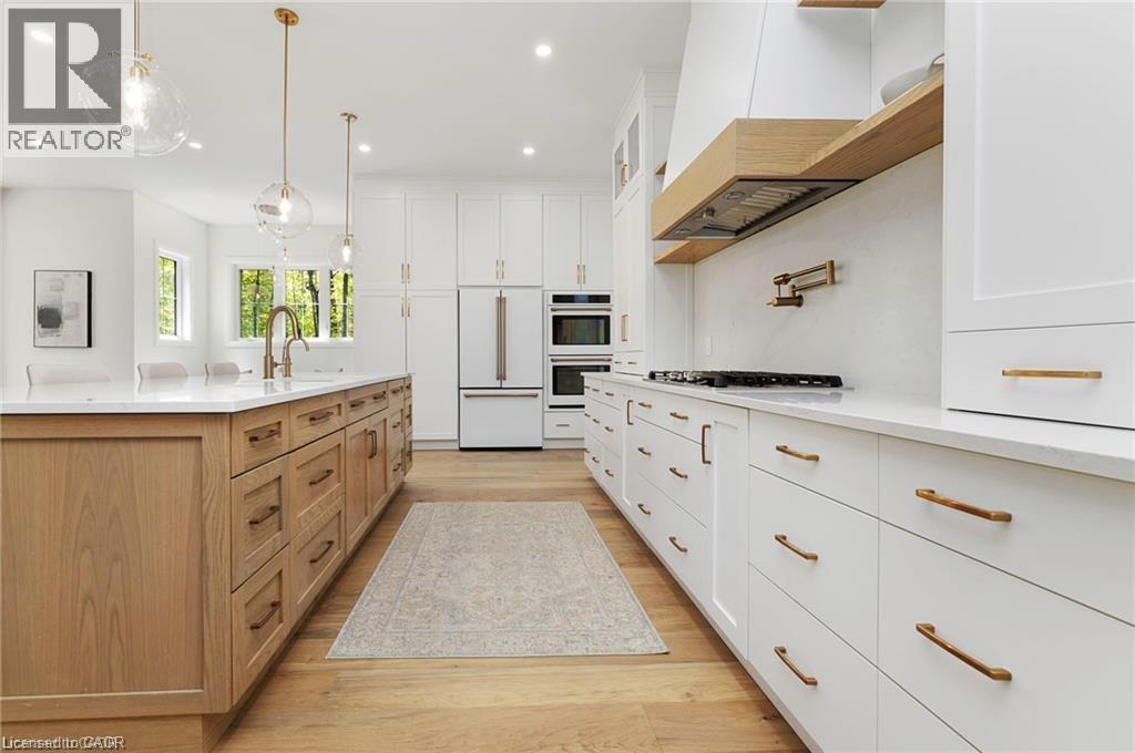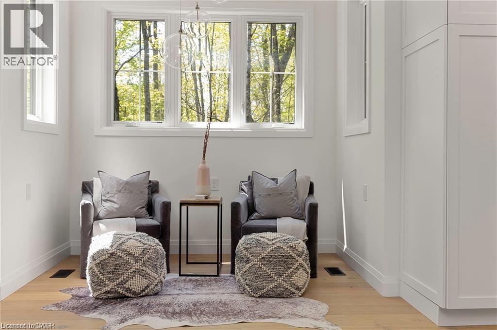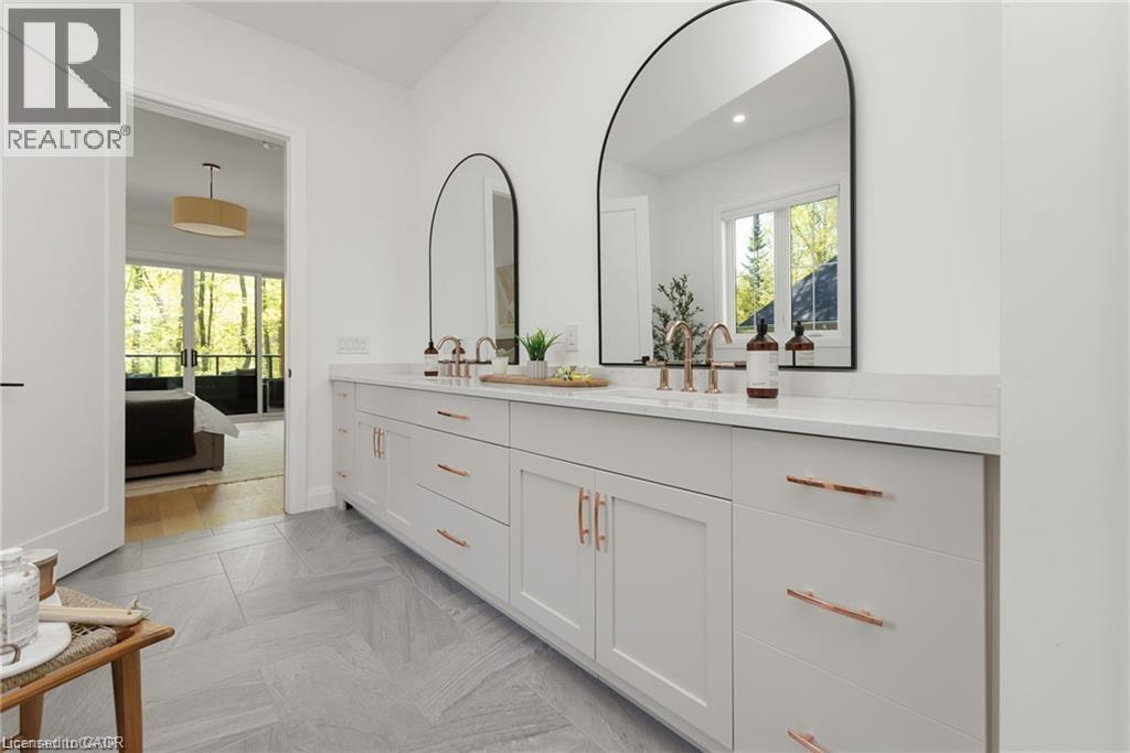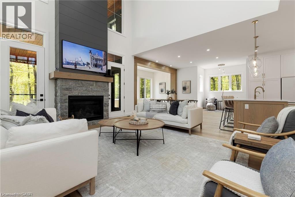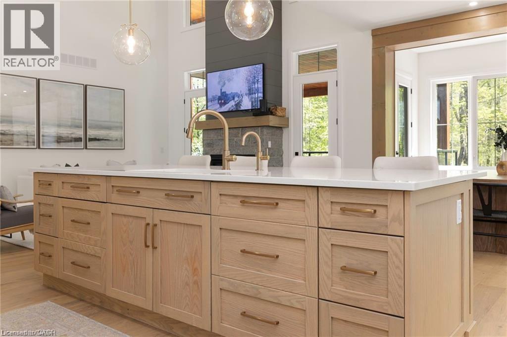 This stunning residence embodies the epitome of modern luxury, seamlessly integrated into a breathtaking natural landscape. Nestled among towering trees and backing onto Hole 11 of Deerhurst Highlands Golf Course, this 6800+ Square foot masterpiece offers 6 spacious bedrooms and 4.5 bathrooms, privacy, tranquility, and every imaginable comfort. The open-concept main floor features pre-engineered oak flooring and a striking granite stone fireplace that anchors the living space. The gourmet kitchen is equipped with top-tier appliances, including a double wall oven, French door fridge, and built-in coffee maker. It also includes quartz countertops, a walk-in pantry, and custom cabinetry designed for both beauty and functionality. The thoughtful layout offers both a main floor and 2nd floor primary suite, each complete with luxurious en-suites featuring steam showers (main floor only) and soaker tubs. Every bathroom exudes spa-like sophistication. Enjoy 2 cozy fireplaces, 2 balconies, and a walk-out patio inviting you to relax and take in the beauty of the surrounding forest. The 2nd floor offers 3 additional bedrooms and 2 bathrooms, allowing for additional family to enjoy their own luxurious spaces. The walk-out lower level features in-floor heating, a stylish wet bar, additional bedrooms, and a generous living space ideal for entertaining. The heated 3 bay garage, also with in-floor heating, provides exceptional comfort and convenience year-round. Outside, the landscaped grounds are perfect for evenings spent under the stars. Conveniently located near schools, shopping, and scenic trails, yet tucked away in a quiet enclave, this home offers the perfect balance of seclusion and accessibility. With easy highway access, exploring all that Huntsville and Muskoka have to offer has never been easier. Don't miss your chance to own this rare retreat where luxury meets nature. Prepare to fall in love with the unparalleled beauty and craftsmanship of this home. (id:50787)