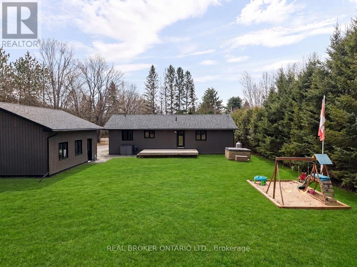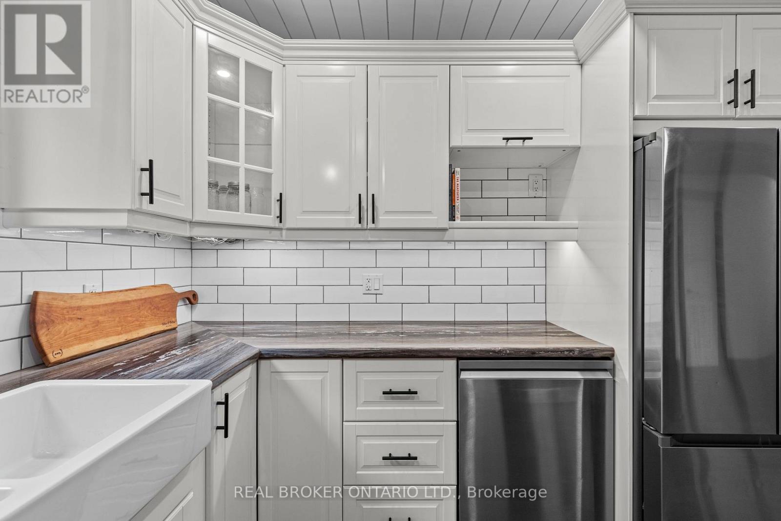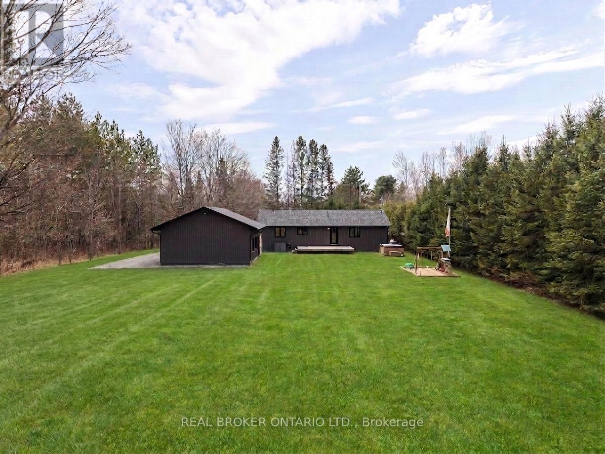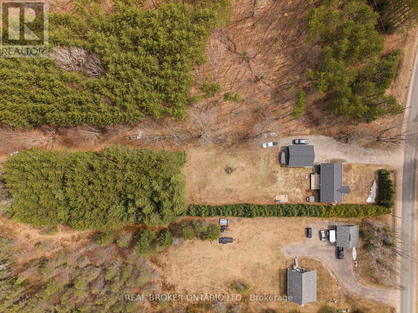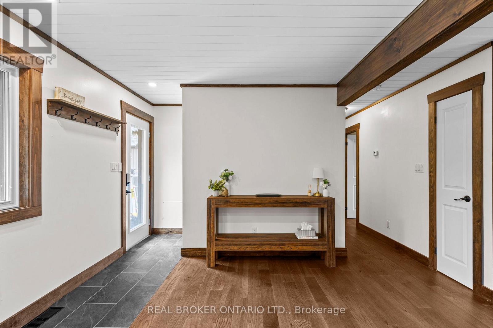 Check Out This Stunning Bungalow in Algonquin Highlands.Welcome to 1401 North Shore Rd, a turnkey rustic-modern bungalow offering luxury living in cottage country. This stunning 3-bedroom, 2-bathroom home features an open-concept layout highlighted by a floor-to-ceiling stacked stone fireplace, warm hardwood floors, and exposed timber beams. The gourmet kitchen boasts white shaker cabinets, a farmhouse sink, and stainless appliances - all flowing seamlessly into the living and dining areas, perfect for entertaining.The master suite is a true retreat, complete with a gorgeous private ensuite featuring a freestanding soaker tub, glass walk-in shower, and double stone vanity. A second full bathroom serves the remaining two bedrooms with the same quality finishes throughout. The convenience of main floor laundry rounds out the thoughtful, functional layout. Adding even more value, the property includes a 2022-built detached shop - ideal for hobbyists, tradespeople, or anyone in need of serious storage and workspace. The full unfinished basement presents an incredible opportunity to expand your living space, whether you envision a recreation room, additional bedrooms, a home gym, or more storage - the potential is entirely yours to define. Enjoy the outdoors from the beautiful timber-frame covered porch on this private, treed lot. Located near Beech Lake, Maple Lake, and local trails, this move-in ready masterpiece is the perfect year-round home. (id:50787)