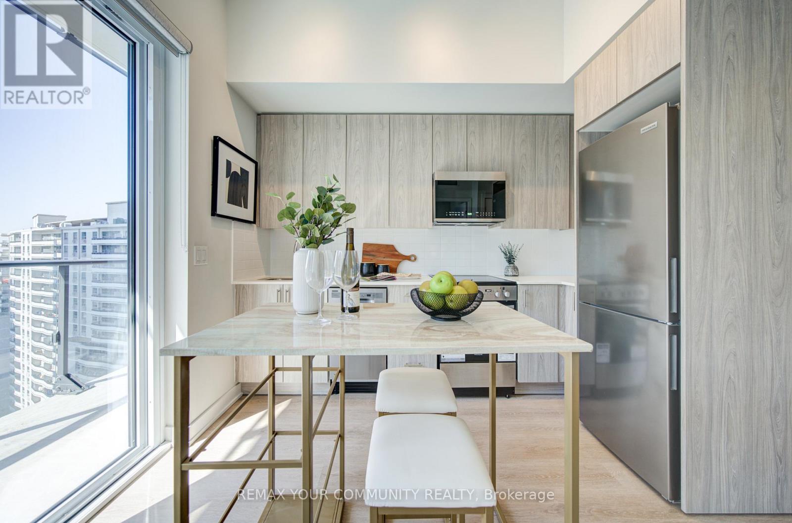 Urban Living at Its Finest in the Heart of North York, Toronto! Welcome to this 2-year-new luxury 1-bedroom, 1-bath condo ideally located in the vibrant Yonge/Finch/Sheppard corridor - a true Walker's Paradise with an outstanding 98/100 Walk Score. This thoughtfully designed condo home features 9-foot smooth ceiling and a breathtaking south-facing view overlooking treetops and open blue skies, filling the space with natural light. Step out to the expansive private balcony - perfect for morning coffee or unwinding after a long day. The modern, high-end kitchen boasts stainless steel appliances, elegant cabinetry, and neutral-toned finishes that create a timeless minimalist aesthetic. Enjoy the convenience of ensuite laundry with premium front-load washer and dryer, along with strategic storage solutions, including a large entry closet, the wall-to-wall closet in the primary bedroom, and a bonus locker in the building. Enjoy unparalleled convenience with the North York Centre subway station just a 5-minute walk away, and the Yonge/Finch bus terminal nearby, making commuting downtown or nearby universities effortless. Stroll to Empress Walk, where groceries, Cineplex theatre, trendy shops, restaurants, and all the conveniences of Yonge Street are right at your doorstep. With Highway 401 only a 5-minute drive away, this location is perfect for both transit users and drivers alike. Whether you're a first-time buyer, mature student, young professional, or savvy investor, this home offers the perfect blend of lifestyle, convenience, and location - a peaceful retreat to recharge while staying connected to the pulse of city living. Don't miss this rare opportunity to own a piece of Toronto's finest real estate at the most sought-after location and watch its future value grow! (id:50787)