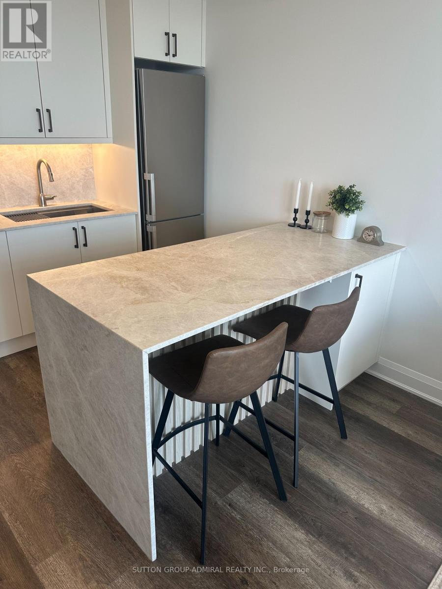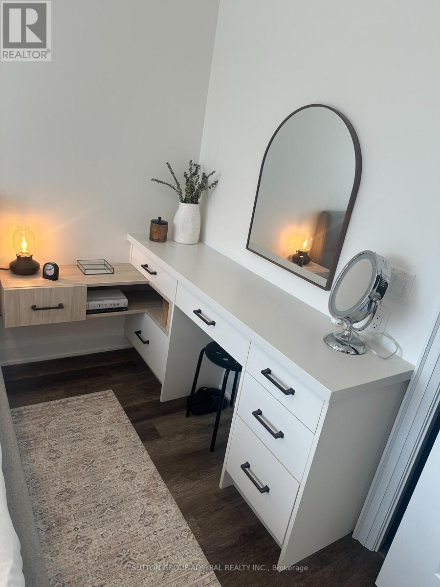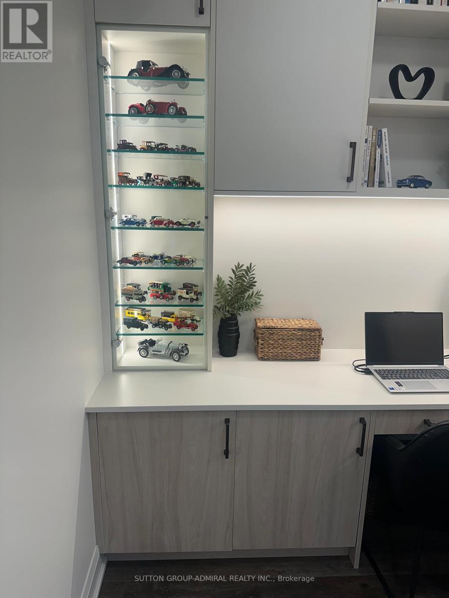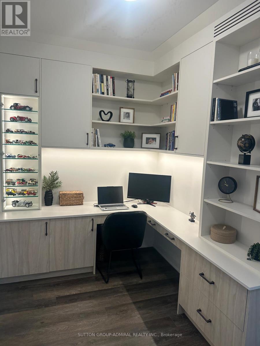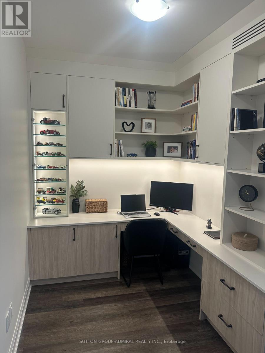 Experience elevated condo living in this beautifully upgraded 1 Bedroom + Den, 2-bathroom suite at D'Or Condos in the heart of Thornhill. This bright and stylish unit offers unobstructed views, a large sunny balcony, 9 ft ceilings, laminate flooring, and a seamless open-concept layout designed for both comfort and entertaining. The fully renovated kitchen is a true showpiece, featuring sleek finishes, stainless steel appliances, and a gorgeous custom island that adds both function and style. The spacious den has been enhanced with brand new custom office built-ins, creating the perfect work-from-home setup. The primary bedroom is thoughtfully designed with custom cabinetry, including a built-in makeup desk and sitting area, along with a private ensuite and generous closet space, giving the suite a more elevated and luxurious feel. Residents enjoy access to exceptional amenities including an indoor pool, sauna, gym, yoga studio, theatre room, outdoor BBQ area, dog spa, and more. Ideally located just steps to Promenade Shopping Centre, top-rated schools, grocery stores, restaurants, parks, and public transit, this is modern Thornhill living at its finest. Speak to listing agent about leasing the property furnished. (id:50787)