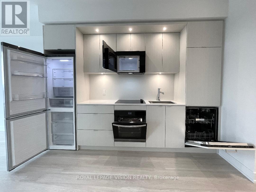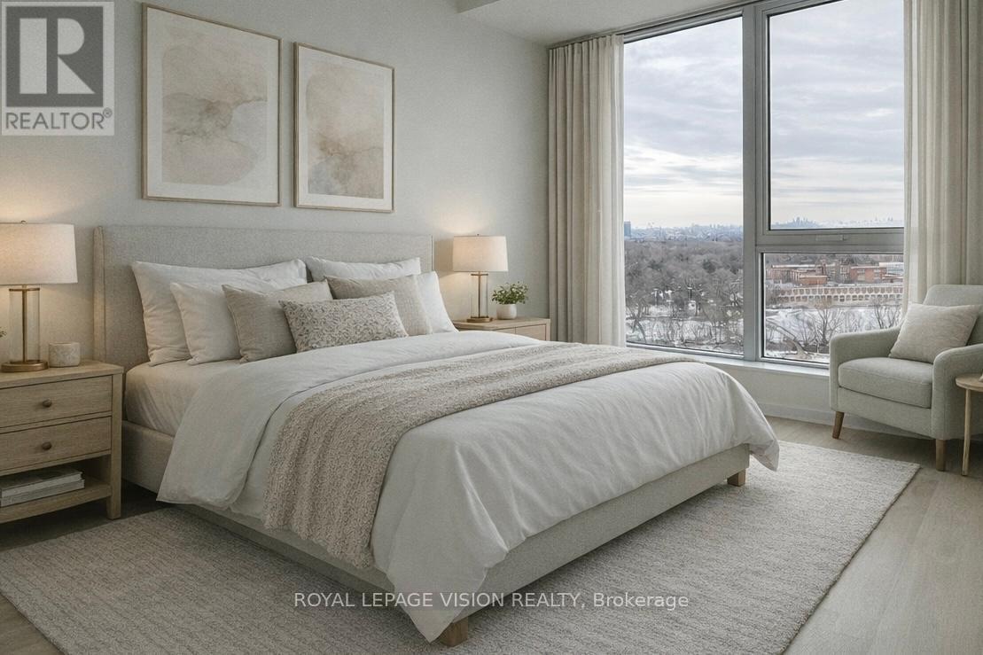 Welcome to Tridel's Westerly 2 Condos in the vibrant west end of Toronto. This bright and modern 1-bedroom condominium offers a smart, efficient layout ideal for professionals or couples seeking comfort and convenience. Featuring contemporary finishes, an open-concept living and dining area, and a sleek kitchen with modern appliances and a stone countertop. The spacious bedroom includes ample closet space, while large windows bring in plenty of natural light throughout the unit. Enjoy access to premium building amenities and the convenience of living just steps to transit, shopping, dining, and everyday essentials. With easy access to major highways and nearby parks, this location offers the perfect balance of urban living and neighbourhood charm. A fantastic opportunity to lease a stylish unit in one of Toronto's desirable west-end communities. *Digital Staging Used, may not be to scale. (id:50787)