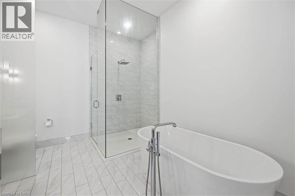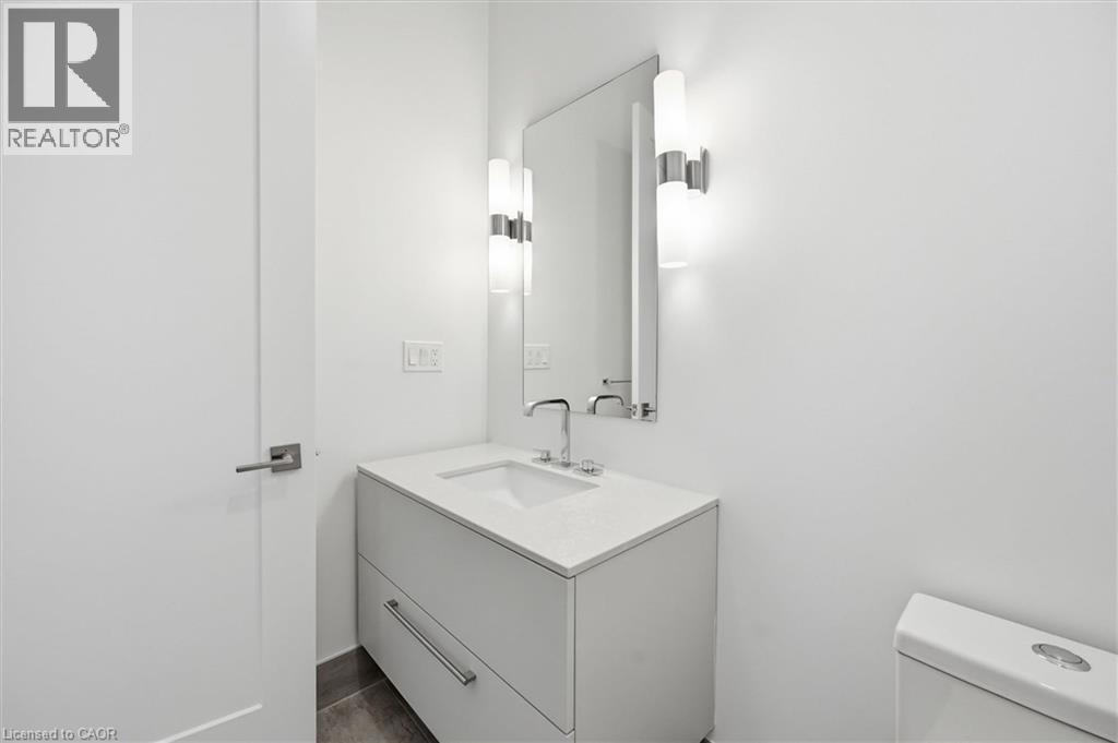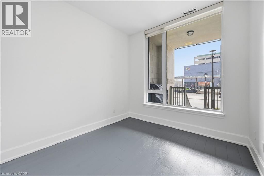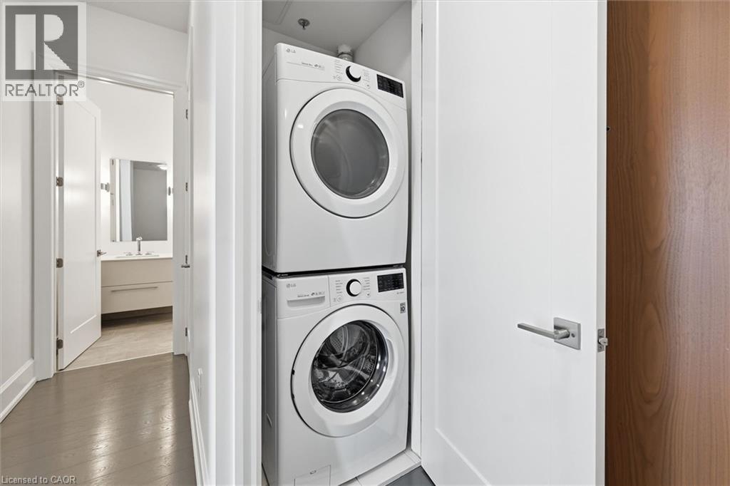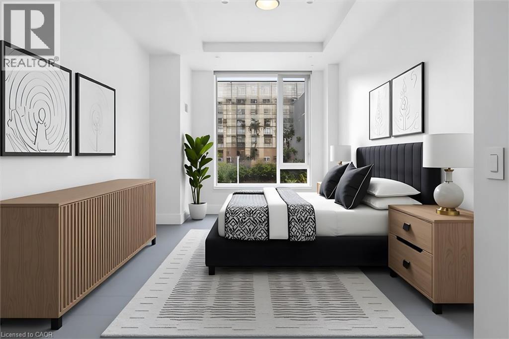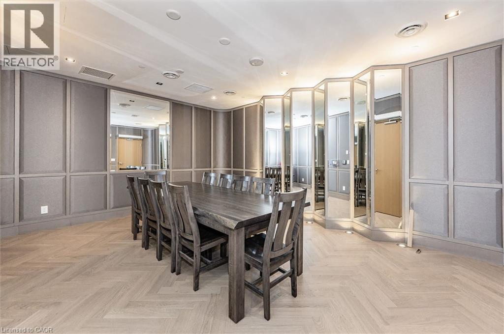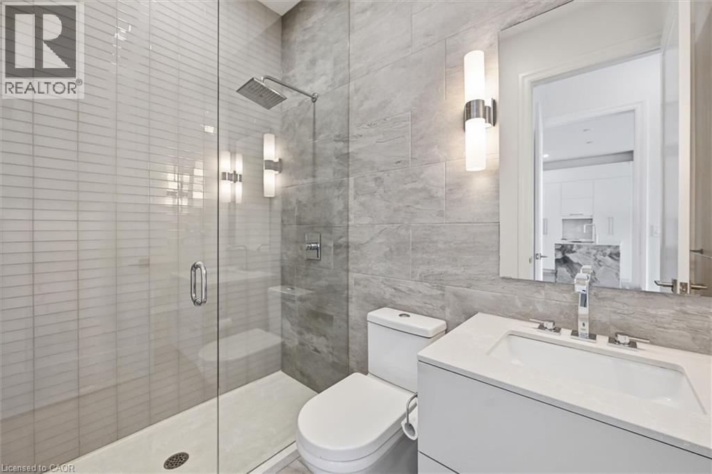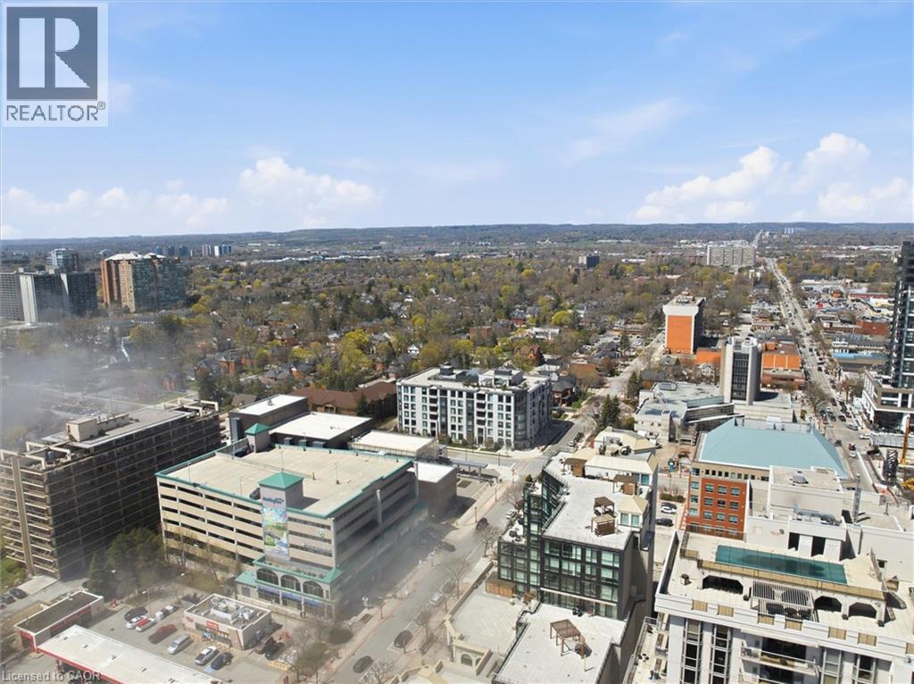 Experience 5-star executive living at the exclusive Saxony Condominium in the heart of downtown Burlington. Perfectly positioned across from the Performing Arts Centre and just steps to the lake, Spencer Smith Park, Joseph Brant Hospital, restaurants, boutique shopping, the pier, and Beachway trails, this premier location also offers quick highway access for added convenience. This stunning 1,517 sq. ft. suite showcases 10-ft ceilings, crown moulding, pot lights, automatic blinds, custom closets, and an elevated open-concept design. The gourmet kitchen features quartz countertops, built-in Miele appliances, an upgraded gas stove, and a striking waterfall island overlooking the spacious living and dining areas with built-in surround sound. Floor-to-ceiling windows fill the home with natural light and walk out to a large private terrace with a natural gas line and convenient street-level access. Two generous bedrooms each feature ensuites, including a luxurious primary retreat with a walk-in closet and a spa-inspired 5-piece ensuite. A den/office, powder room, laundry, walk-in storage closet, two side-by-side underground parking spaces, and a large locker complete the package. Residents enjoy premium amenities including a fitness room, theatre, party room, and an incredible rooftop terrace with fireplaces, water feature, BBQs, and panoramic lake. (id:50787)