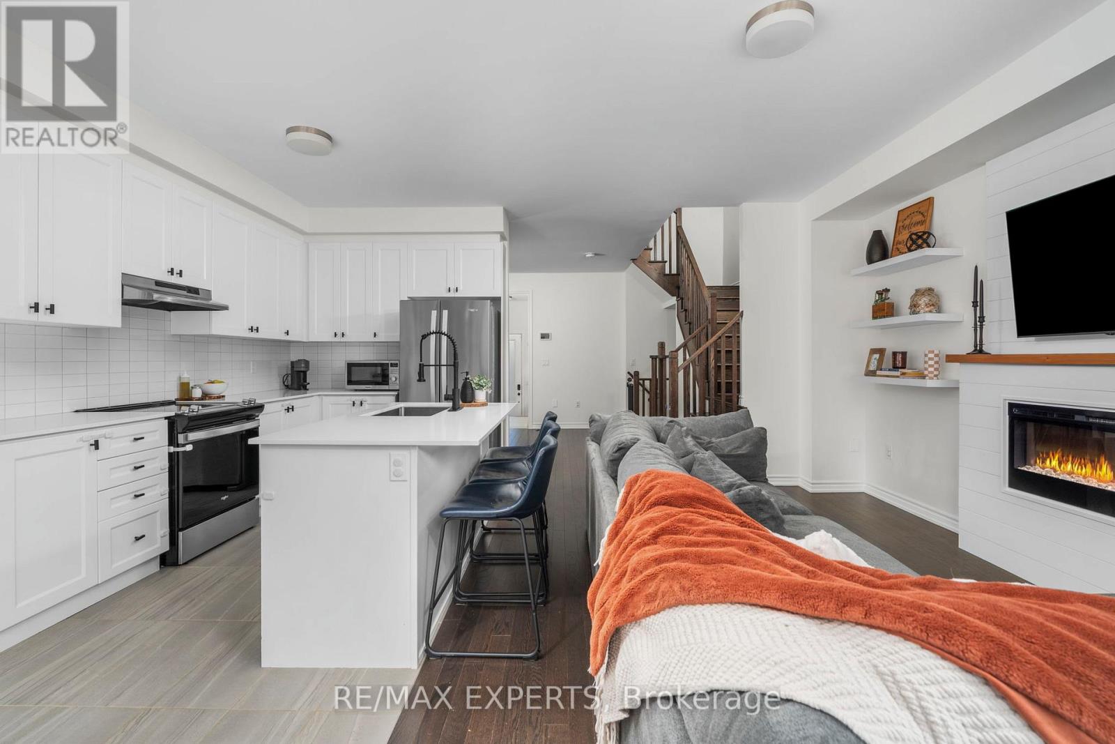 Newly built and thoughtfully upgraded townhome offering a bright, spacious open concept design. The modern kitchen features upgraded countertops, stylish backsplash, and contemporary appliances, flowing seamlessly into the family room with an elegant electric fireplace TV feature accent wall, and into a large dining area, perfect for entertaining. Smooth ceilings and upgraded flooring, including quality tile and hardwood, add a refined touch.The generously sized primary bedroom includes a large walk in closet and a double door entry leading to an oversized, upgraded ensuite. Additional bedrooms are well proportioned, ideal for family or guests. Expansive windows throughout the home bring an abundance of natural light, creating a warm and inviting atmosphere.This home also features a finished open concept basement, complete with modern flooring and pot lights, ideal for additional entertaining, a recreation room, and much more, along with a fourth bathroom for added convenience. The backyard is beautifully finished with a deck, interlocking patio, and pergola creating the perfect outdoor oasis for entertaining and enjoying relaxing summer nights. (id:50787)