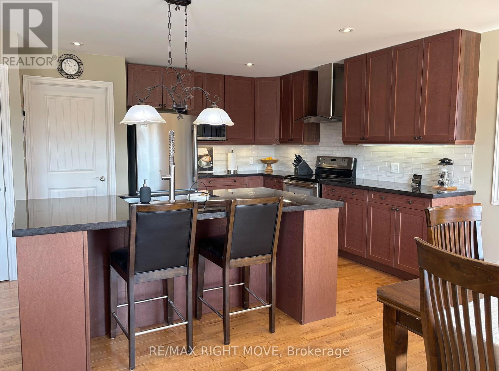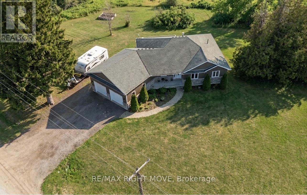 Newer ranch bungalow with a clean, modern feel, great curb appeal & space to actually live in.. This home & location is THE RIGHT MOVE. Built in 2013 & set in East Oro-Medonte, it's a custom 3-bedroom home that just makes everyday living easy. A covered front verandah and roomy foyer give you a welcoming entry. Inside, the layout flows nicely, with an open-concept main living area filled with natural light from large windows and a patio door off the dining area. The living space has a tray ceiling for a bit of character, and a floor-to-ceiling slate gas fireplace that anchors the room without overpowering it. The kitchen is set up the way you'd want it with a large island, plenty of storage, pot drawers, a pantry, and tall cabinets that go right to the ceiling & a central vac sweep for easy cleanup. Granite counters tie it all together, and it's all positioned so you're still part of the conversation while cooking or entertaining. One of those small but important details: the main floor laundry is just off the kitchen, which makes unloading groceries from the oversized double garage simple (and there's even a handy work nook in the garage for projects or extra storage). The main floor offers 3 comfortable bedrooms & 2 bathrooms, including a primary suite with en-suite. There's no shortage of storage throughout the home. The double oversized insulated garage has a work nook as well as a 240 v heater on a thermostat and the 12 foot ceilings with mezzanine added great additional storage. A large deck ready for summer evenings, and the location is hard to beat. Septic is in front. Septic drawing available. Close enough to walk to the local elementary school, in a quiet East Oro setting, 10 minutes to major shopping & a short drive to Hwy 11 for commuters. (id:50787)
